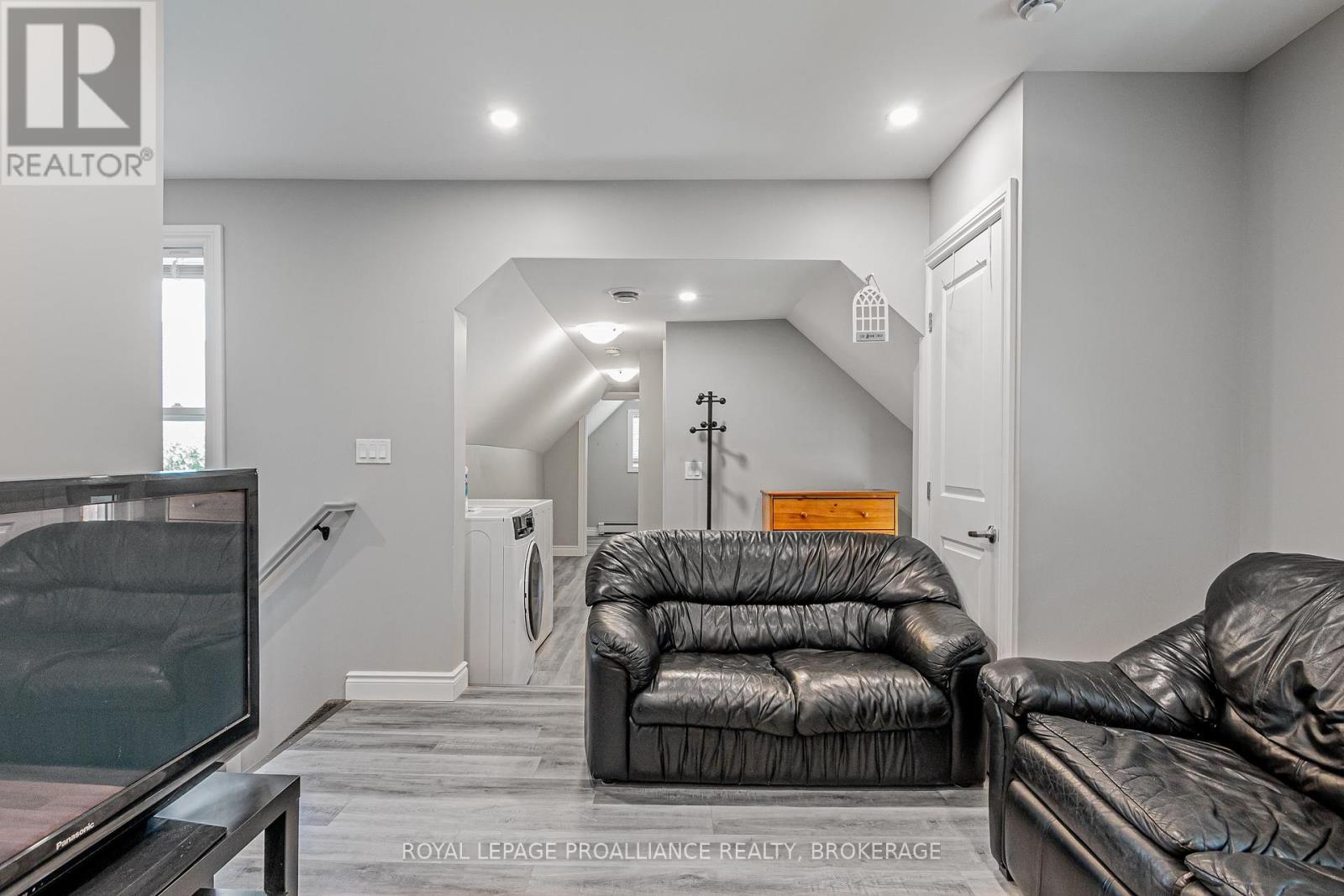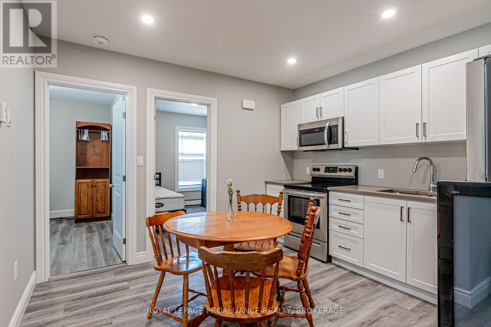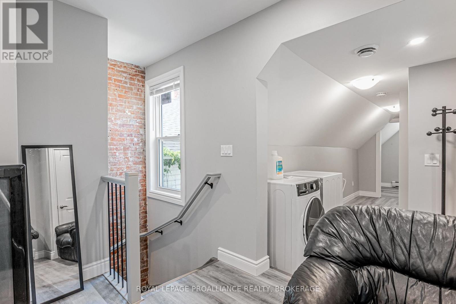 Discover this stunning boutique 2-unit home, originally built in 1841 and fully renovated to blend historic charm with modern comfort. The first unit welcomes you into a bright, open-concept living space, featuring a stylish kitchen with shaker cabinetry, stainless steel appliances, and expansive quartz countertops. A convenient laundry area is also included. Further inside, you'll find three spacious bedrooms and a sleek 3-piece bathroom with a glass-door shower. The second unit has its own private entrance, leading down a hallway adorned with exposed brick that has stood the test of time for nearly two centuries. Upstairs, the living, dining, and kitchen areas offer similar elegant finishes, complemented by four large bedrooms one showcasing a beautiful exposed brick accent wall. A pristine 3-piece bathroom with another glass-door shower completes the space. Perfectly situated at the corner of Barrie and Colbourne Streets, this home is just steps from Queens University and Skeleton Park, with Kingston's vibrant downtown nearby for access to shops, restaurants, and entertainment. Don't miss this exceptional opportunity. Previous gross annual income of $92,100. (id:29295)