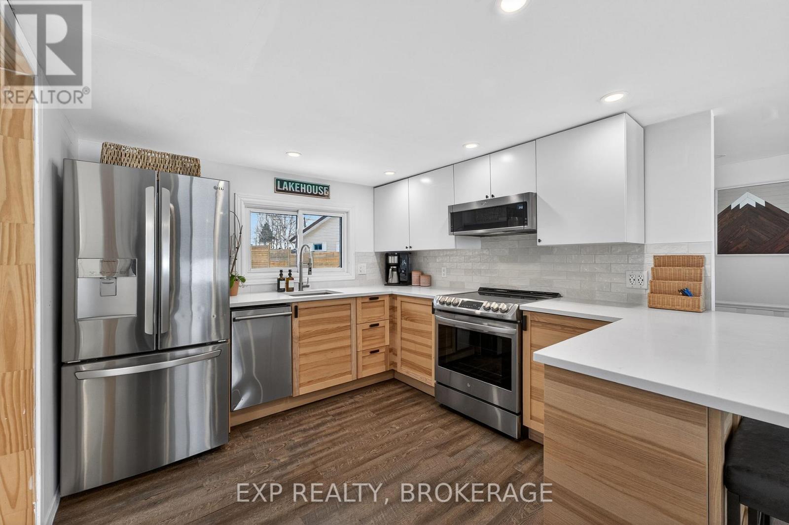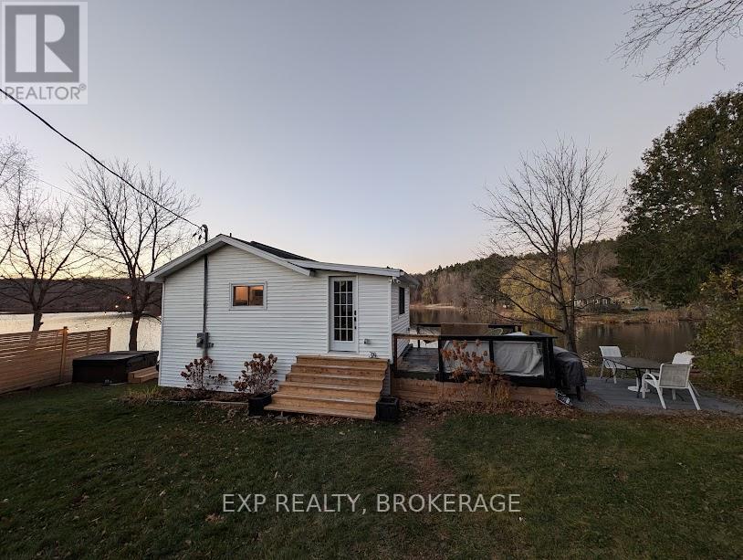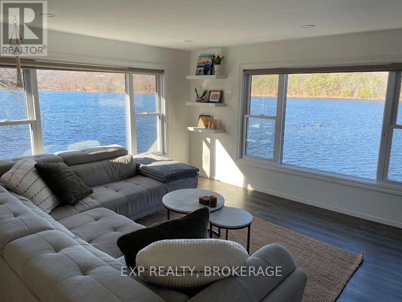 Welcome to this cute-as-a-button, four-season waterfront home on beautiful Westport Sand Lake. Enjoy the rare convenience of walking to the Village of Westport and access to golf course, hiking trails, wineries, restaurants, artisan shops, public sand beach and boat launch. The property sits on a well-maintained private road with a flat yard, fire pit, deck, paved patio and three versatile outbuildings for storage or potential bunkie use. The natural shoreline offers a gentle shallow entry with unobstructed views of Foley Mountain. Inside, expansive windows frame stunning lake views from the open-concept kitchen and living room with quartz counters, modern cabinetry, stainless appliances, breakfast bar, built-in fireplace and half bath. The finished lower level offers two bedrooms, full bath, laundry and utilities, with the primary overlooking the lake. A walkout leads directly to the hot tub, yard, and brand-new 36' x 8' cedar dock-your front-row seat to sunsets, swimming, fishing, and water sports. With the home set just steps from the shoreline, you'll feel truly connected to the lake, while extensive waterproofing and a dam-controlled water level provide peace of mind. Major upgrades include a 200-amp panel, high-efficiency heat pump/mini-split, and UV water treatment system. Well and septic have been regularly maintained. Whether you're a snowbird seeking a seasonal paradise, a downsizer dreaming of a peaceful year-round retreat, or an investor looking for a turn-key short-term rental, this little gem offers the perfect blend of charm, convenience, and lakeside magic. (id:29295)