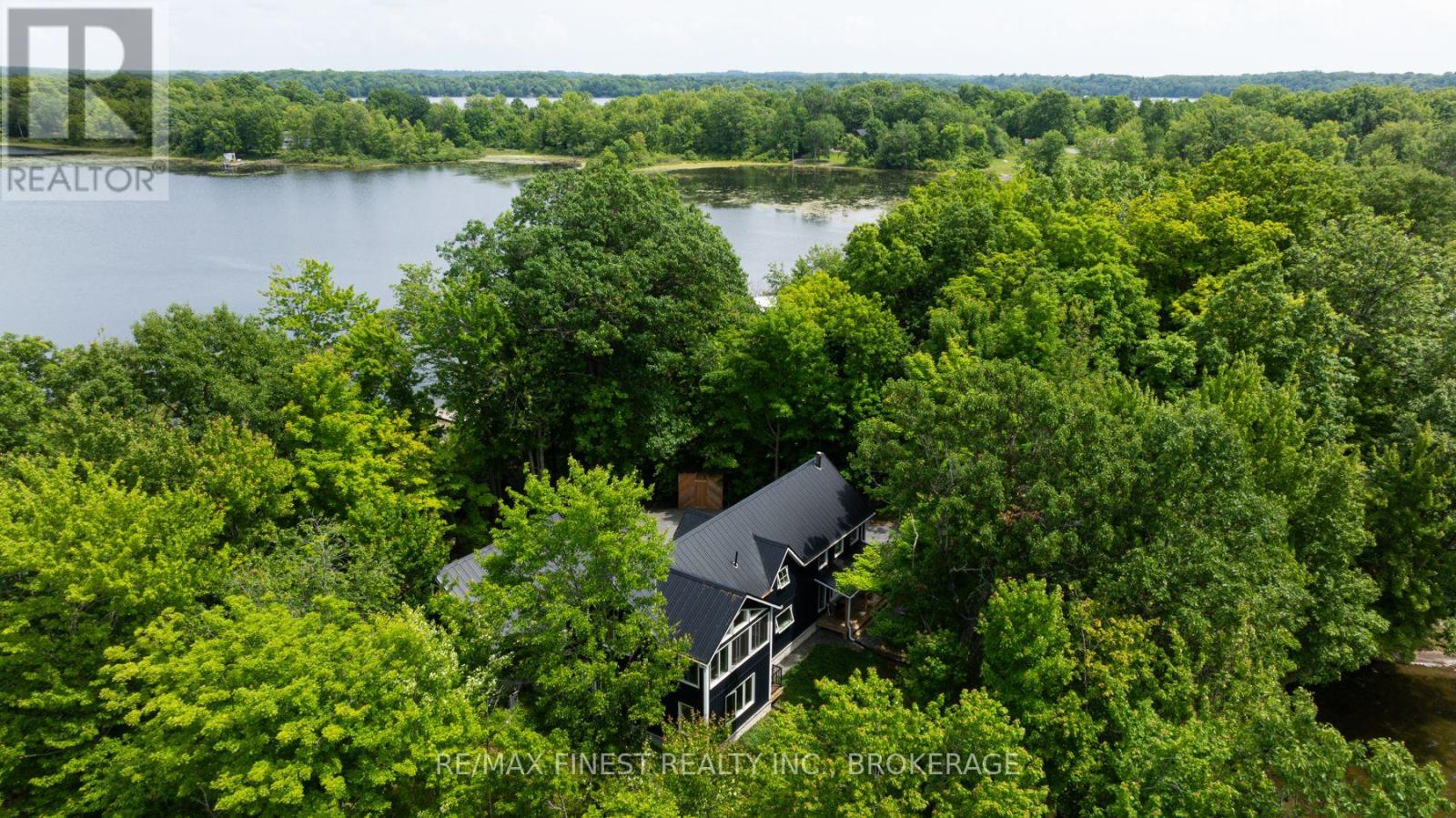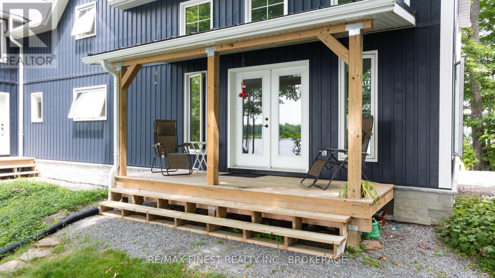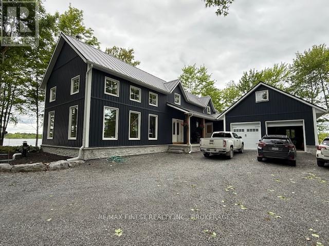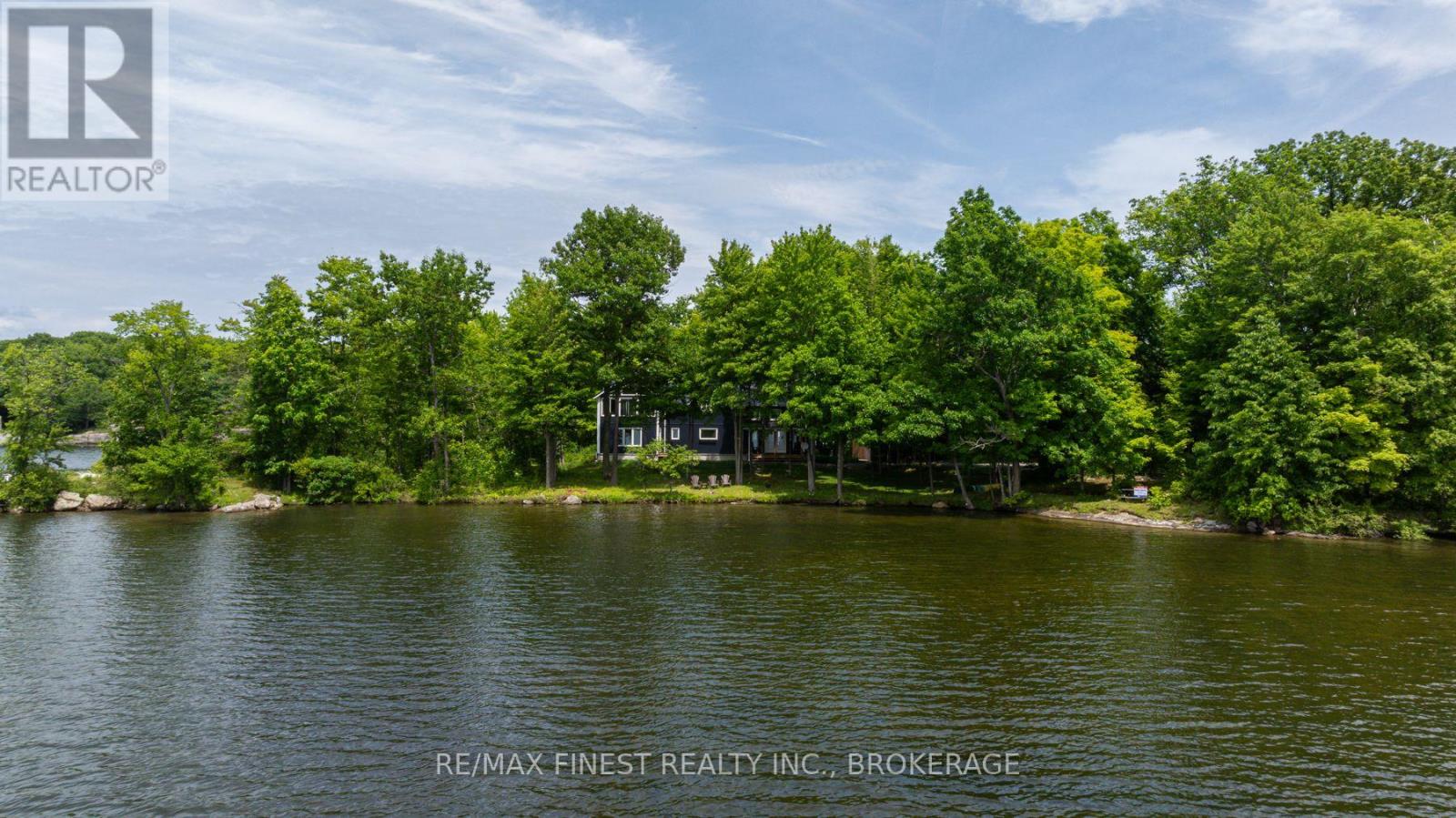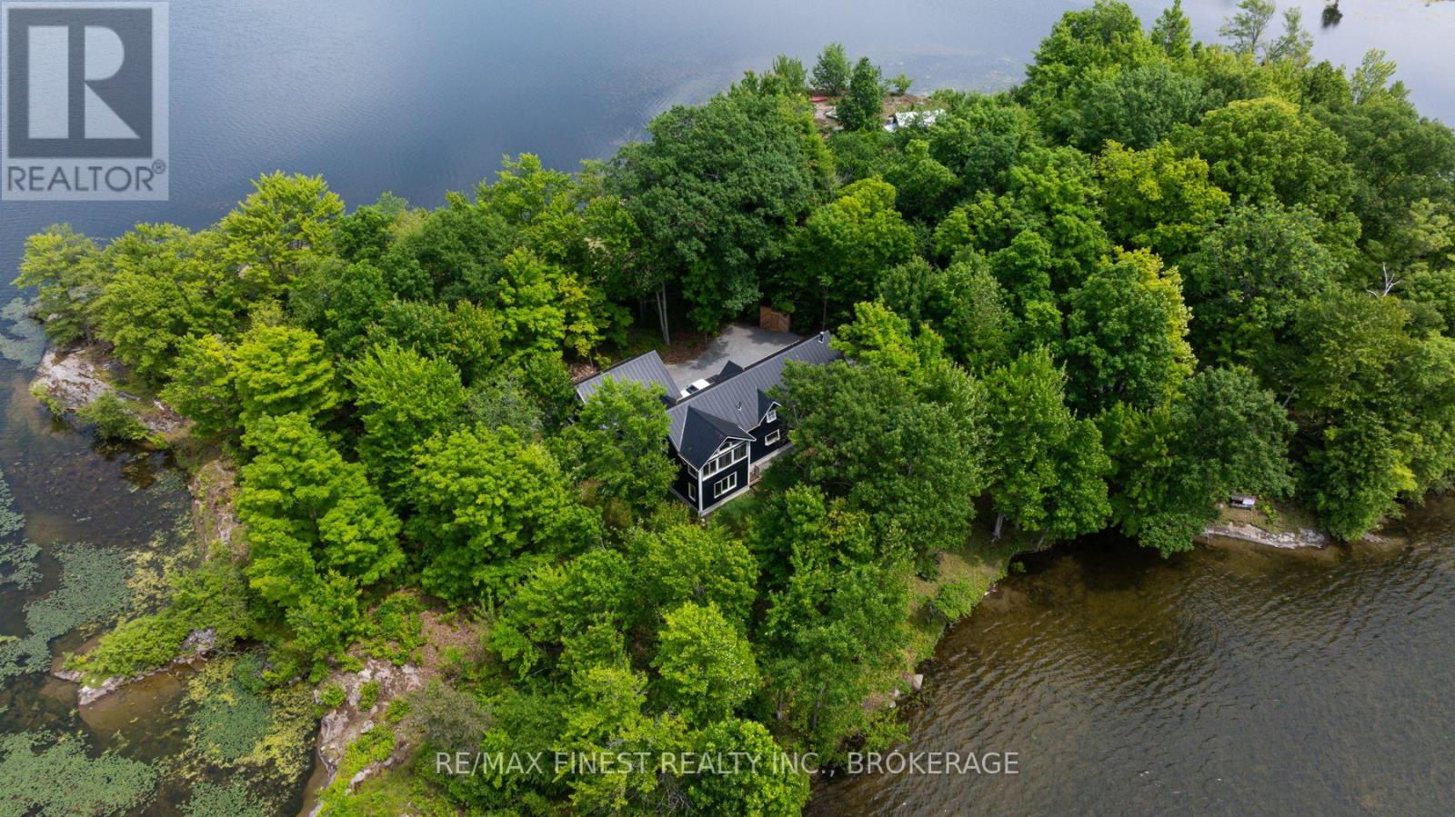 Welcome to 3855 Hideaway Lane, where privacy, luxury and nature abide. Drive through the treed 5.7 acre peninsula via a private laneway with water visible on both sides. This dream lakeside oasis boasts 2800' of waterfront on the historic Rideau Canal at Dog Lake. 360 degree breathtaking water views from every window in this Marine Dusk vinyl sided 4 year new custom built home, boasting 17' ceilings in the 'Great Room', which is overlooked by the Media Room on the second floor. An efficient centrally placed WETT certified woodstove sets the atmosphere as you break the evening chill. From the grand entrance you enter the open concept kitchen adorned with a granite island. Gunsmoke oak hardwood flooring throughout. With an energy efficient heat pump/AC, this meticulously built 2100 square foot home was built on an ICF foundation and has a heated, dry crawl space. It boasts three bedrooms, two on the ground level and one upstairs. The westerly facing bedroom, located steps from the water, has a private entrance suitable for an in-law suite or bed and breakfast accommodation. The main floor laundry leads to the attached double car garage with an unfinished loft accessible by staircase and is suitable for storage or a man-cave. On the second floor adjacent to the Media Room you find the master bedroom with an all season glassed in sunroom overlooking the lake. This spacious bedroom has a walk in closet and an ensuite. As if this luxurious retreat isn't enough, 150 meters from the house you will find a renovated bunkie with electricity, woodstove, running water and a composting toilet on a granite outcropping overlooking Milburn Bay. Presently used as an Airbnb, the cabin is a favourite for repeat guests who love the privacy, canoeing, fishing and unparalleled views. A 25 minute drive to Kingston, 8 minutes from a public beach (Gilmour Point) and two public boat launches in the immediate vicinity, book your viewing today! (id:29295)