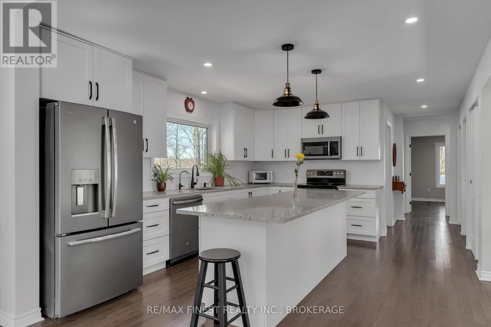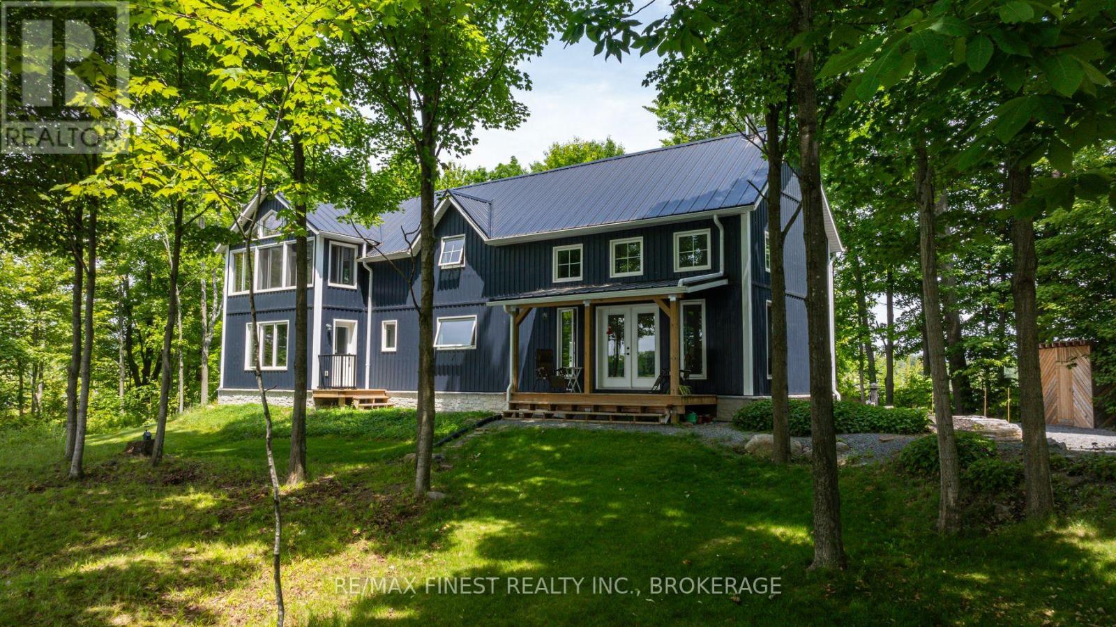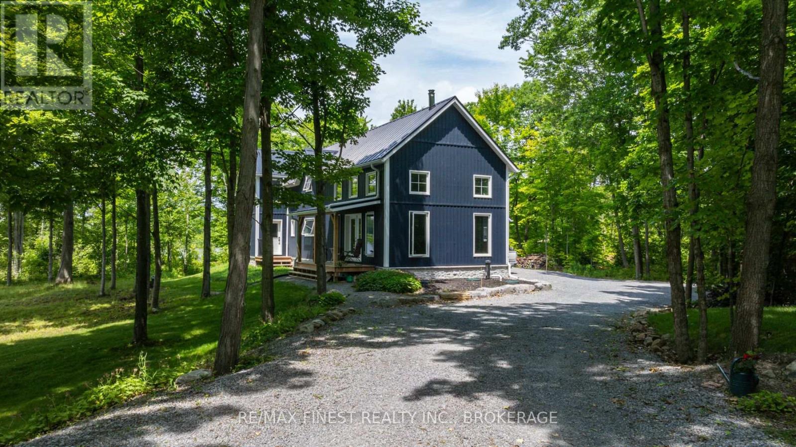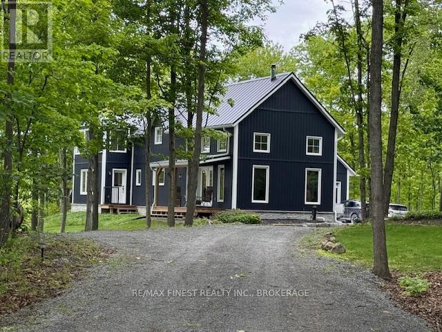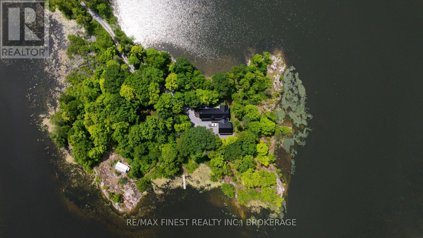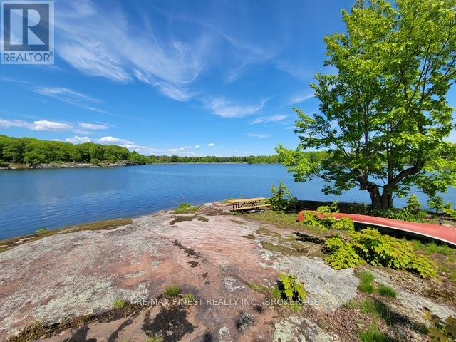 Welcome to 3855 Hideaway Lane, where privacy, luxury and nature abide. Drive through the treed 5.7 acre peninsula via a private laneway with water visible on both sides. This dream lakeside oasis boasts 2800' of waterfront on the historic Rideau Canal at Dog Lake. 360 degree breathtaking water views from every window in this Marine Dusk vinyl sided 4 year new custom built home, boasting 17' ceilings in the 'Great Room', which is overlooked by the Media Room on the second floor. An efficient centrally placed WETT certified woodstove sets the atmosphere as you break the evening chill. From the grand entrance you enter the open concept kitchen adorned with a granite island. Gunsmoke oak hardwood flooring throughout. With an energy efficient heat pump/AC, this meticulously built 2100 square foot home was built on an ICF foundation and has a heated, dry crawl space. It boasts three bedrooms, two on the ground level and one upstairs. The westerly facing bedroom, located steps from the water, has a private entrance suitable for an in-law suite or bed and breakfast accommodation. The main floor laundry leads to the attached double car garage with an unfinished loft accessible by staircase and is suitable for storage or a man-cave. On the second floor adjacent to the Media Room you find the master bedroom with an all season glassed in sunroom overlooking the lake. This spacious bedroom has a walk in closet and an ensuite. As if this luxurious retreat isn't enough, 150 meters from the house you will find a renovated bunkie with electricity, woodstove, running water and a composting toilet on a granite outcropping overlooking Milburn Bay. Presently used as an Airbnb, the cabin is a favourite for repeat guests who love the privacy, canoeing, fishing and unparalleled views. A 25 minute drive to Kingston, 8 minutes from a public beach (Gilmour Point) and two public boat launches in the immediate vicinity, book your viewing today! (id:29295)