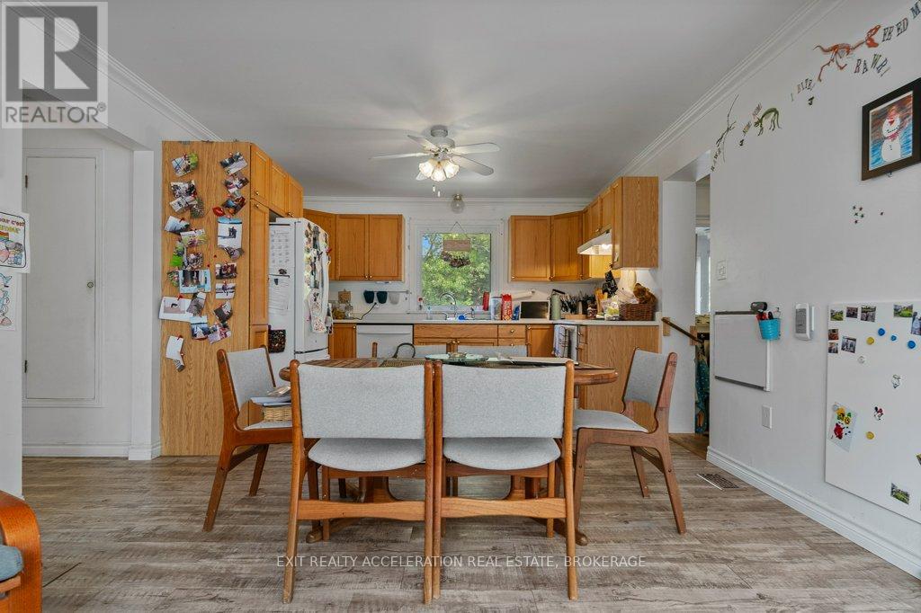 Along the Napanee River waterfront sits this all-brick bungalow that offers a warm and welcoming place to call home. The main level features two bedrooms, including a primary suite complete with its own four-piece ensuite. A bright sitting area off the kitchen opens onto a spacious deck, where you can enjoy views of the large backyard and the peaceful river beyond. The lower level expands the living space with three additional bedrooms, a full four-piece bathroom, and a generous family and recreation room that is perfect for entertaining, hobbies, or movie nights. A walkout from this level provides direct access to the backyard and riverfront. The attached one-car garage includes convenient inside entry to the front foyer, while a 16 x 24 workshop adds even more versatility, offering space for projects, a drive shed for yard equipment, or secure storage for your boat with large access doors at both ends. Located close to schools, the hospital, and other amenities, this riverfront property combines comfort, function, and an enviable setting. (id:29295)