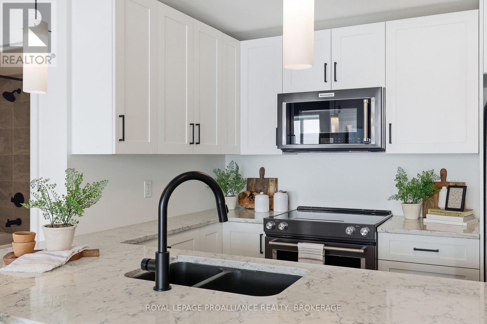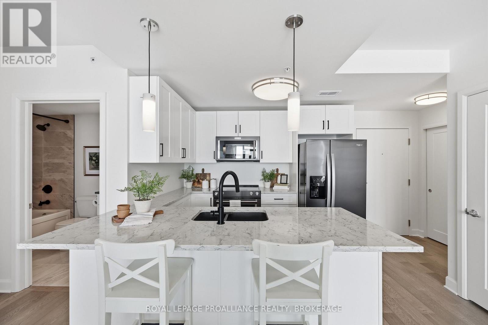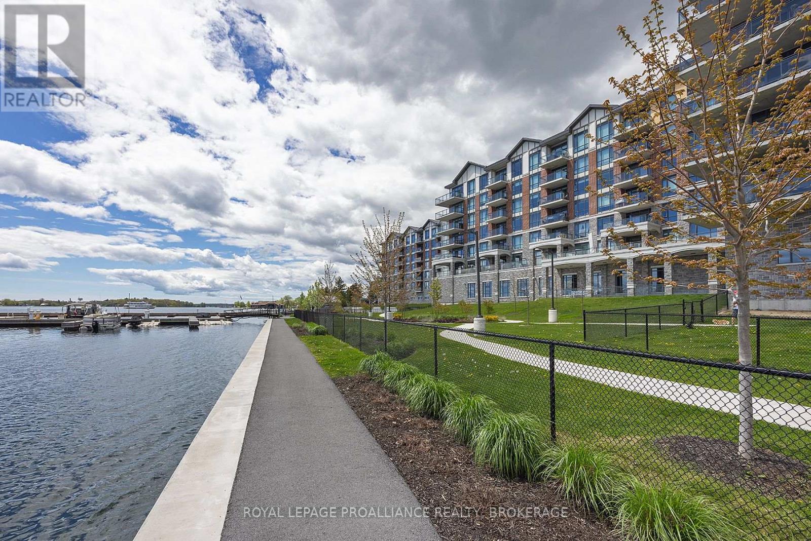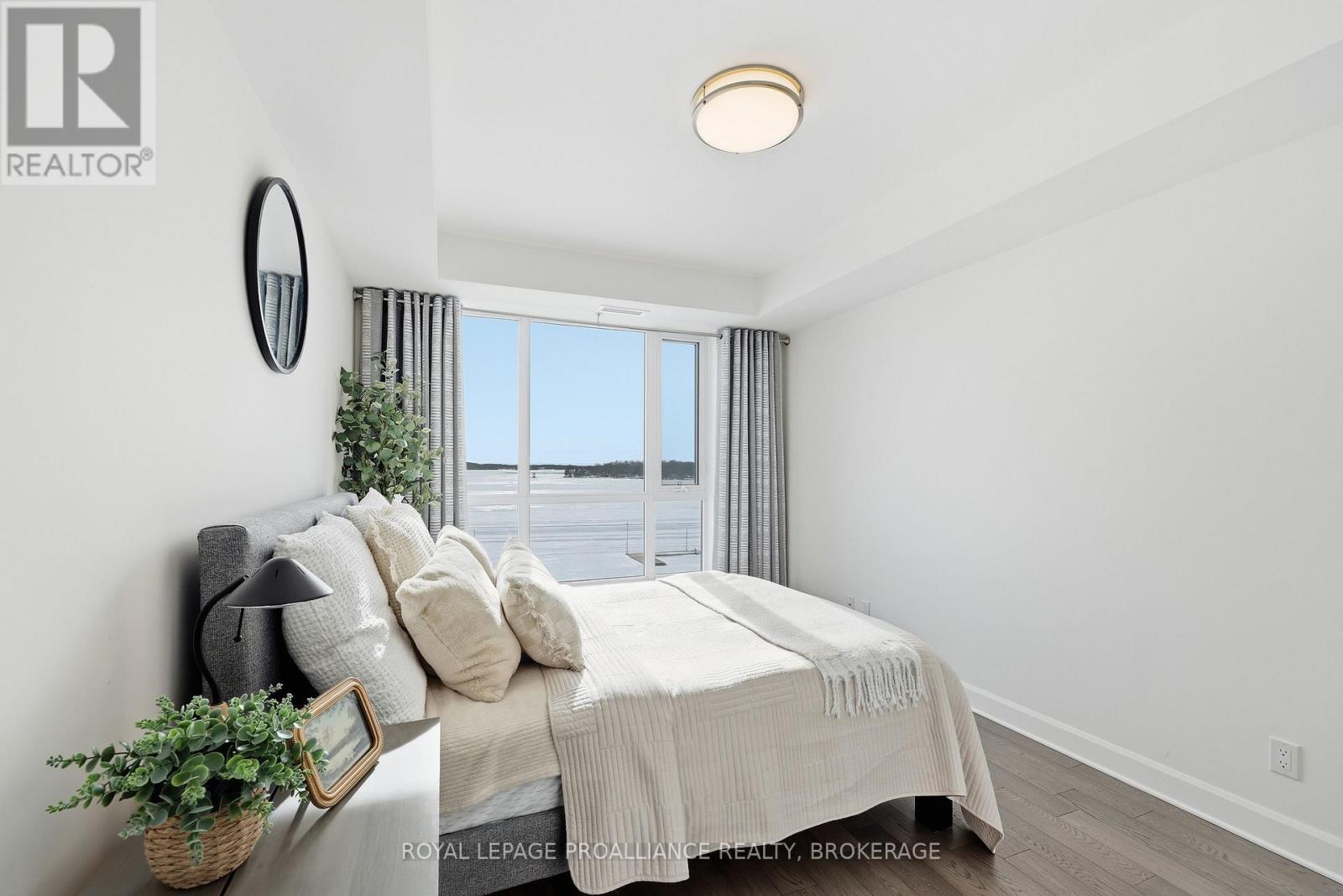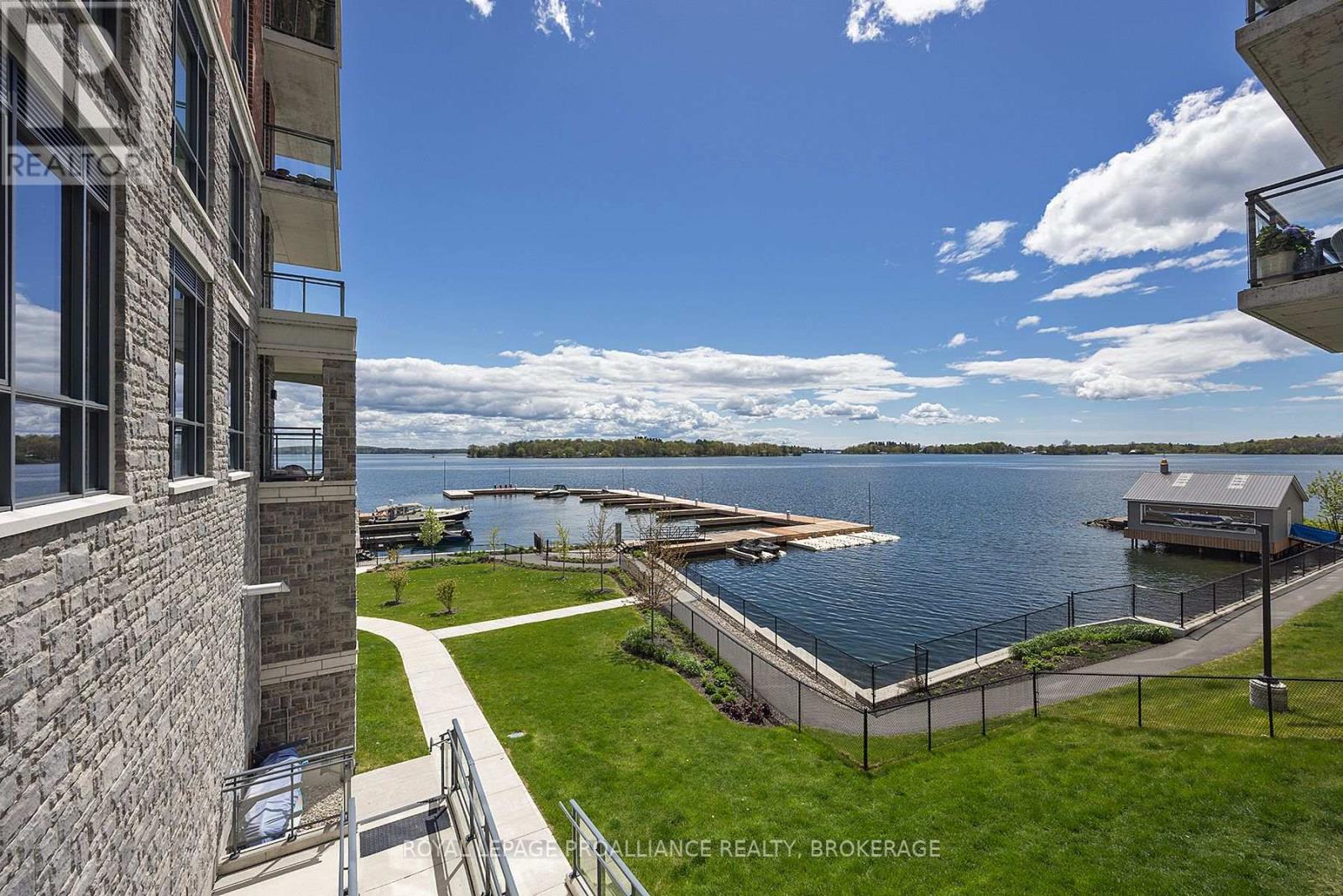 $1,039.26 MonthlyReady to trade your snow blower for a carefree waterfront lifestyle, I am sliding up your icy driveway to share this opportunity with you! Imagine effortless living on the beautiful shores of the St. Lawrence River with stunning panoramic views and southern exposure filling your home with sunlight all day! This lovely 2-bedroom, 2-bathroom condo offers an open, airy layout designed to maximize the majestic views over the beautiful Thousand Islands with its gorgeous oversized windows. Whether its sparkling summer mornings or dramatic autumn sunsets, the backdrop is simply breathtaking. This nearly 1000 sqft unit has a well-appointed kitchen featuring beautiful Quartz counters and quality appliances. Wake up each morning to beautiful river views in both the master and 2nd bedroom. With a lovely ensuite with a large walk-in shower and a 4pc main bathroom, the modern tiles gleam in both bathrooms. For boating enthusiasts, this unit includes a private boat slip & dock, providing you with the freedom to easily enjoy long (or short!) days on the river. With in-suite laundry, central heating & cooling, a storage locker located just down the hall and one underground parking space, this unit offers a sweet & complete package. Stone & South has a great community feel and the building features a gorgeous party room for entertaining, a large fitness room, a lovely patio & community BBQ area and a fenced waterfront park with walking paths & dog walking area, I invite you to come and see it all for yourself! (id:29295)