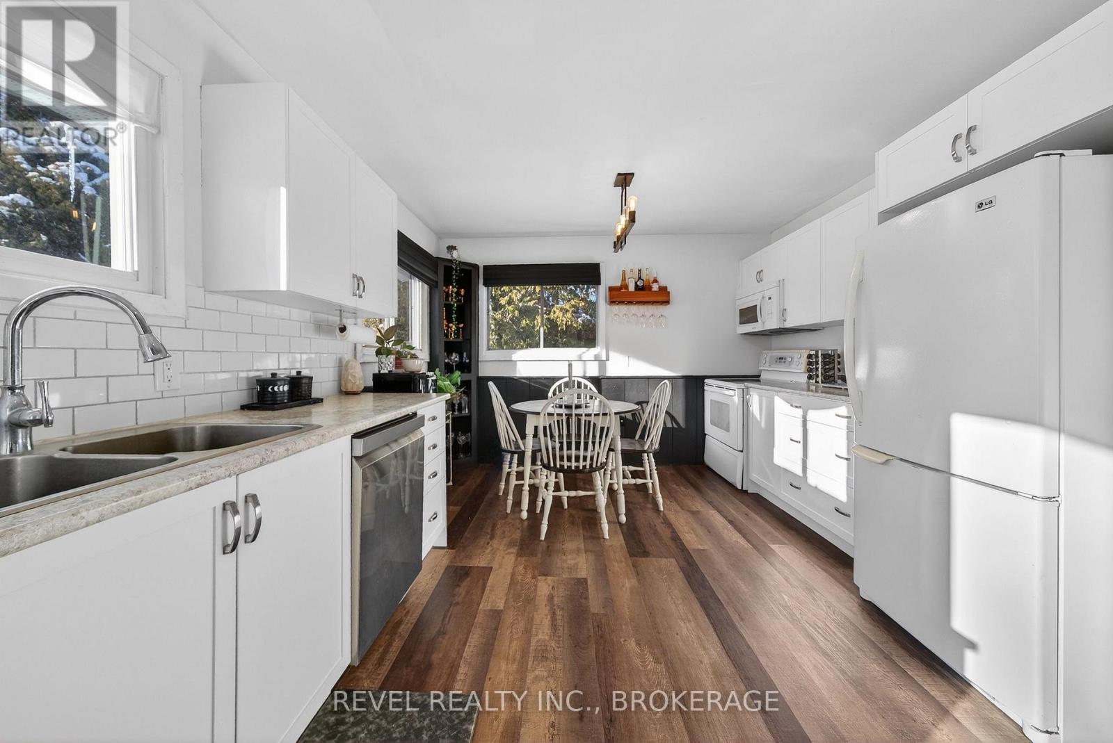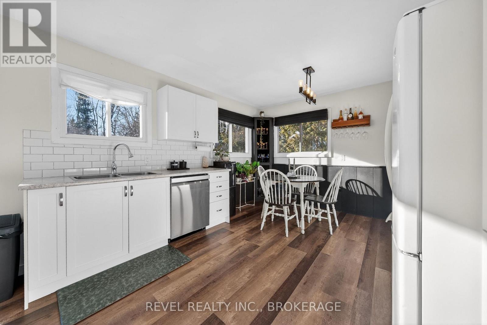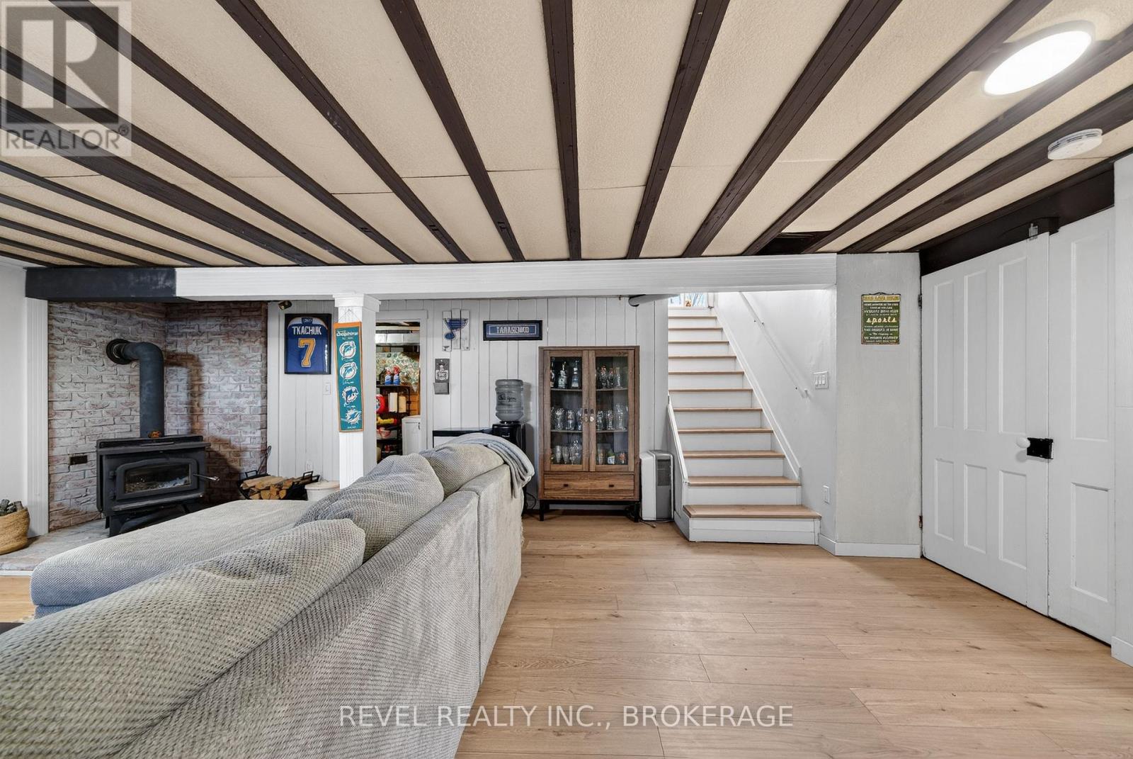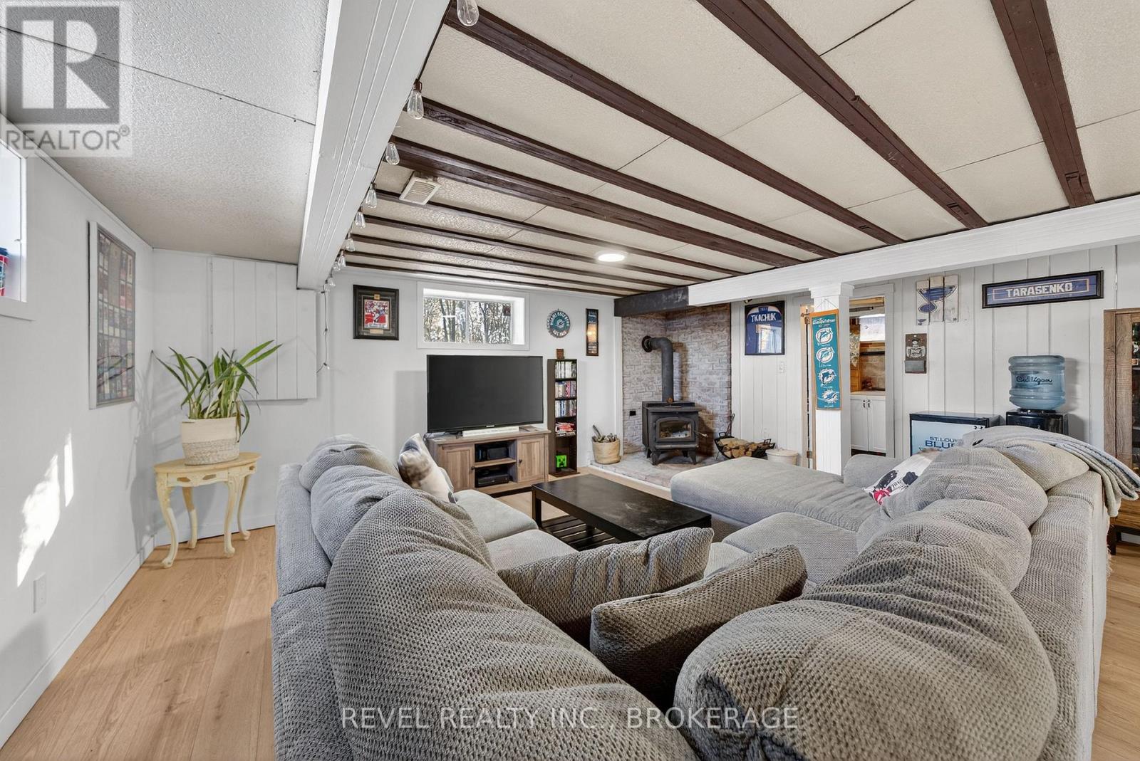 Welcome to 4131 Highway 38! This cozy move-in-ready 3-bedroom, 1-bath bungalow offers comfort and space. The bright eat-in kitchen features sliding doors that open onto a spacious deck-perfect for entertaining or outdoor music concerts. Recent updates include laminate/vinyl flooring, a newer furnace and central air system (October 2022), and the roof was replaced in 2018.Situated on an impressive 80 x 187 ft lot, the property offers ample parking and plenty of outdoor space to enjoy. Inside, the finished basement adds a living area with a cozy recreation room complete with a woodstove, plus a finished kid's area that could be a fourth bedroom. A spacious utility room with a separate walk-up entrance to the driveway side yard provides excellent potential for an in-law suite, with ample space to add a second bathroom. Perfect for a first time home buyer that is looking for country living at an affordable price. (id:29295)