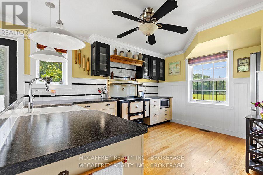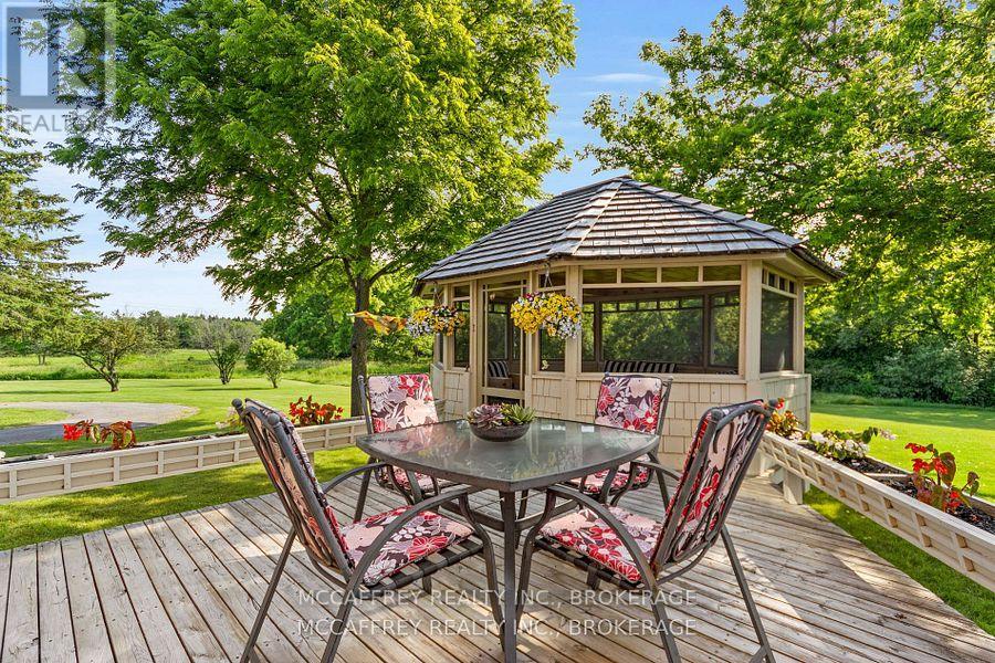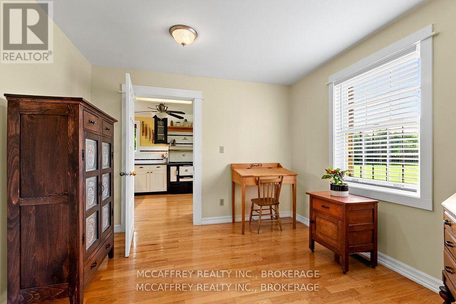 Charming 2 story home that blends timeless elegance with modern comfort. Nestled on just over 15 pristine acres of manicured lawns and mature trees, this private sanctuary is more than a home, it's an experience. Lots of driveway space and an attached 2 car garage offers convenience while maintaining the home's aesthetic. Outdoor gatherings become unforgettable events on the expansive deck, with a gazebo and a woodfired pizza oven. The welcoming foyer offers warmth and love that has been meticulously infused into every corner. The bright, eat-in kitchen features modern updates that blend seamlessly with timeless touches. Step out through the side door onto the deck to the natural beauty of your surroundings. An elegant dining room, provides a seamless flow into the cozy living room with built-in bookshelves and an electric fireplace. A generously sized laundry room, with garage entrance and a well placed 2pc bath completes this level. Ascending the classic wooden staircase, you'll discover two bright and airy bedrooms, each offering a tranquil escape. The shared 4pc bathroom serves these rooms with elegance and functionality. The Primary bedroom features a great sized walk-in closet and a 3pc ensuite, both enhanced by heated granite tile floors for added comfort. An unfinished basement, where boundless storage options and a perfectly situated cold room await your creative touch. Outside, the property unfolds further with an updated 24'x40' insulated rustic barn that doubles as an ideal woodworking shop or more garage space. A delightful, fully functioning cottage that overlooks a tranquil stream meandering through the land. This quaint retreat could serve as a writer's studio, guest house, or a serene spot for personal reflection. Every corner of this home, barn, cottage, and the idyllic surrounding property tells a story., a cherished haven for its original owners, who have created unforgettable memories here. Now it's your turn to write the next chapter! (id:29295)