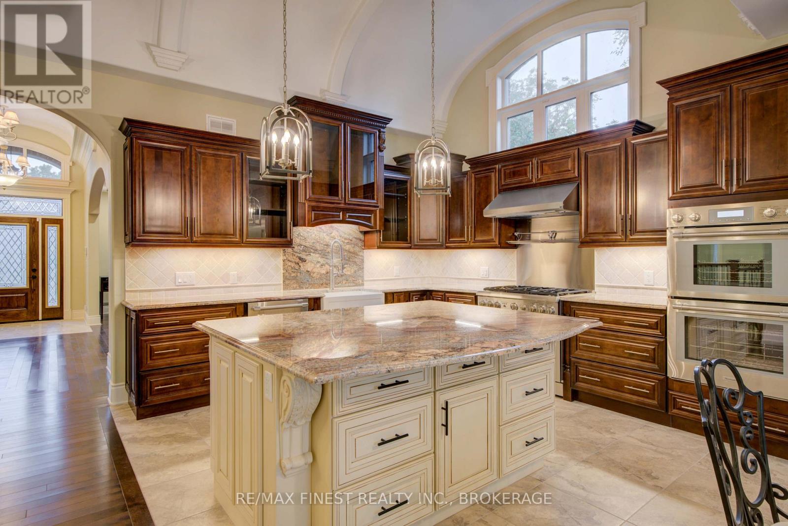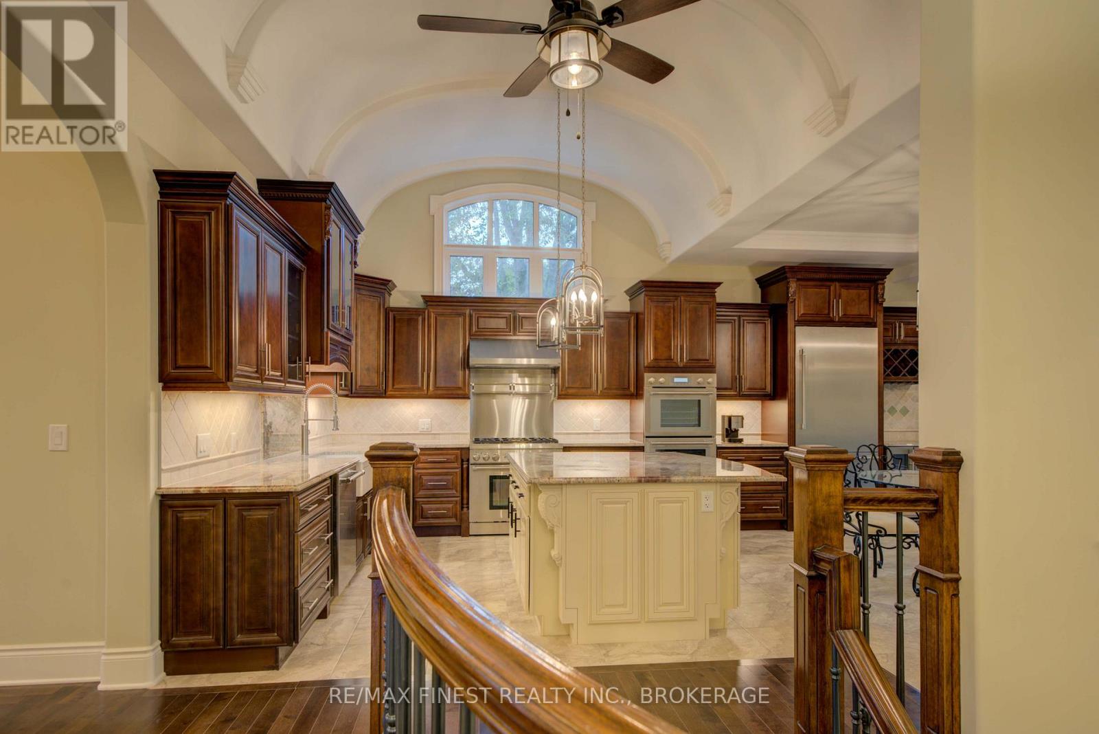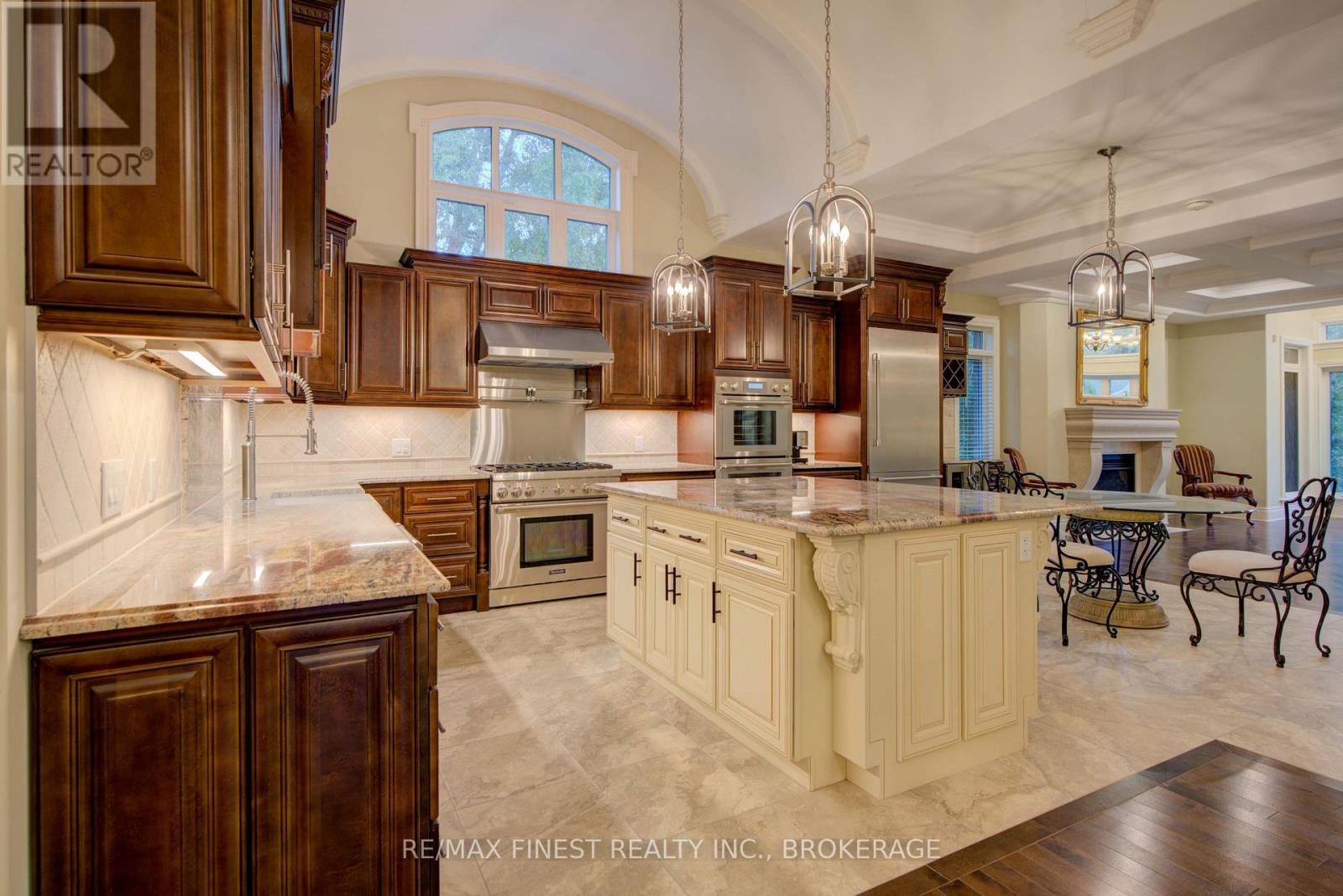 Quality is far beyond what would normally be offered in one of-a-kind 4 bedroom all stone/brick bungalow in Reddenale, with view of Crerar Park and Lake Ontario. Walking distance to Sinclair School, plaza, recreation centre, and many other amenities. Foyer with barreled ceiling, stone flooring and hardwood accents. Formal dining room with vaulted ceiling, hardwood flooring, coffered ceiling and other special treatments. Custom maple kitchen with centre island and granite countertops Thermador appliances 36"fridge, Dual gas stove (electric and gas) Dual oven (steam and electric) Custom range hood, Wine fridge, Dishwasher all appliances are state of the art and high end. Main floor family room with gas fireplace, Herringbone hardwood enlayed, |coffered ceiling, pot lights access to rear yard. Master bedroom with double door entry, hardwood floors, curved rear wall, pot lights, huge walk in closet with custom centre island and cabinets. Ensuite bath with double vanity, maple cabinets, stone vanity top. 7 foot glass shower, private seperate toilet area. Curved staircase leading to 27x25 foot recreation room with fireplace, pot lights, hardwood flooring, coffered ceiling truly the best of the beat. Seperate office withstone accent wall, double door entry, oak flooring, unique closet area for storage/shelving. Two more oversized bedrooms with oak flooring and pot lights. Lower bath with heated floors, custom ceramic work, granite countertop, and soaker tub. Oversized furnace and storage area. General 200 amp service two stage high effiency furnace air exchanger owned HWT garage insulated and drywalled Over 4800sq ft of craftmanship. Please note supplement document to really appreciate the quality of this home. (id:29295)