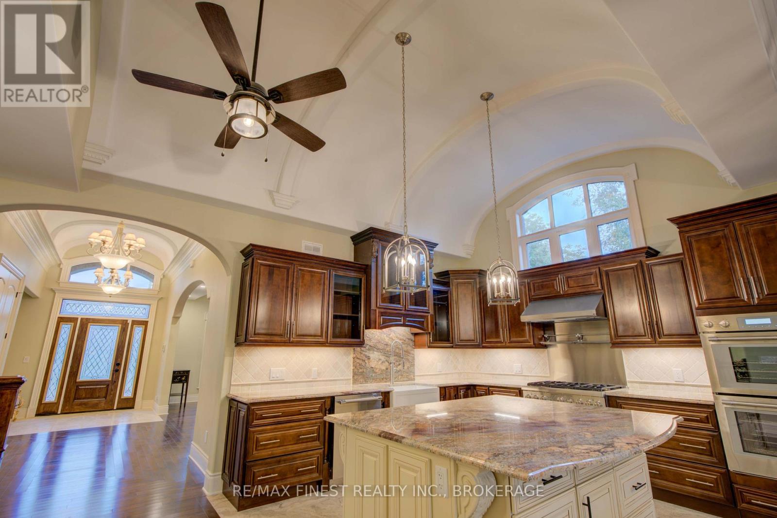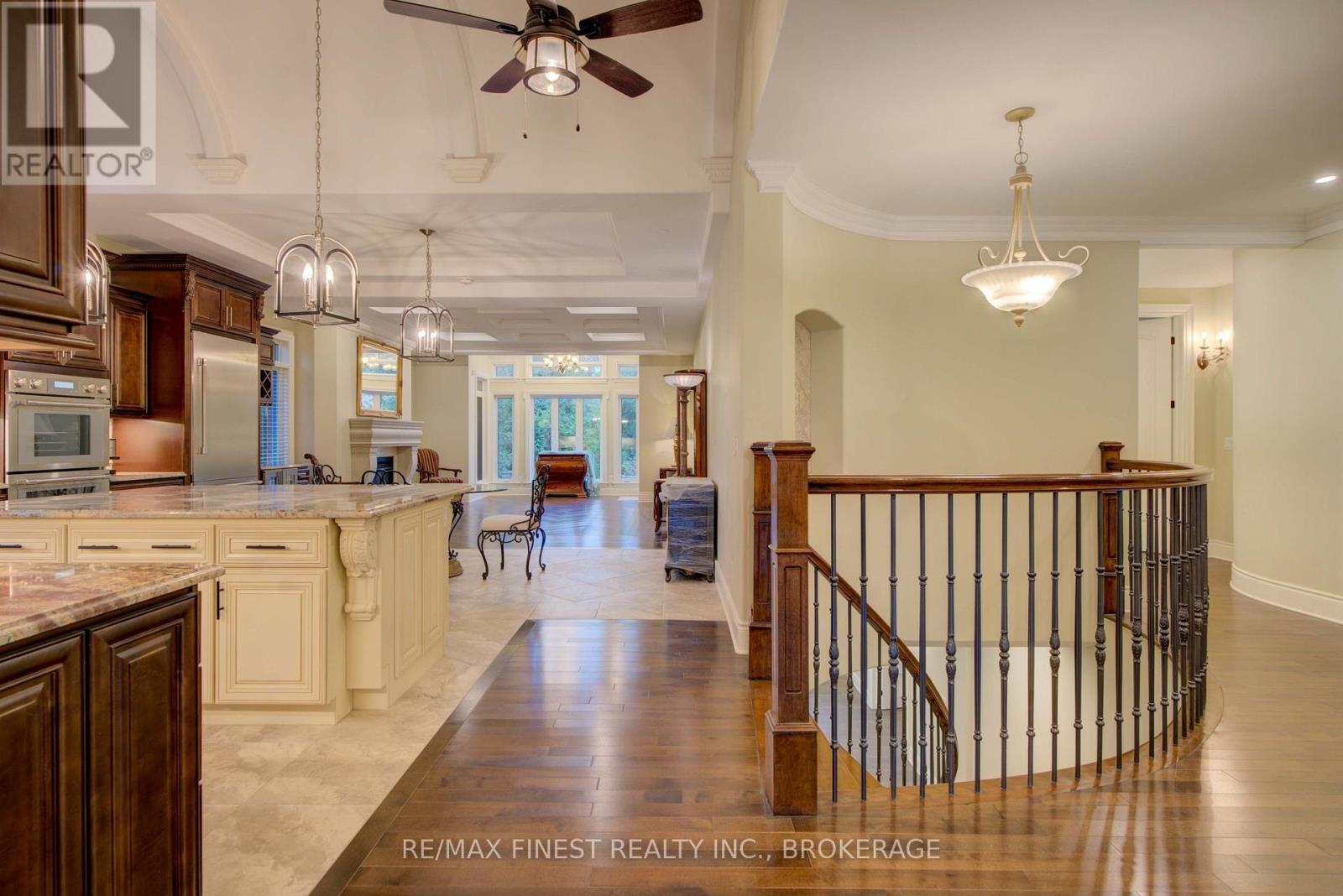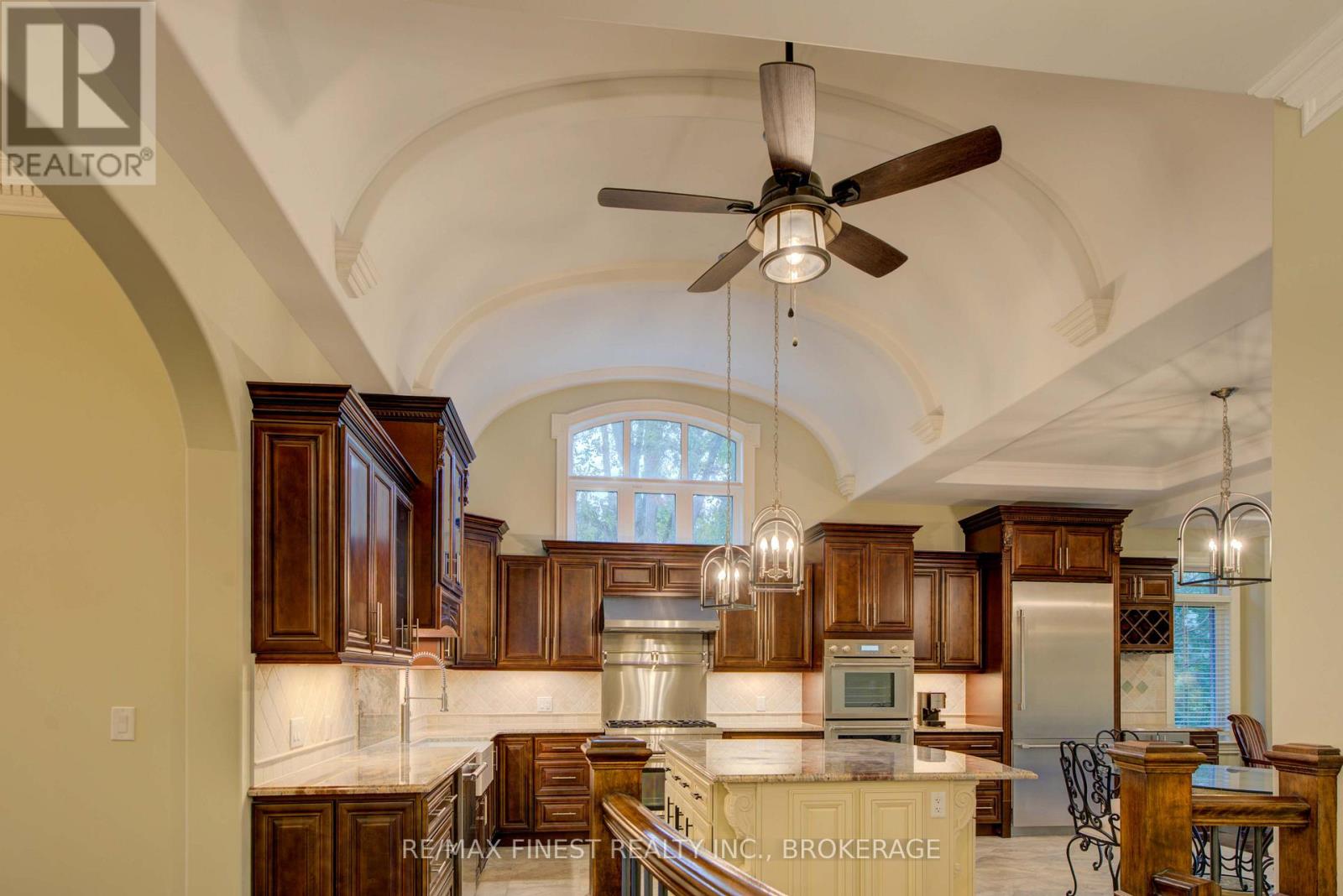 Quality is far beyond what would normally be offered in one of-a-kind 4 bedroom all stone/brick bungalow in Reddenale, with view of Crerar Park and Lake Ontario. Walking distance to Sinclair School, plaza, recreation centre, and many other amenities. Foyer with barreled ceiling, stone flooring and hardwood accents. Formal dining room with vaulted ceiling, hardwood flooring, coffered ceiling and other special treatments. Custom maple kitchen with centre island and granite countertops Thermador appliances 36"fridge, Dual gas stove (electric and gas) Dual oven (steam and electric) Custom range hood, Wine fridge, Dishwasher all appliances are state of the art and high end. Main floor family room with gas fireplace, Herringbone hardwood enlayed, |coffered ceiling, pot lights access to rear yard. Master bedroom with double door entry, hardwood floors, curved rear wall, pot lights, huge walk in closet with custom centre island and cabinets. Ensuite bath with double vanity, maple cabinets, stone vanity top. 7 foot glass shower, private seperate toilet area. Curved staircase leading to 27x25 foot recreation room with fireplace, pot lights, hardwood flooring, coffered ceiling truly the best of the beat. Seperate office withstone accent wall, double door entry, oak flooring, unique closet area for storage/shelving. Two more oversized bedrooms with oak flooring and pot lights. Lower bath with heated floors, custom ceramic work, granite countertop, and soaker tub. Oversized furnace and storage area. General 200 amp service two stage high effiency furnace air exchanger owned HWT garage insulated and drywalled Over 4800sq ft of craftmanship. Please note supplement document to really appreciate the quality of this home. (id:29295)