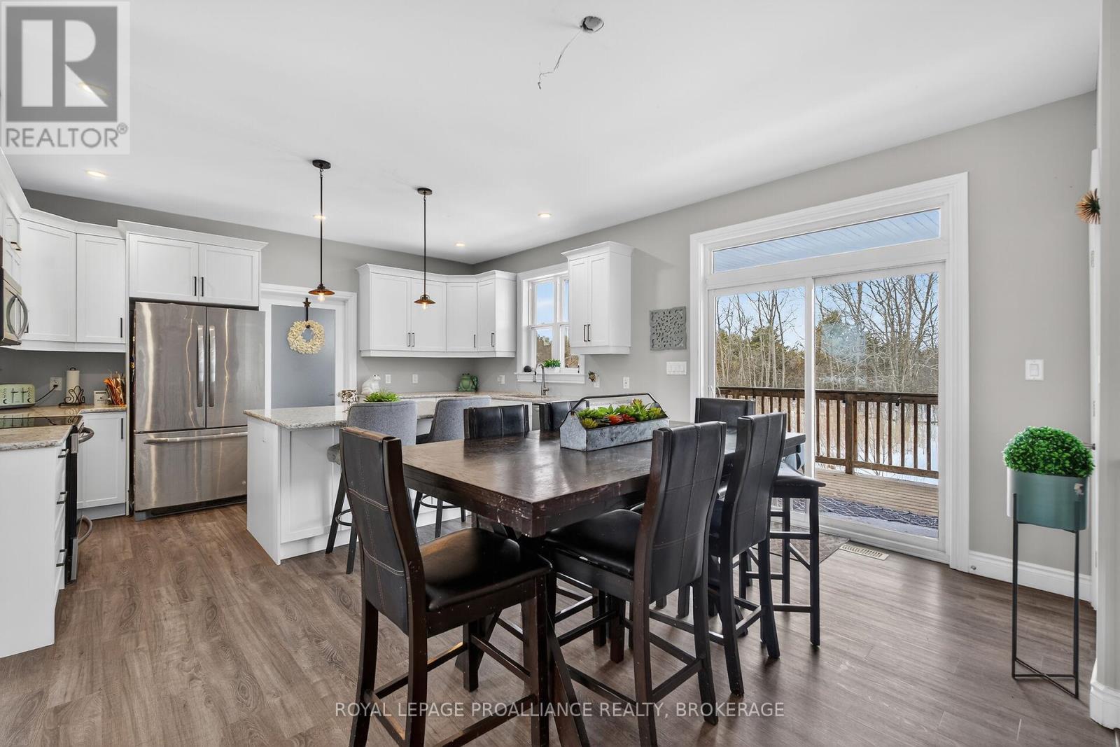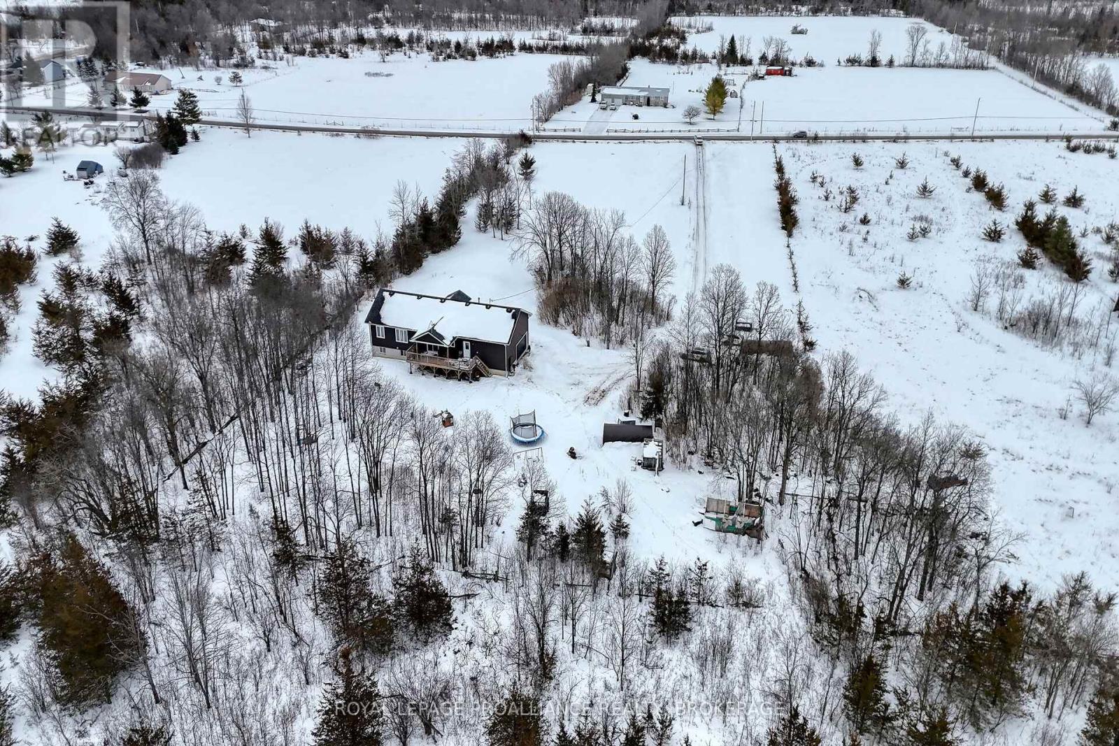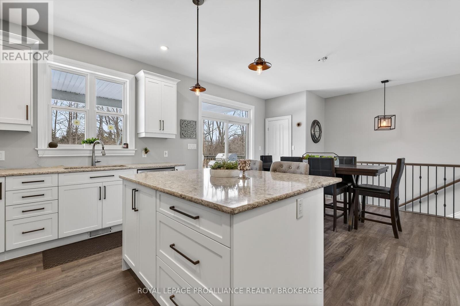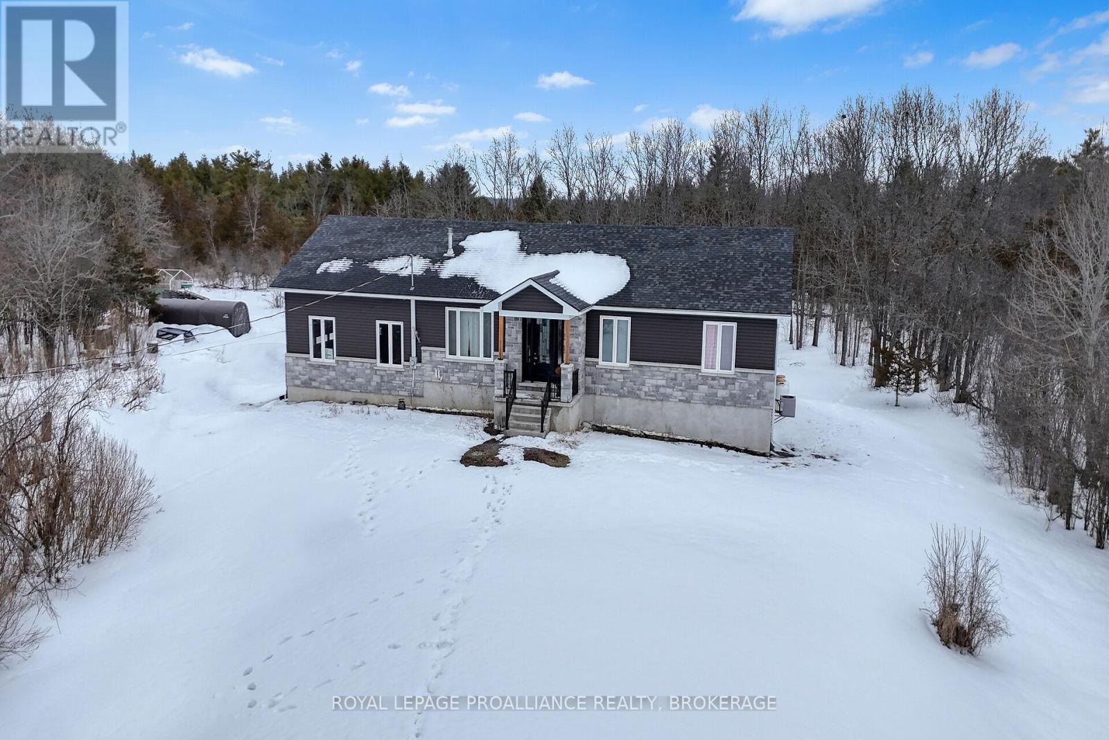 Welcome to this lovely and bright 8-year-old bungalow, offering the perfect blend of modern comfort and peaceful country living. This carpet-free home features 3+2 bedrooms and 3 full bathrooms, thoughtfully designed with quality finishes throughout. The main floor welcomes you with convenient access from the attached double garage, a dedicated laundry/mudroom area, and an inviting open-concept layout. The stunning kitchen showcases quartz countertops, a large island ideal for entertaining, and flows seamlessly into the spacious dining area and living room, complete with a cozy propane fireplace. Sliding doors off the dining area lead to a generous deck overlooking the forest - the perfect spot to relax and enjoy the view. You'll find three well-appointed bedrooms on the main level, including a beautiful primary suite featuring a large walk-in closet and a private ensuite bath, along with a full main bathroom. The fully finished lower level expands your living space with high ceilings, in-floor heating, two additional bedrooms, a 3-piece bathroom, a large recreation room, and storage. The utility room also provides convenient access to the garage. Tastefully finished throughout with durable vinyl plank flooring, this home is move-in ready and designed for easy living. Situated on 3.36 private acres and set well back from Hegadorn Road, this property offers exceptional privacy while still being easily accessible. We look forward to welcoming you home! (id:29295)