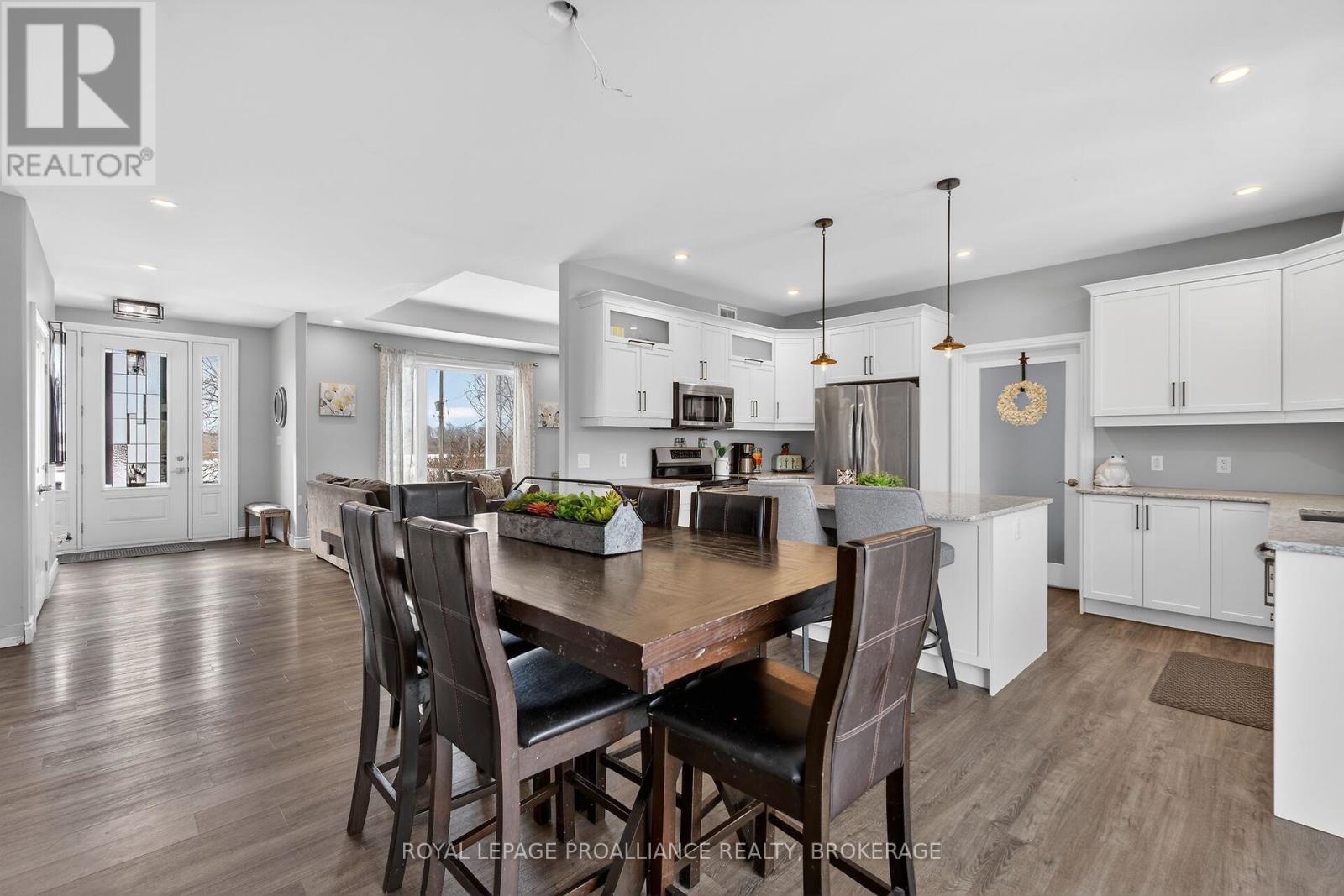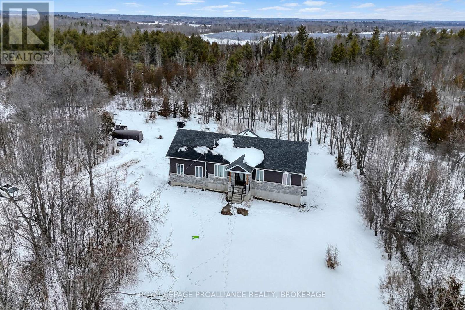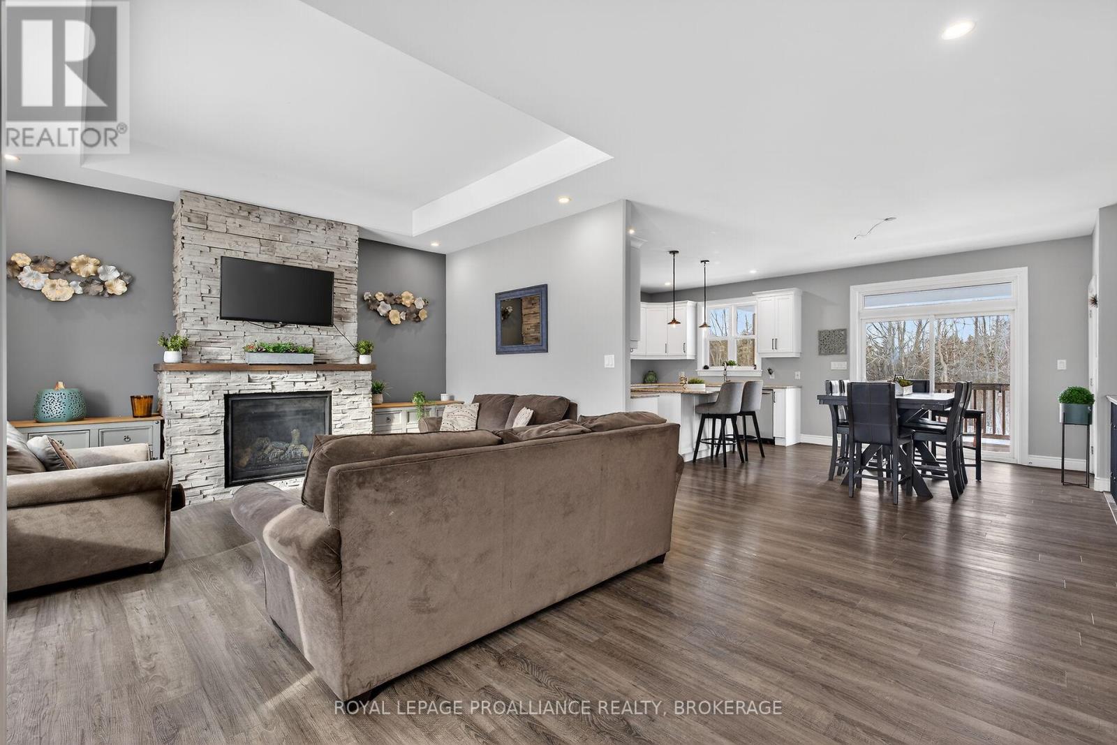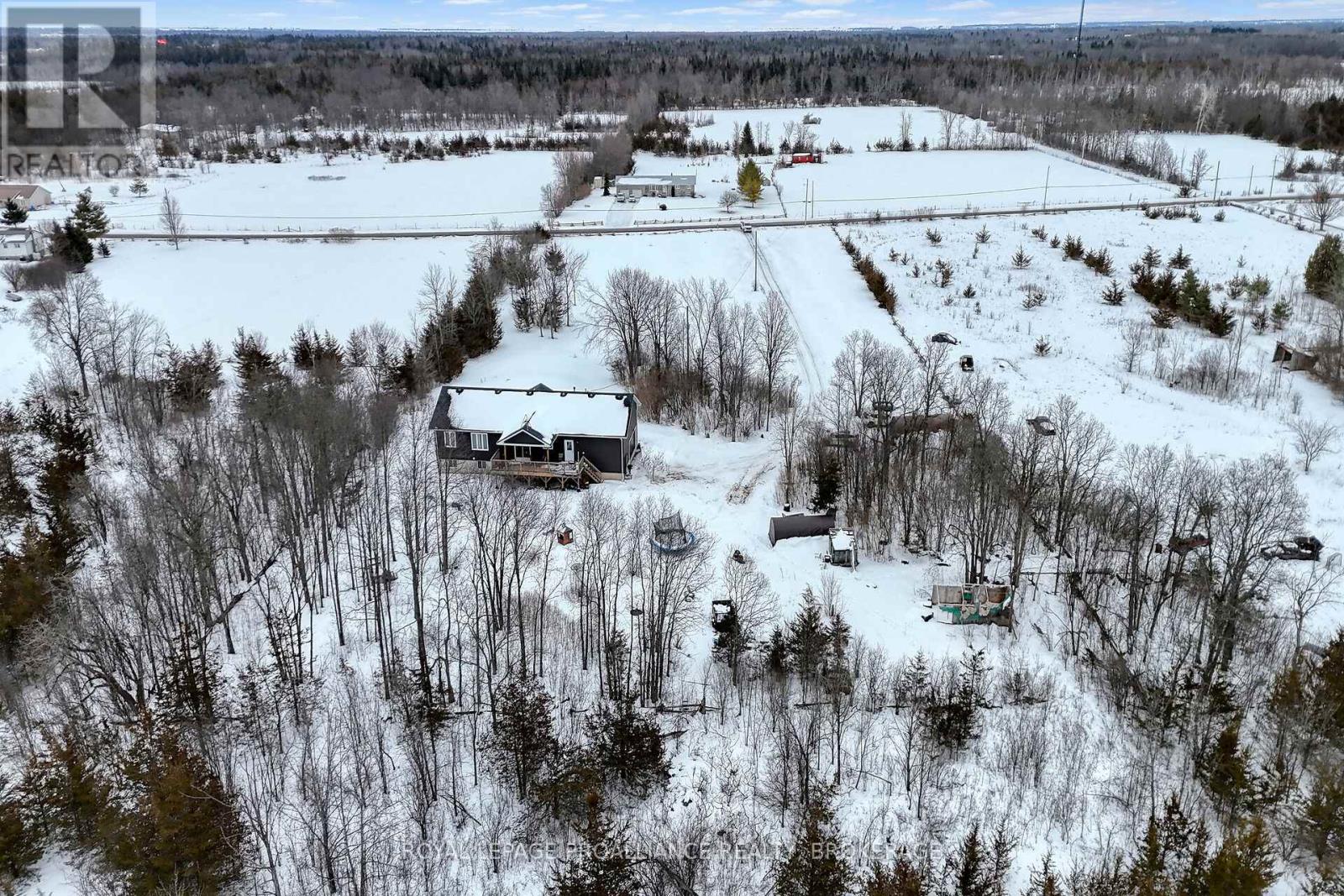 Welcome to this lovely and bright 8-year-old bungalow, offering the perfect blend of modern comfort and peaceful country living. This carpet-free home features 3+2 bedrooms and 3 full bathrooms, thoughtfully designed with quality finishes throughout. The main floor welcomes you with convenient access from the attached double garage, a dedicated laundry/mudroom area, and an inviting open-concept layout. The stunning kitchen showcases quartz countertops, a large island ideal for entertaining, and flows seamlessly into the spacious dining area and living room, complete with a cozy propane fireplace. Sliding doors off the dining area lead to a generous deck overlooking the forest - the perfect spot to relax and enjoy the view. You'll find three well-appointed bedrooms on the main level, including a beautiful primary suite featuring a large walk-in closet and a private ensuite bath, along with a full main bathroom. The fully finished lower level expands your living space with high ceilings, in-floor heating, two additional bedrooms, a 3-piece bathroom, a large recreation room, and storage. The utility room also provides convenient access to the garage. Tastefully finished throughout with durable vinyl plank flooring, this home is move-in ready and designed for easy living. Situated on 3.36 private acres and set well back from Hegadorn Road, this property offers exceptional privacy while still being easily accessible. We look forward to welcoming you home! (id:29295)