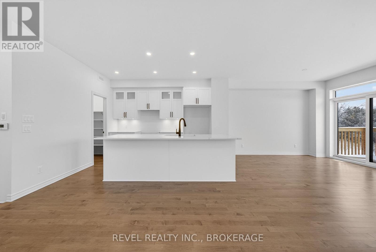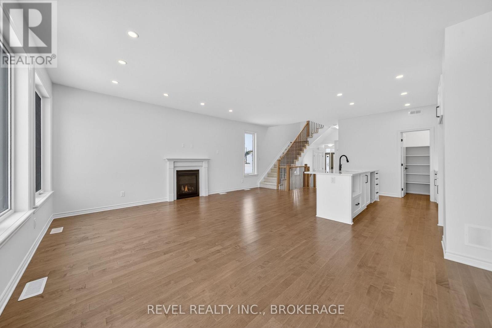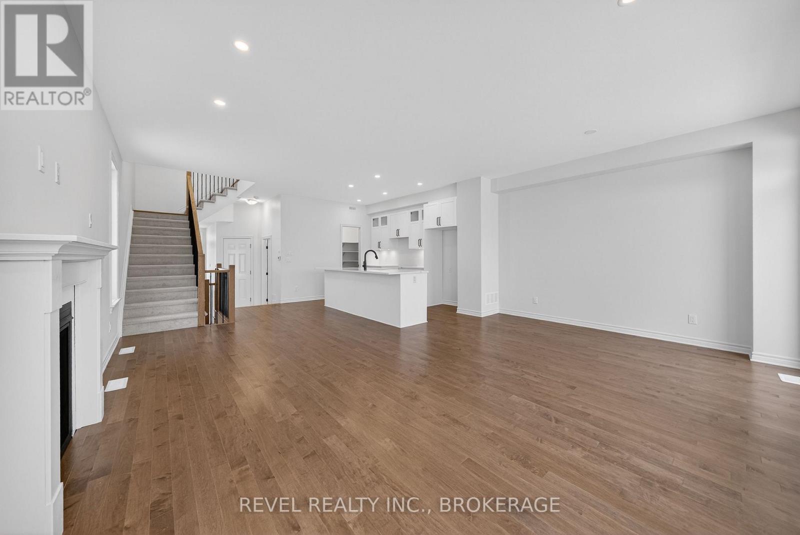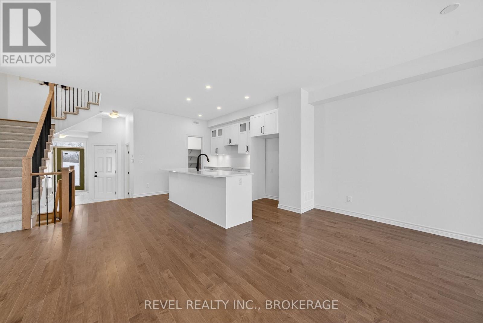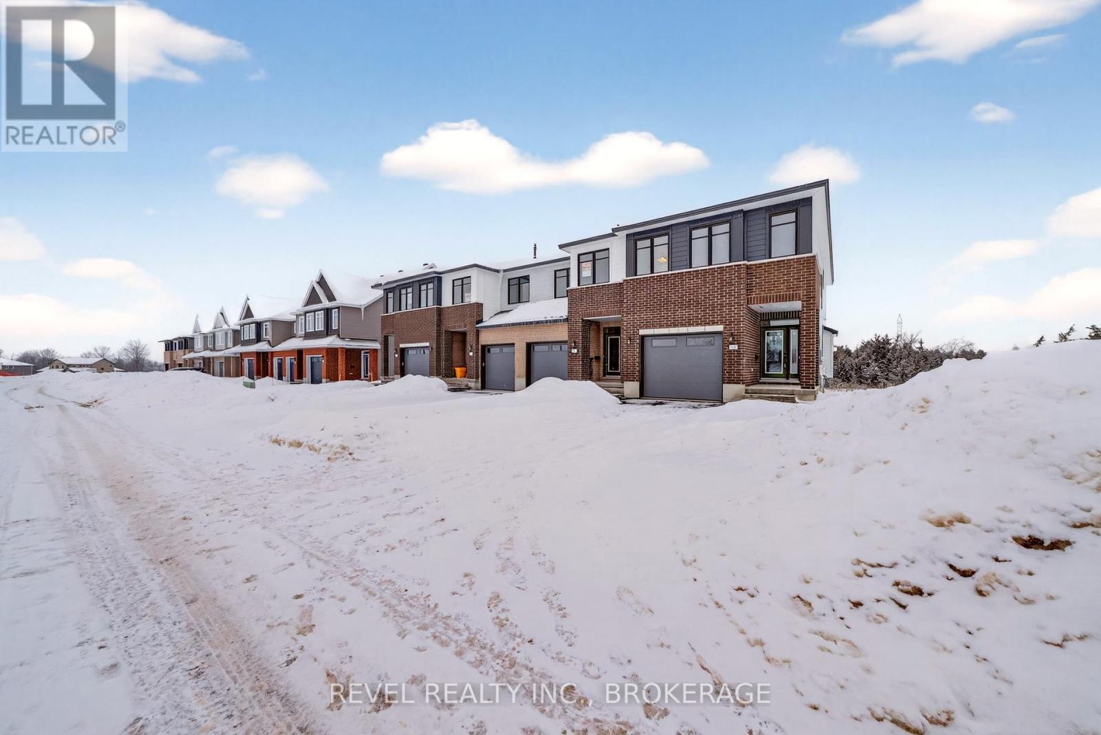 Welcome to The Camden Model! A move-in ready end-unit townhome with 2,160 sq ft of thoughtfully finished living space, located in Kingston's desirable northwest WoodHaven neighbourhood. The main level is highlighted by maple hardwood flooring, quartz countertops throughout, and a light-filled kitchen featuring white shaker-style cabinets, an upgraded sink, and a generous walk-in pantry. A gas fireplace adds warmth and character to the living area. Upstairs, the primary retreat offers a luxurious 4-piece ensuite with a freestanding soaker tub and a sleek walk-in glass/tile shower. The finished basement expands your living options and includes a bathroom rough-in for future flexibility. ENERGY STAR certified, this home blends modern design with efficiency and everyday comfort. (id:29295)