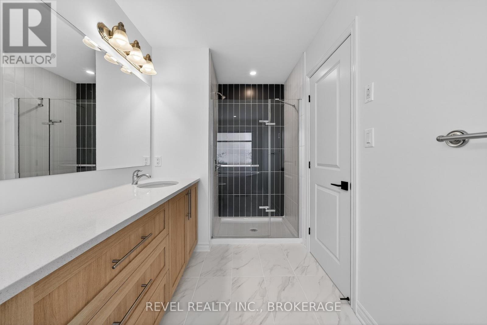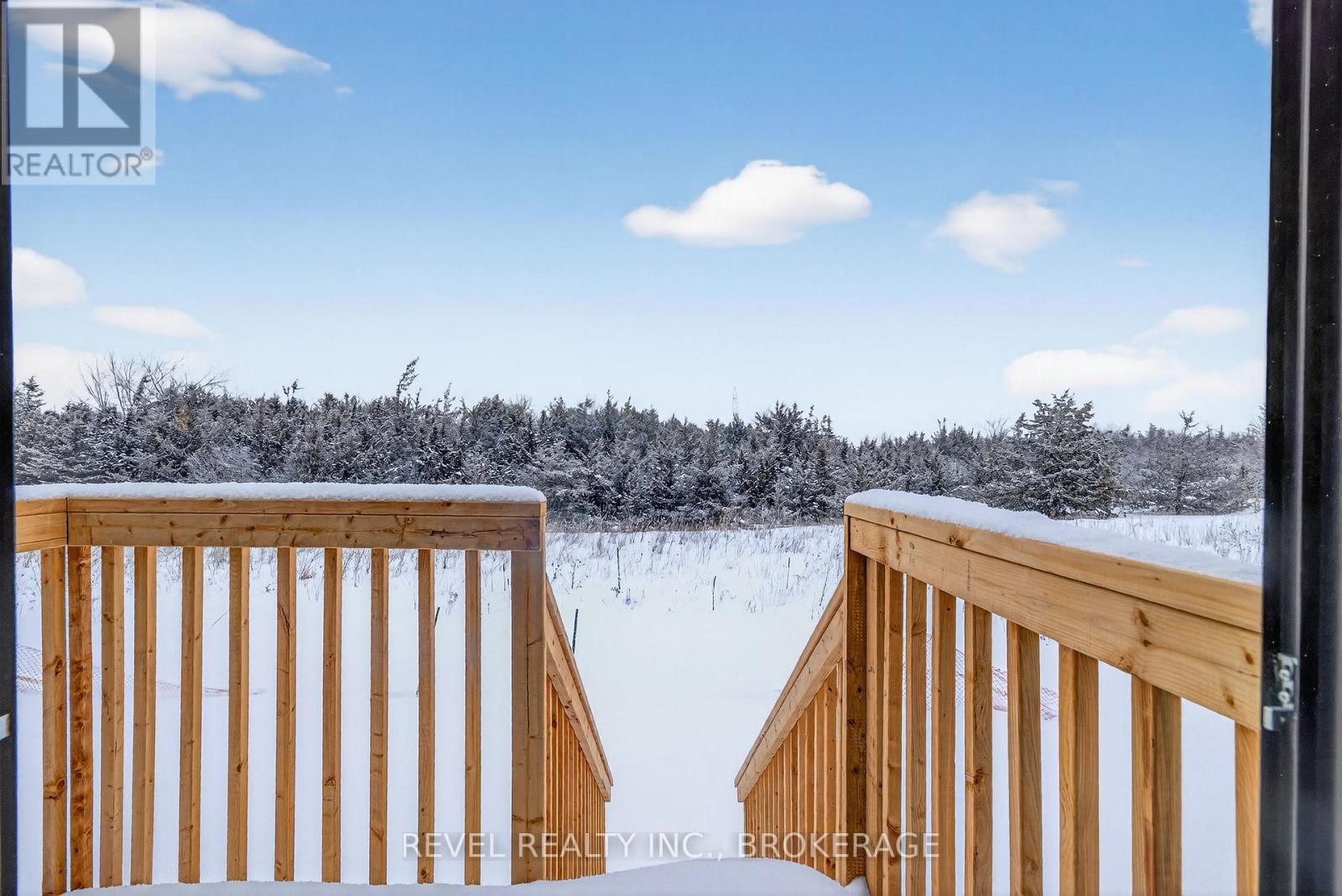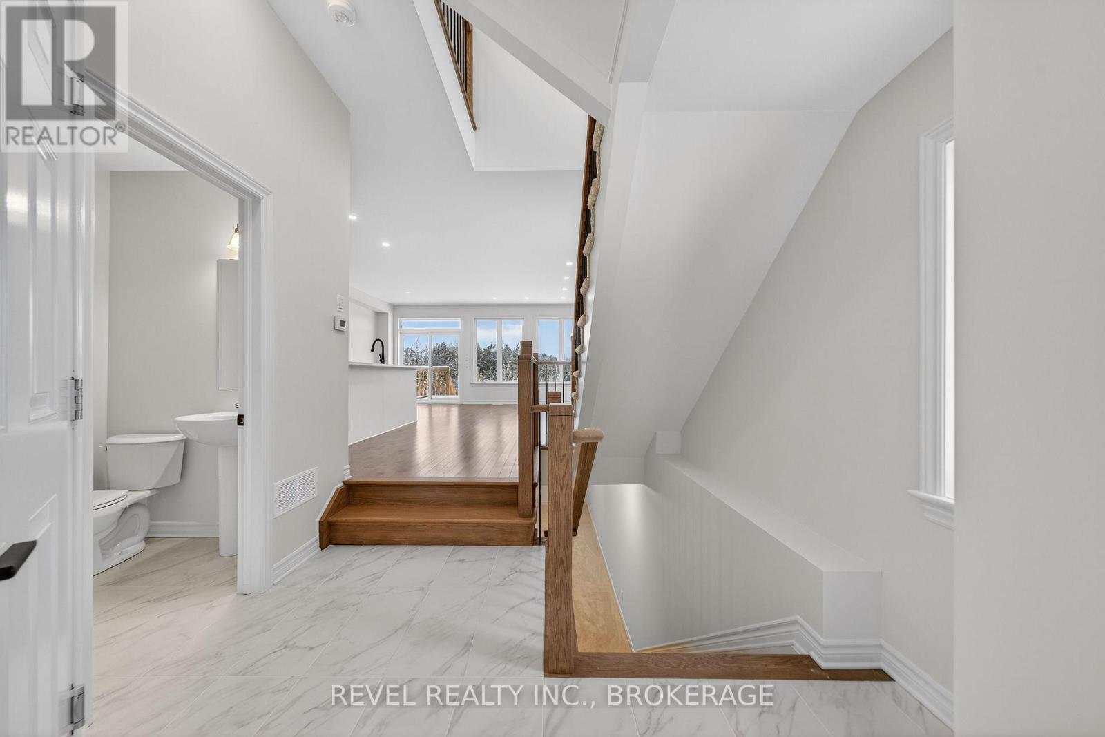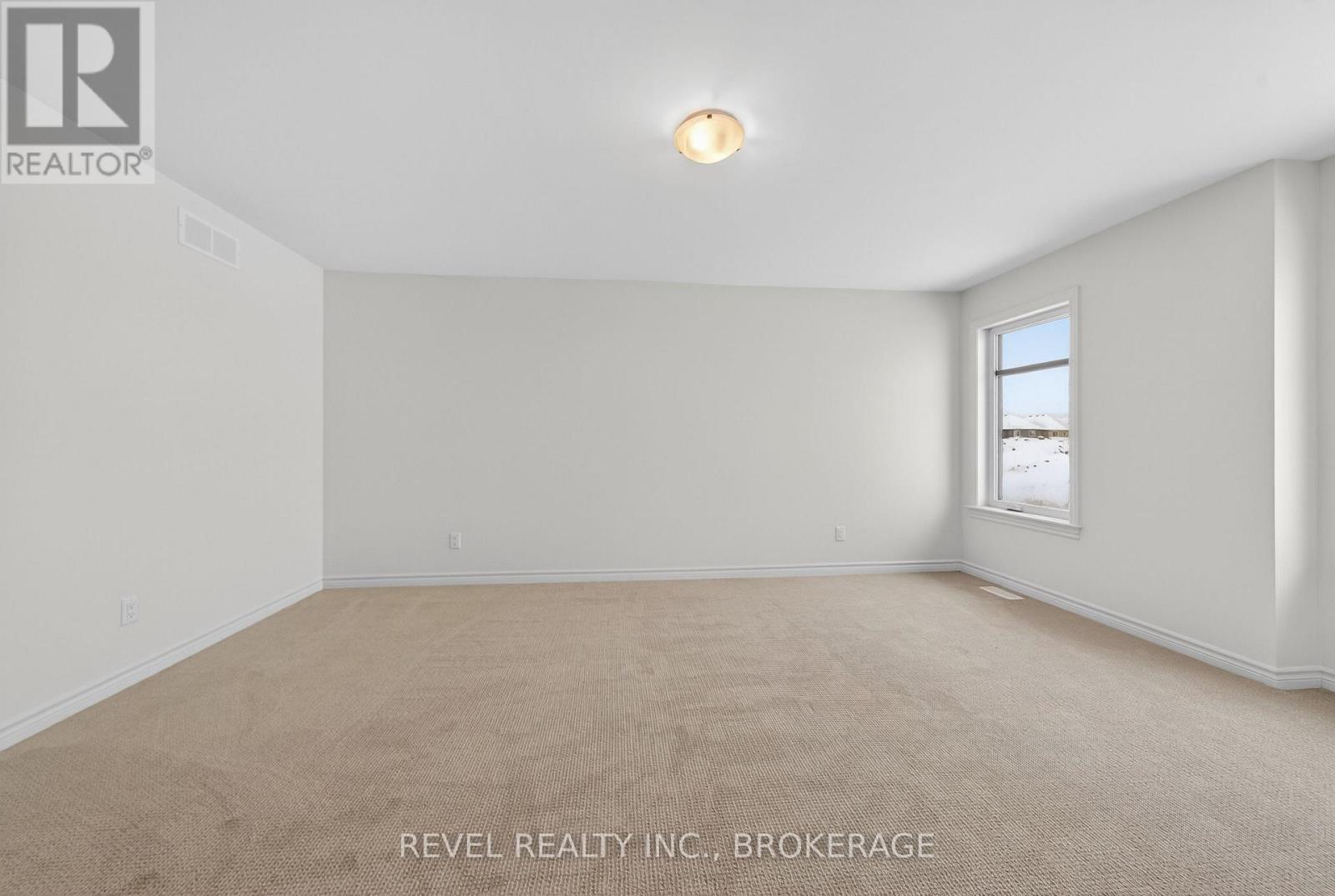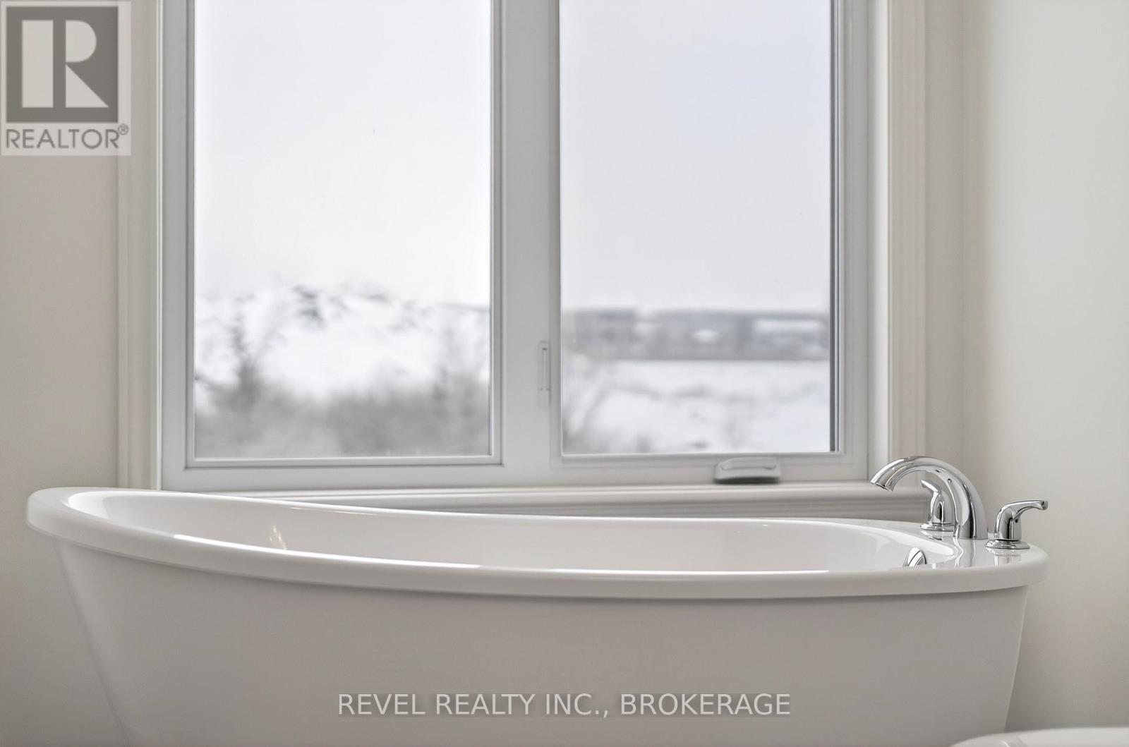 Welcome to The Camden Model! A move-in ready end-unit townhome with 2,160 sq ft of thoughtfully finished living space, located in Kingston's desirable northwest WoodHaven neighbourhood. The main level is highlighted by maple hardwood flooring, quartz countertops throughout, and a light-filled kitchen featuring white shaker-style cabinets, an upgraded sink, and a generous walk-in pantry. A gas fireplace adds warmth and character to the living area. Upstairs, the primary retreat offers a luxurious 4-piece ensuite with a freestanding soaker tub and a sleek walk-in glass/tile shower. The finished basement expands your living options and includes a bathroom rough-in for future flexibility. ENERGY STAR certified, this home blends modern design with efficiency and everyday comfort. (id:29295)