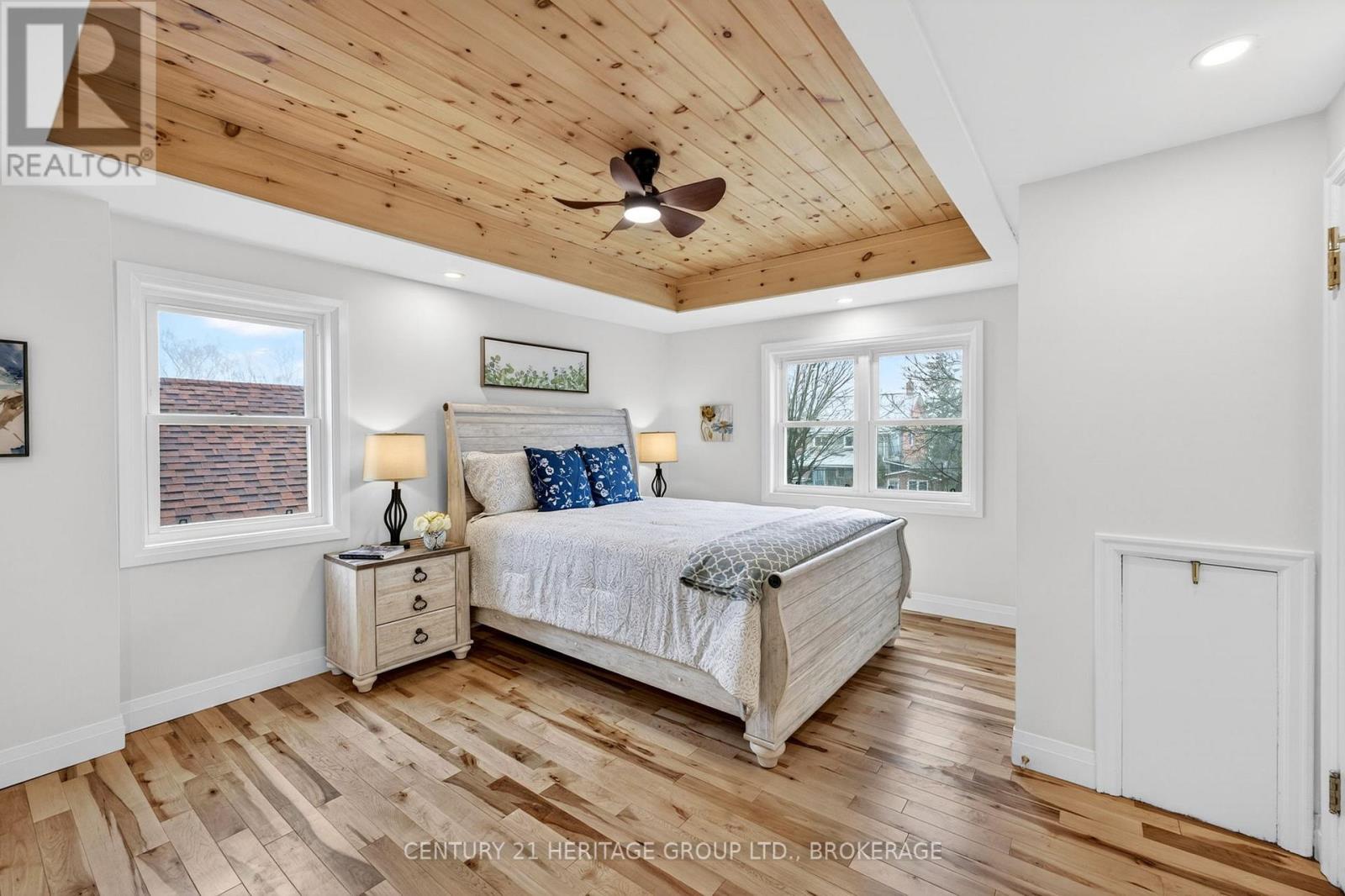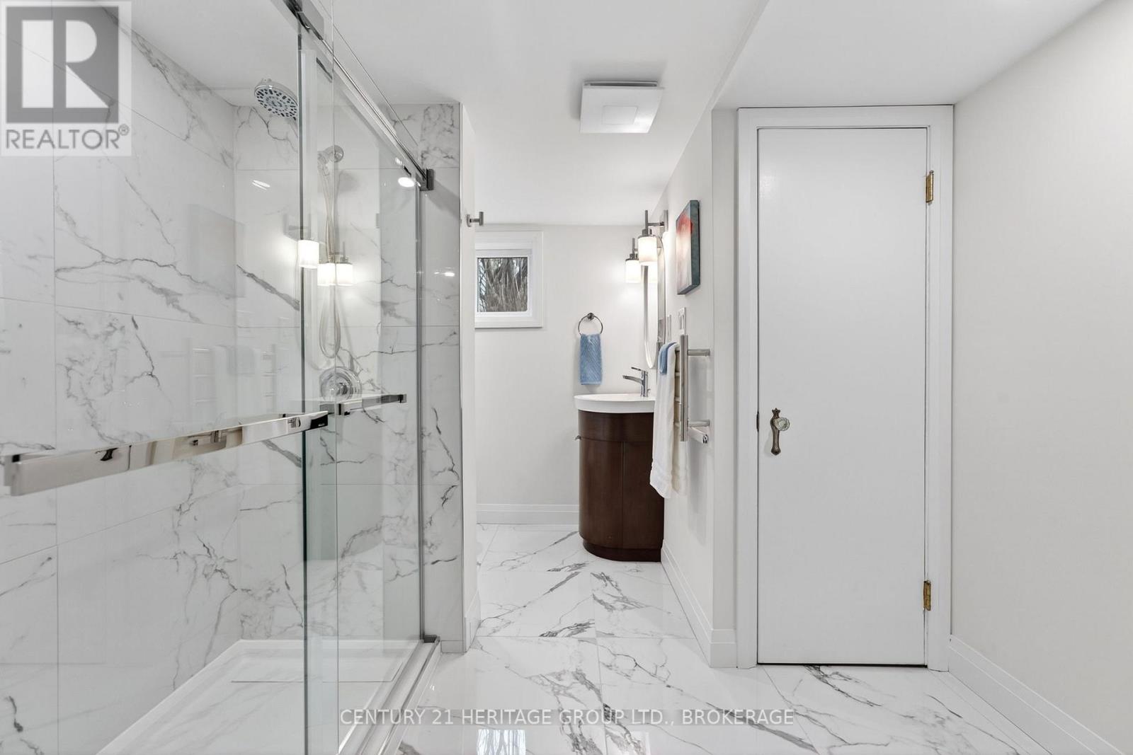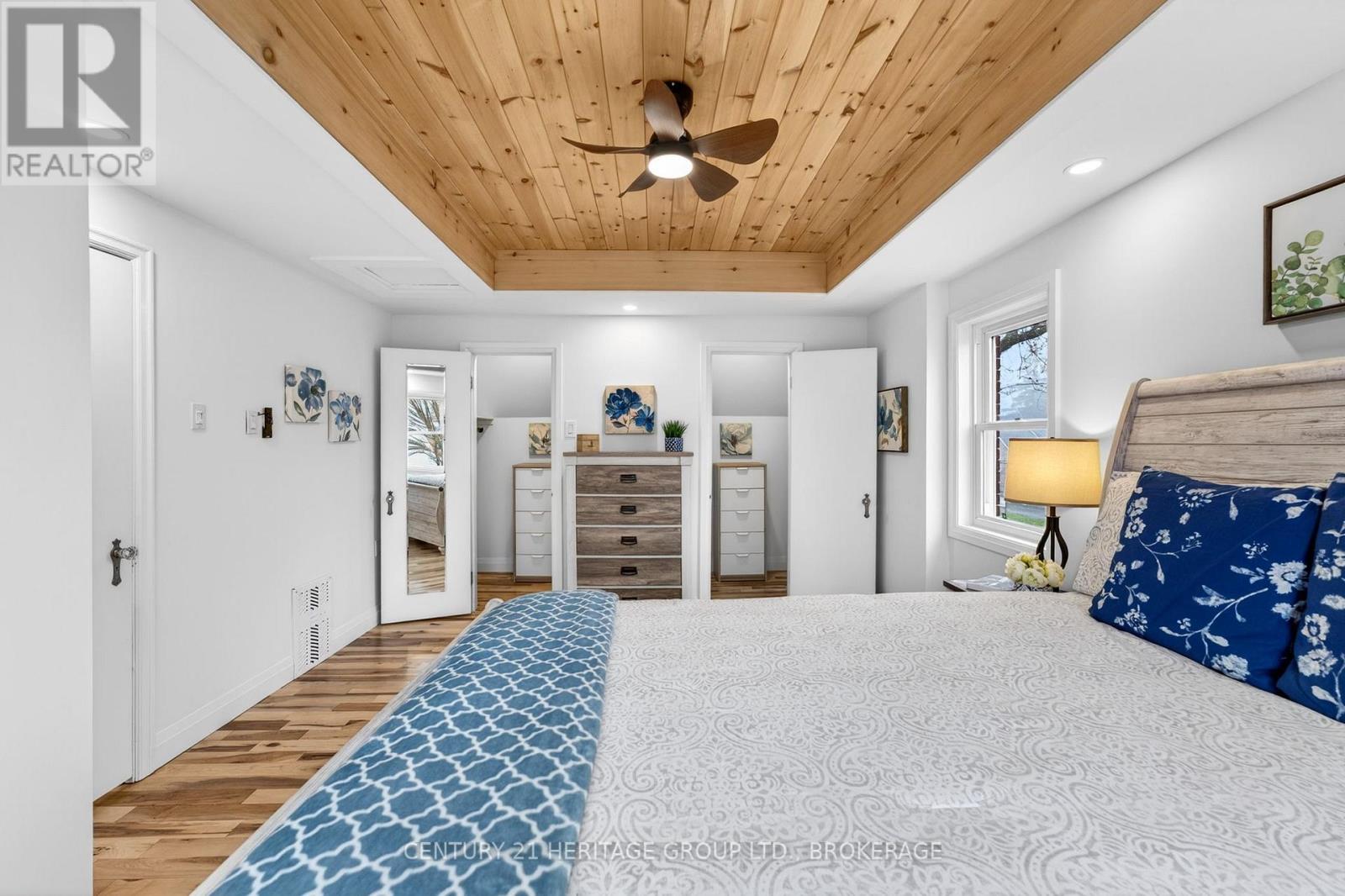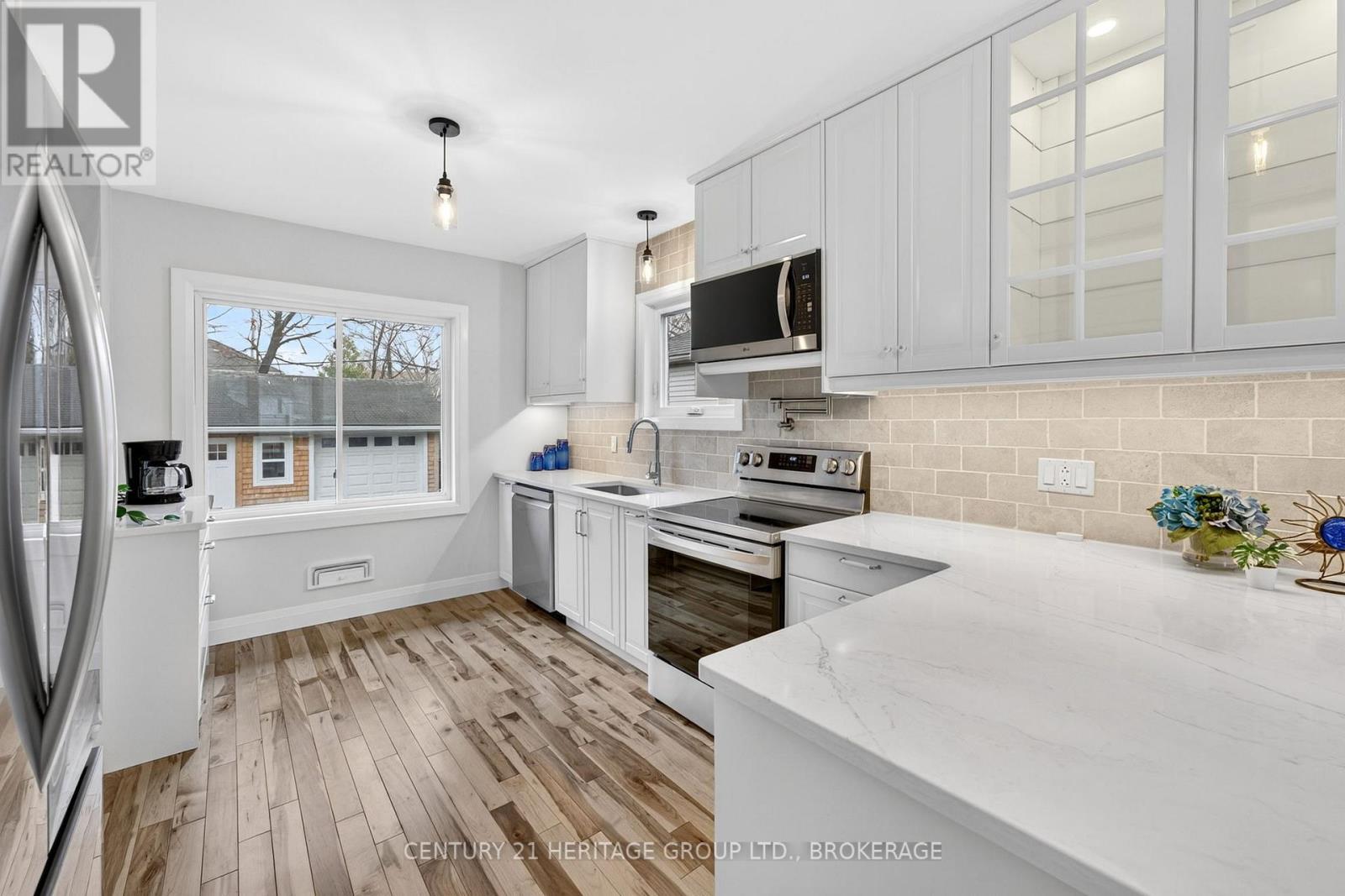 Tucked into the heart of Kingston, just minutes from downtown, Kingston General Hospital, St Lawrence College and Queen's University, this beautifully restored 1.5-storey home blends charm, comfort, and modern design. Step inside to a bright, inviting main level where every detail has been carefully considered. The galley-style kitchen features new cabinetry, quartz countertops, and all new appliances including stove, refrigerator, microwave, pot filler, and dishwasher. A cozy breakfast nook is perfect for morning coffee, while the living area with electric fireplace creates a warm atmosphere. Walk out to a deck-ideal for entertaining or relaxing. A convenient powder room near the back entrance adds everyday functionality. Upstairs offers three well-appointed bedrooms. The primary suite features a recessed natural wood ceiling and dual closet spaces. Each bedroom includes thoughtful storage, and a beautifully finished four-piece bathroom completes the level. The lower level continues to impress with a spacious laundry room and versatile secondary living area featuring a second electric fireplace and wet bar with bar fridge. A full bathroom with thermal heated floors and a heated towel rack and mirror adds a touch of everyday luxury. Outside, enjoy ample additional parking and a detached one-car garage with bonus studio space-complete with in-floor heating, fireplace and air conditioning-perfect for a home office, gym, or creative space. Located in a sought-after location minutes from Pladec Day Care Centre and in the Rideau Public, and Loyalist Collegiate and Vocational Institute School catchments. This home offers exceptional living in a central neighbourhood. More than a home-it's a lifestyle upgrade. Book your private showing today. (id:29295)