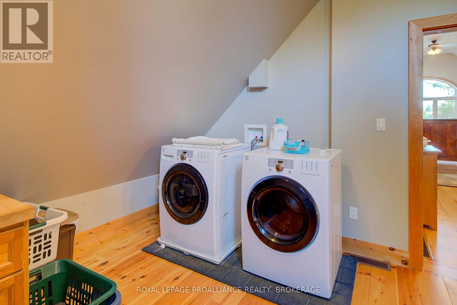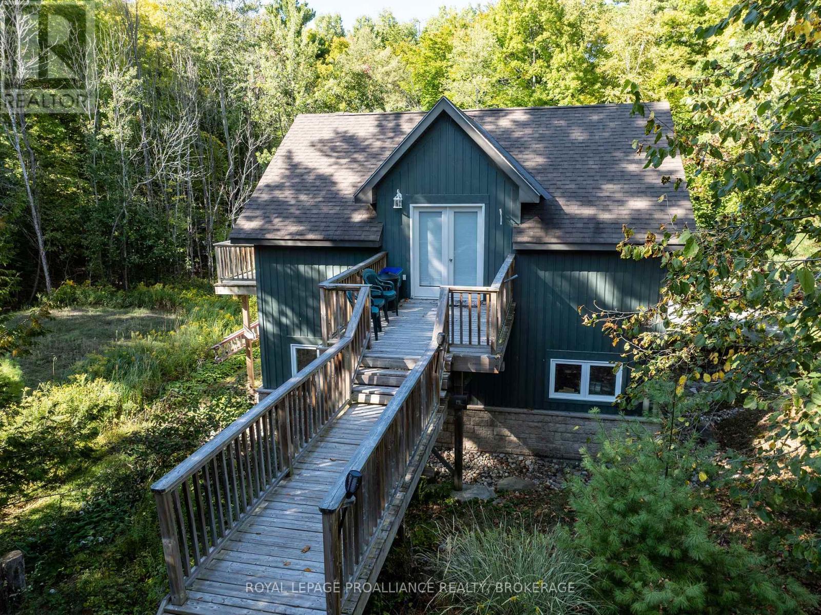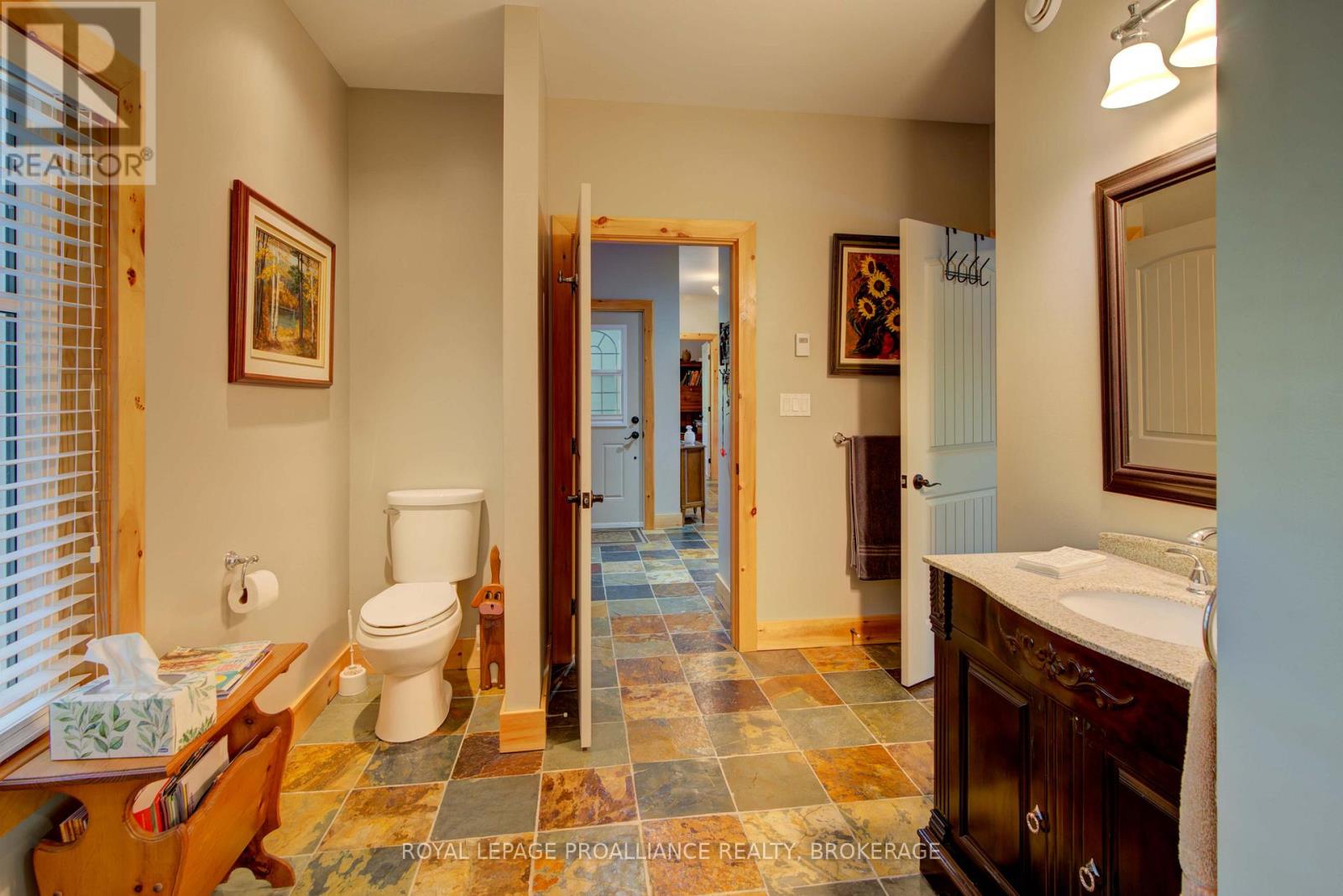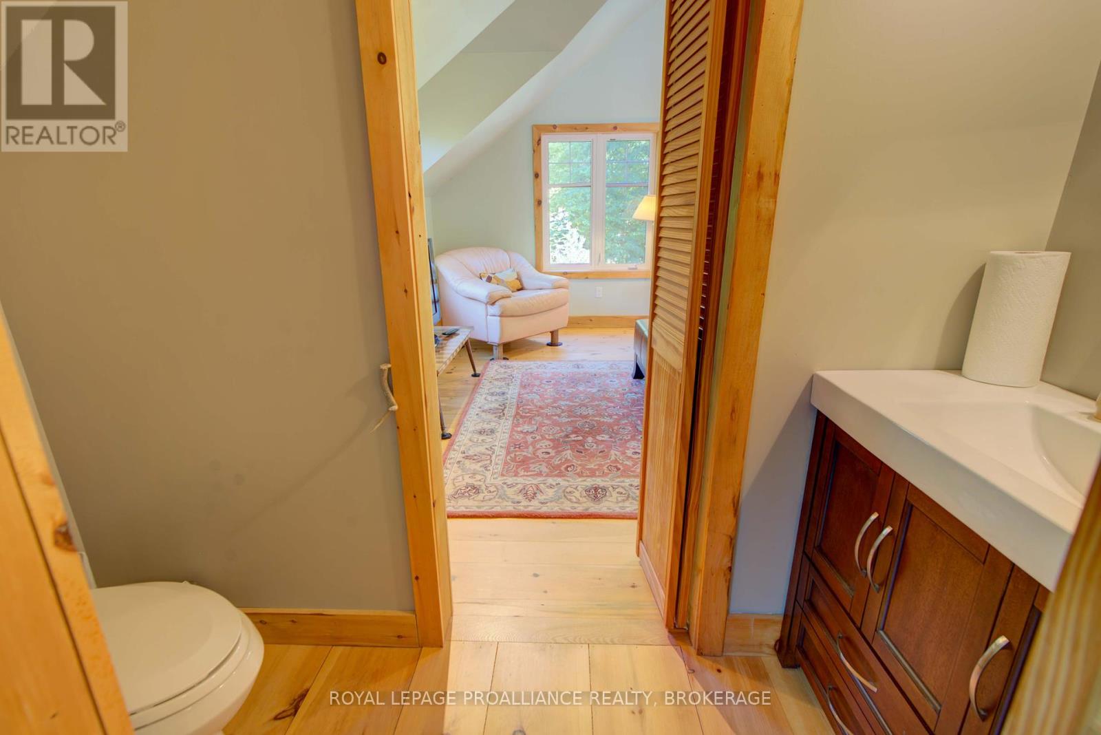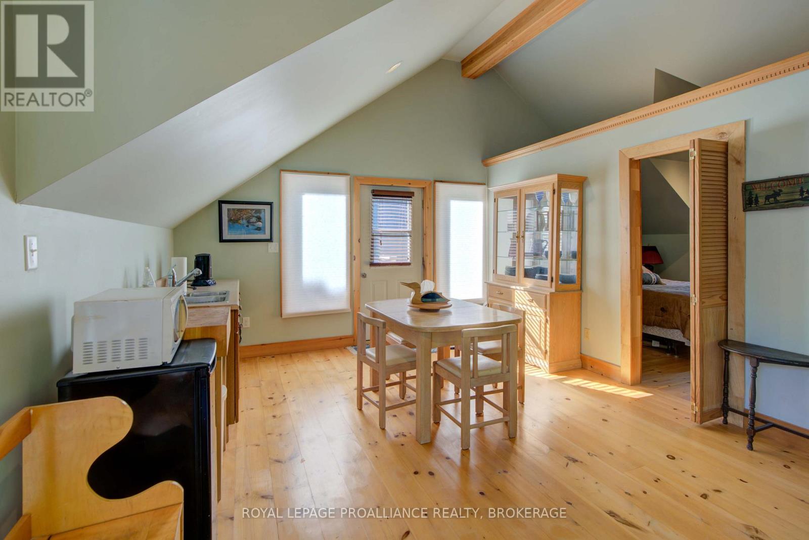 Waterfront oasis on Buck Lake! This beautiful property features 2+ acres of land and200 ft of shoreline. This gorgeous home sits close to the lake with level access to shallow water and deep water off the dock. Enjoy the large dock, covered boat slip and tiki bar - with southern exposure for sunrises and sunsets. The view is stunning looking out over the bay and the location is private & peaceful. As you enter under the timber frame porch, you immediately feel a sense of relaxation in this stunning lake house. The main floor has a large, open concept Great Room with expansive windows and access out to the deck. The custom Corelle Kitchen is a showpiece with Madagascar blue granite countertops, dbl drawer dishwasher, under-counter microwave and a pot filler above the propane stove. Enjoy cozy evenings with the warmth of the Pacific Energy wood-stove. The main floor bedroom has an attached 4-pc bath that also has access from the foyer. The office next to the foyer could be another bedroom. The bathrooms and foyer have heated slate floors while the balance of the home has wide-plank pine flooring - from trees on the property! The second level features a large bedroom at the rear, laundry area and an amazing primary bedroom with cathedral ceilings, custom cabinets, a 3-piece ensuite bath and gorgeous views over the pristine waters of the lake. The partial basement has concrete floor & spray foam walls and the home is heated by propane forced air, has 200-amp service, a lake water system with UV light, Hide-A-Hose central vacuum, HRV, electric hot water, A/C and an on-demand backup generator system. A catwalk leads from the house to extra living space above the 2-car detached garage. This space has a large family room, dining area, kitchenette along with a bedroom and a 2-piece bath. The exterior of the home and garage have vertical Timberthane wood siding with a lifetime guarantee. Stunning home located just south of Westport or 40minutes north of Kingston. (id:29295)