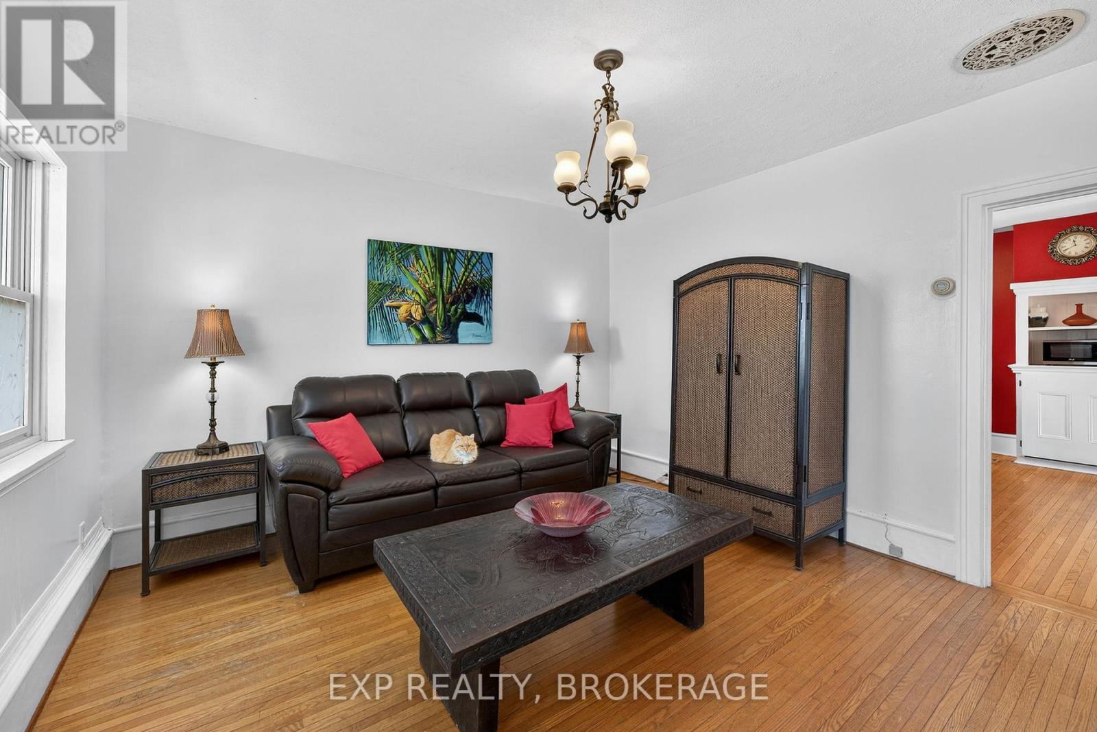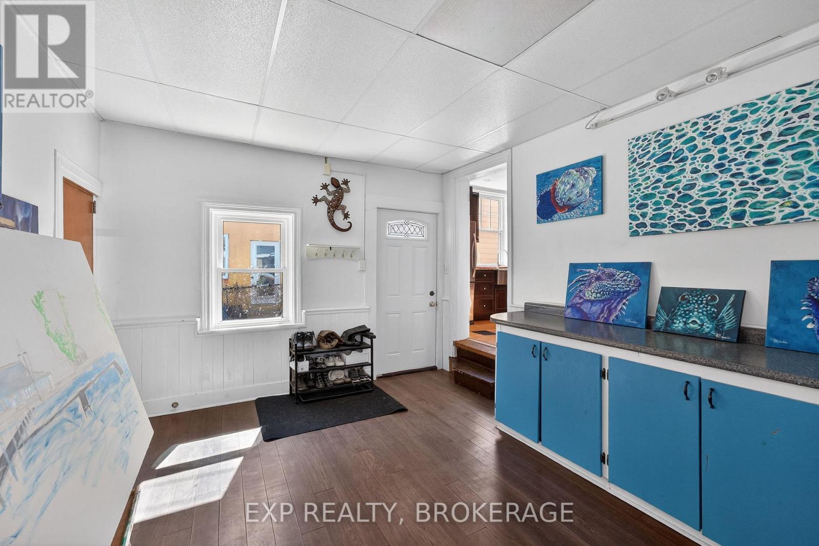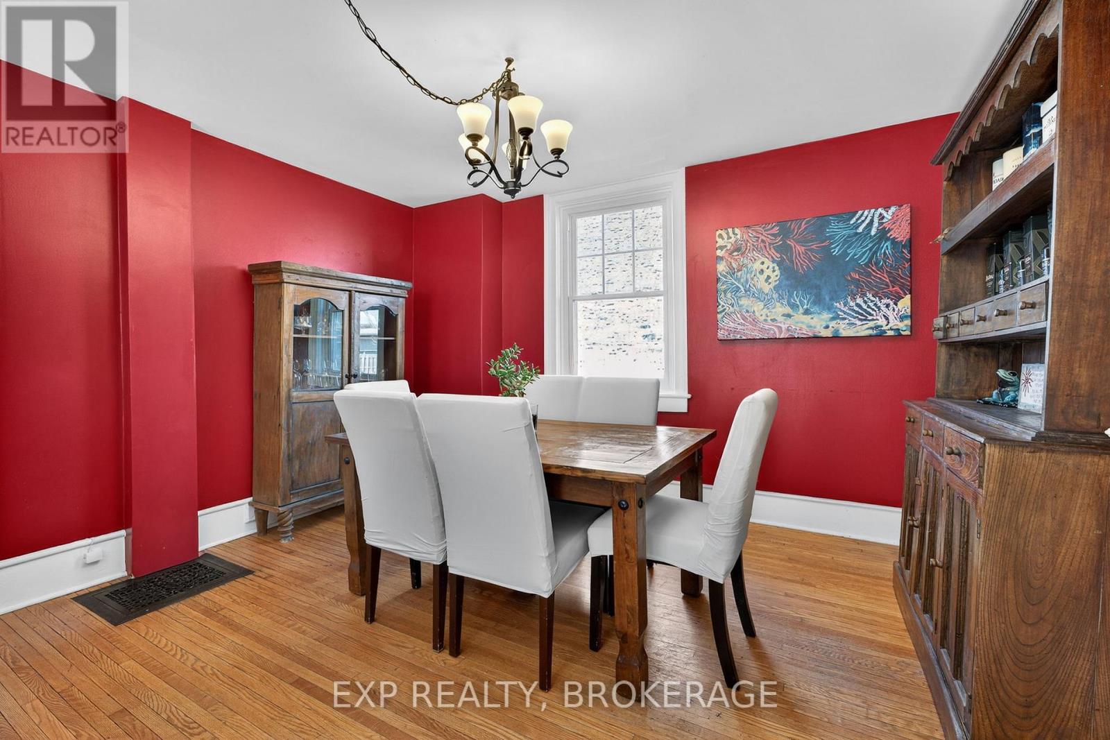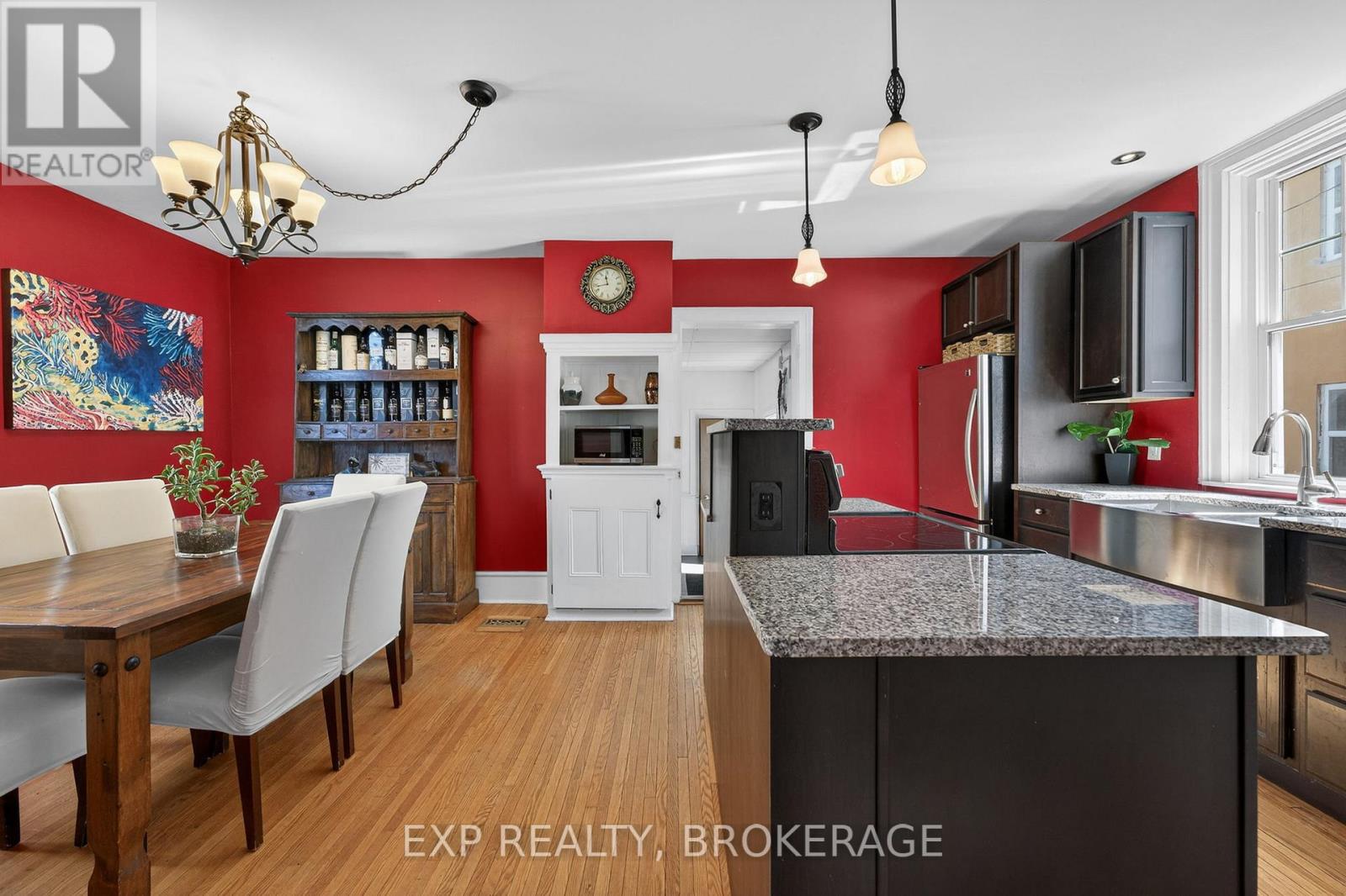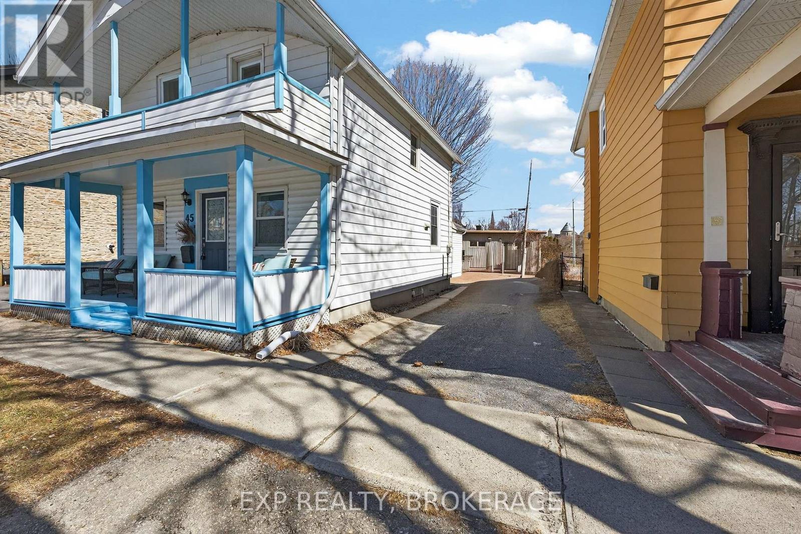 Welcome to 45 Main Street in the heart of Gananoque. A rare opportunity just steps from the scenic St. Lawrence River in the gateway to the Thousand Islands.This charming and versatile home welcomes you with a covered front porch and a bright, spacious main level featuring a generous living room, dining area, and an updated kitchen designed for both everyday living and entertaining. A flexible rear room with its own side entrance offers incredible potential-perfect for a home office, small business, or easily used as a main floor bedroom, along with a convenient 2-piece bath on the main floor. Just beyond, an additional bonus space with attic loft provides excellent flexibility for a workshop, hobby area, or extra storage-ideal for those needing room to create, build, or stay organized. Upstairs, you'll find three comfortable bedrooms and a full bathroom, offering ideal space for families or guests.Outside, enjoy a yard complete with a patio and deck-perfect for entertaining or relaxing. The unbeatable walkable location provides easy access to the marina, parks, shops, restaurants, and local attractions.Set in one of Eastern Ontario's most desirable waterfront communities, known for its vibrant lifestyle and proximity to major centres, this is your chance to own a character-filled home in a high-demand location. CR zoning allows for a variety of residential or commercial uses. A standout opportunity in an exceptional setting. (id:29295)