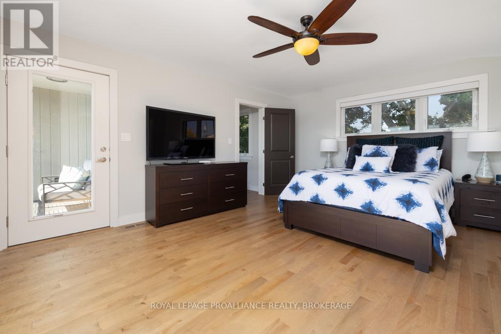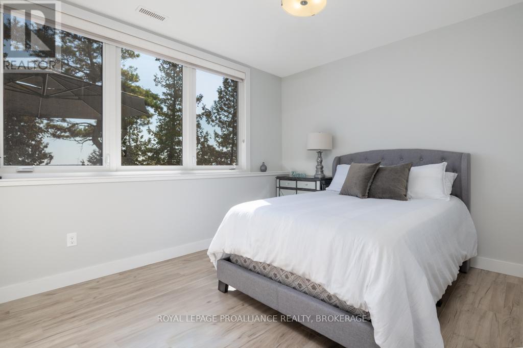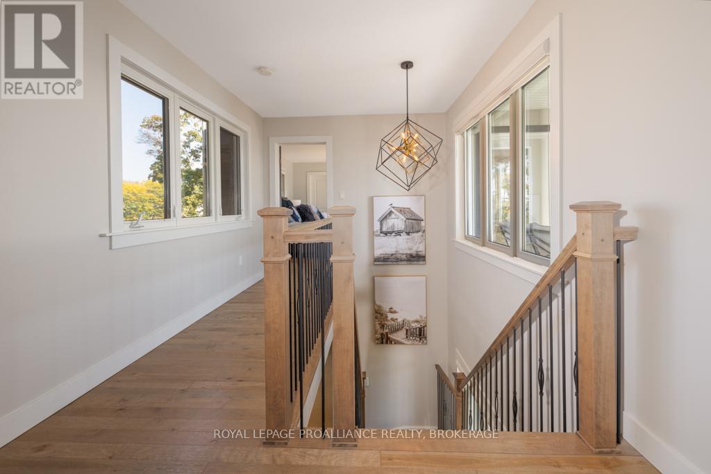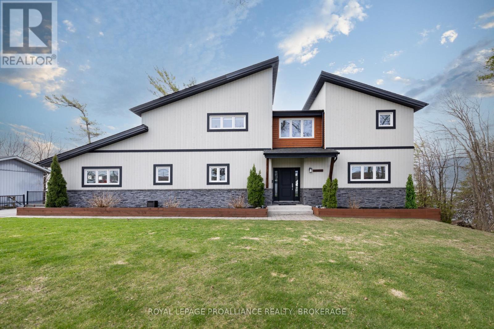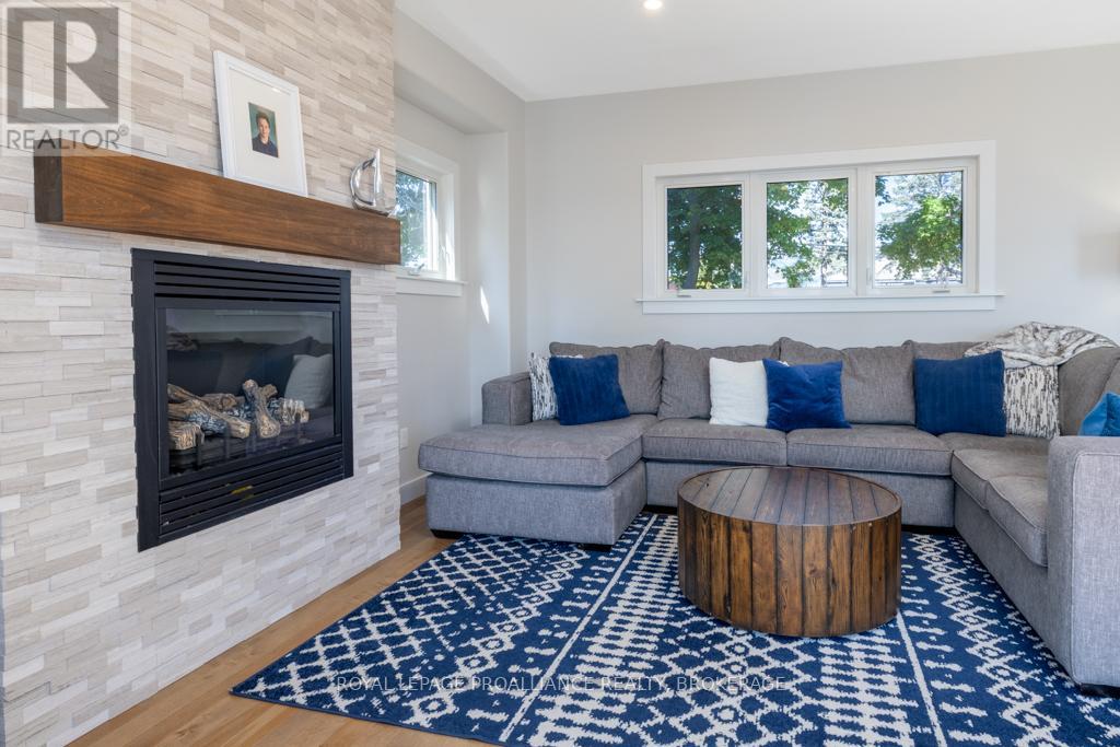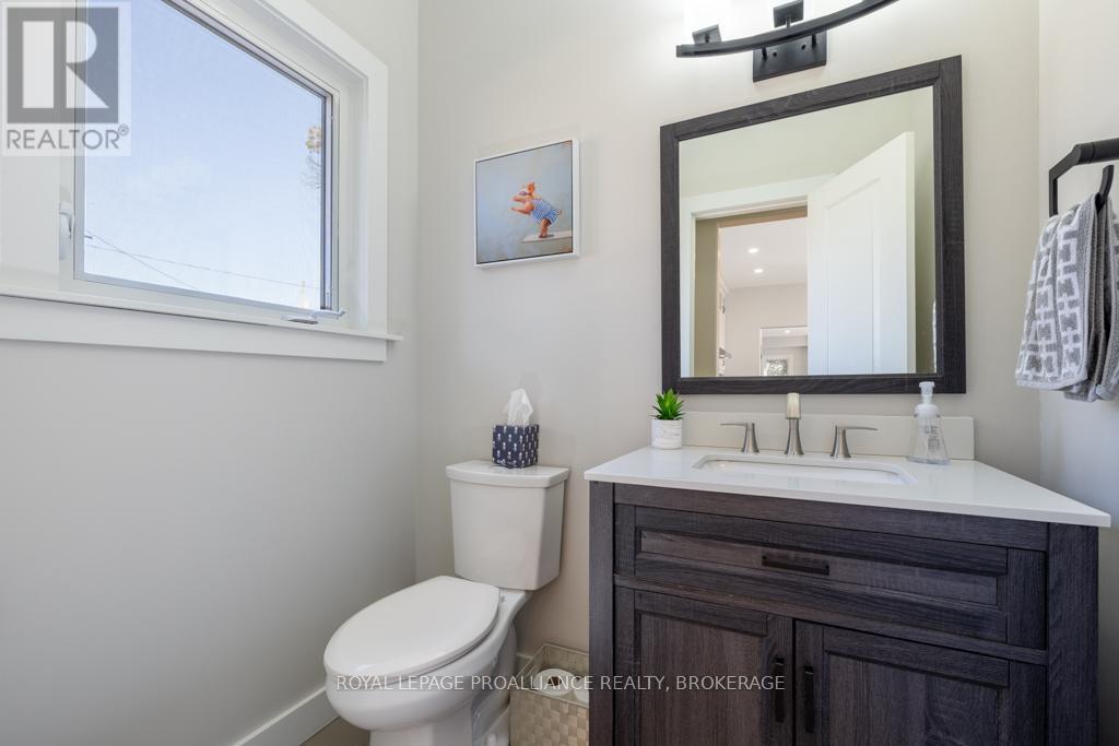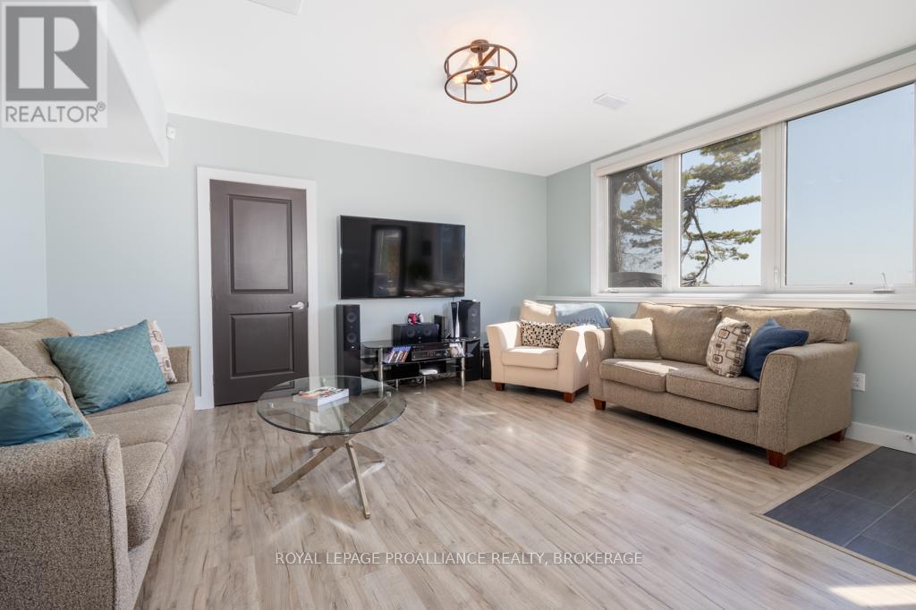 Welcome to your dream home on the shores of Lake Ontario-- where stunning design meets serene natural beauty. This West Coast inspired residence offers nearly 2200 square feet of living space & jaw dropping views from nearly every room. Step into a thoughtfully laid out, light filled interior featuring 3 bedrooms and 3.5 bathrooms. The large kitchen and dining room flows into a warm, inviting living room with propane fireplace and walk-out to a water facing deck, perfect for relaxing with your favourite book. The main floor also features a powder room and laundry/mudroom. The expansive primary bedroom is a true sanctuary, boasting its ow private deck overlooking the lake, a spa-like ensuite with double sinks, glass shower, and stand alone tub, and a walk-in closet. The second upstairs bedroom also features its own ensuite, ideal for family or guests. The finished lower level includes a bedroom & bathroom and spacious family room with walk-out to a large stone patio with fire pit area. Enjoy direct access to the water via a charming lookout/landing & stairs that lead straight into the lake-- swimming, kayaking, and sunsets await. All the benefits of waterfront living with the convenience of city services-- no septic or well worries here. Ideally located just minutes west of Kingston, with a marina just down the road and an easy commute to area shopping, downtown, hospitals, Queen's University, and St. Lawrence College. This is more than a home-- it's a lifestyle. Book your private showing today. (id:29295)