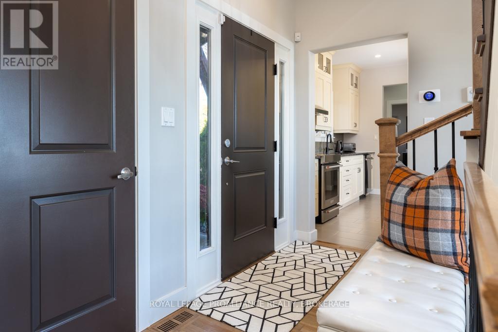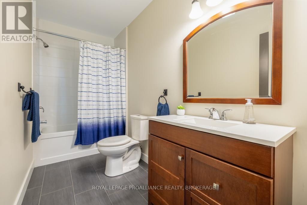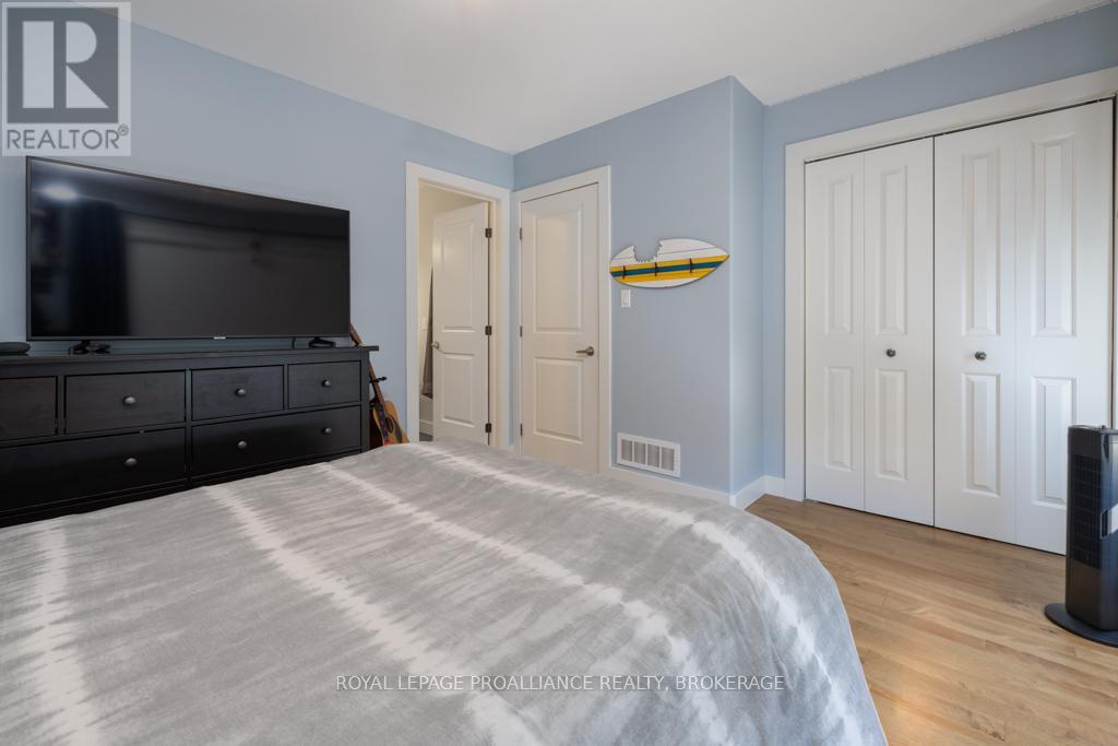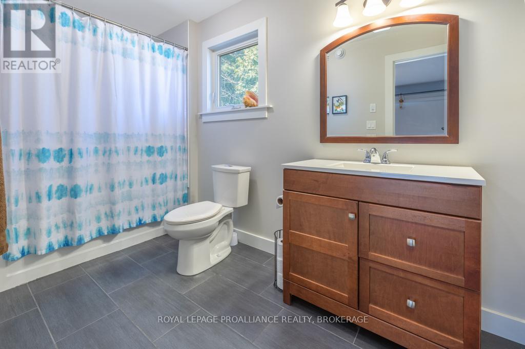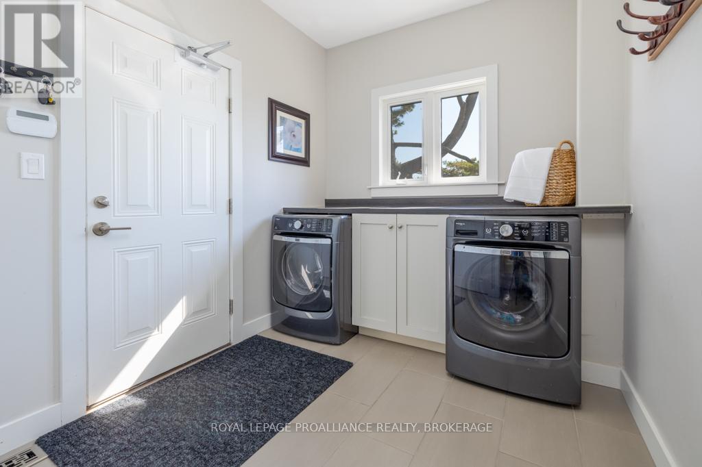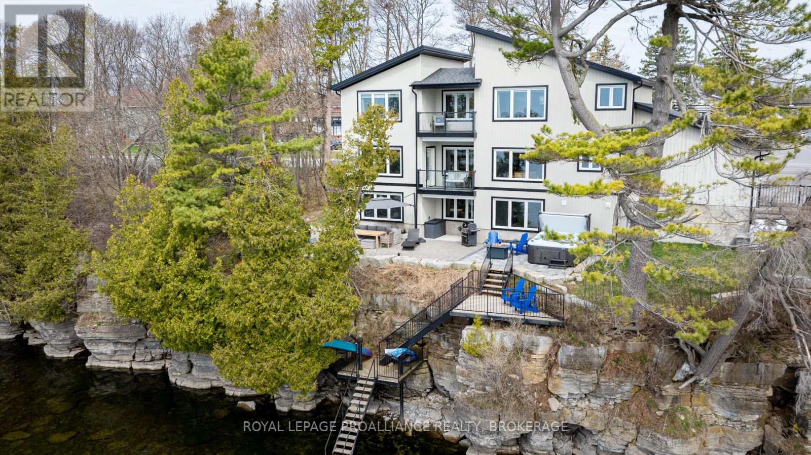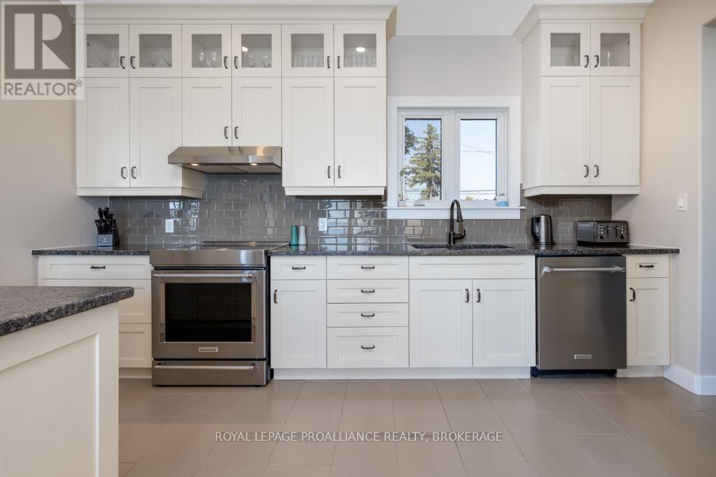 Welcome to your dream home on the shores of Lake Ontario-- where stunning design meets serene natural beauty. This West Coast inspired residence offers nearly 2200 square feet of living space & jaw dropping views from nearly every room. Step into a thoughtfully laid out, light filled interior featuring 3 bedrooms and 3.5 bathrooms. The large kitchen and dining room flows into a warm, inviting living room with propane fireplace and walk-out to a water facing deck, perfect for relaxing with your favourite book. The main floor also features a powder room and laundry/mudroom. The expansive primary bedroom is a true sanctuary, boasting its ow private deck overlooking the lake, a spa-like ensuite with double sinks, glass shower, and stand alone tub, and a walk-in closet. The second upstairs bedroom also features its own ensuite, ideal for family or guests. The finished lower level includes a bedroom & bathroom and spacious family room with walk-out to a large stone patio with fire pit area. Enjoy direct access to the water via a charming lookout/landing & stairs that lead straight into the lake-- swimming, kayaking, and sunsets await. All the benefits of waterfront living with the convenience of city services-- no septic or well worries here. Ideally located just minutes west of Kingston, with a marina just down the road and an easy commute to area shopping, downtown, hospitals, Queen's University, and St. Lawrence College. This is more than a home-- it's a lifestyle. Book your private showing today. (id:29295)