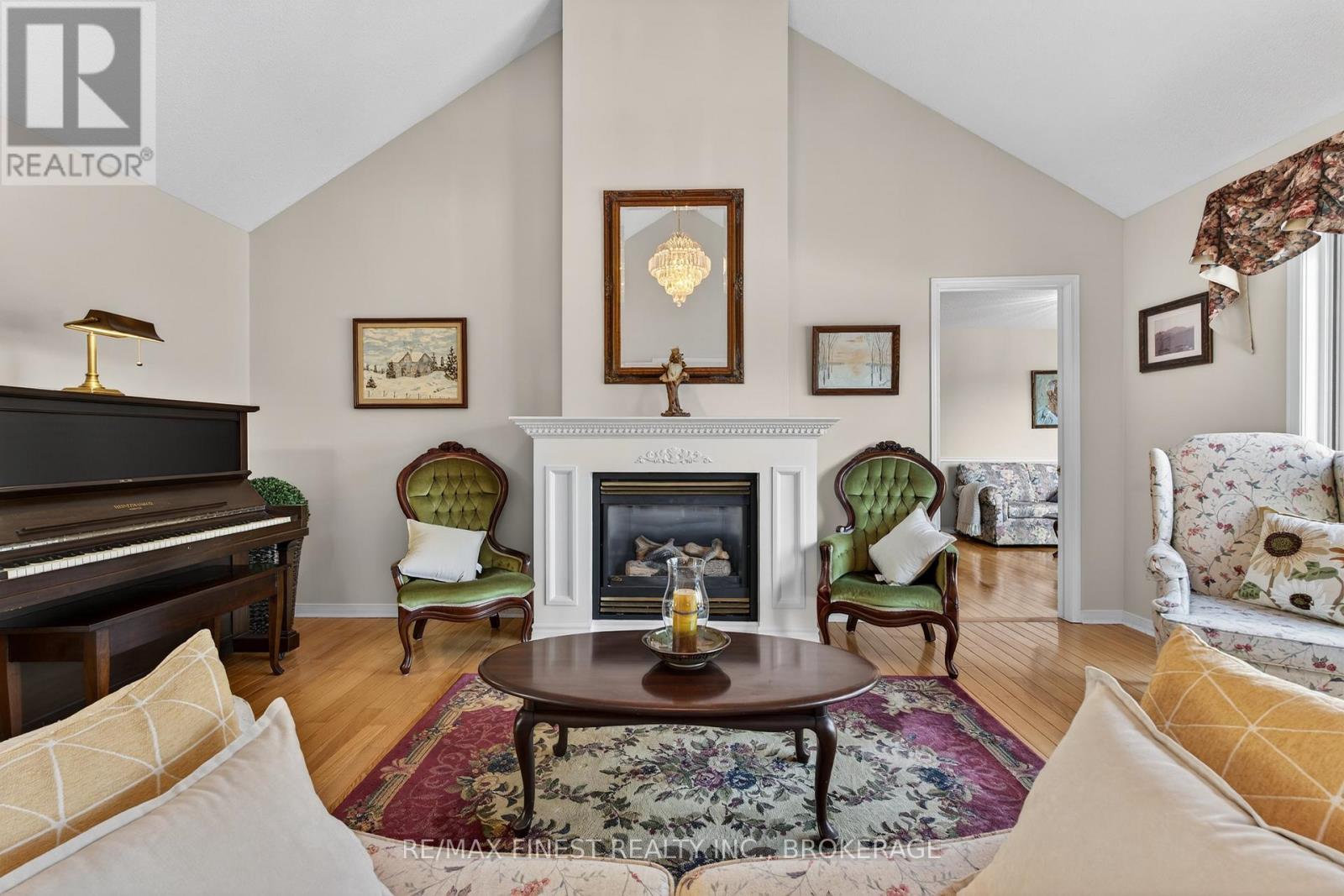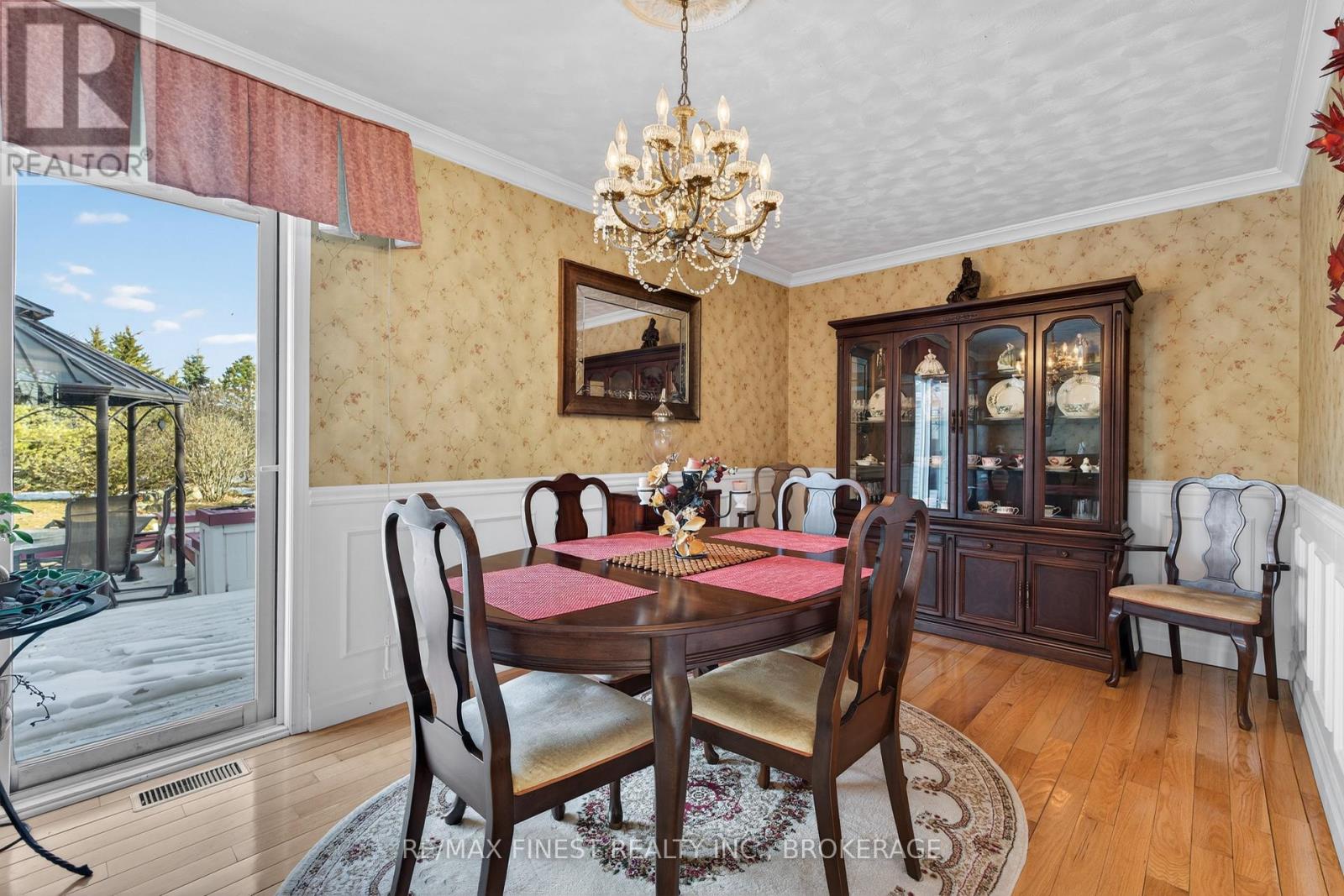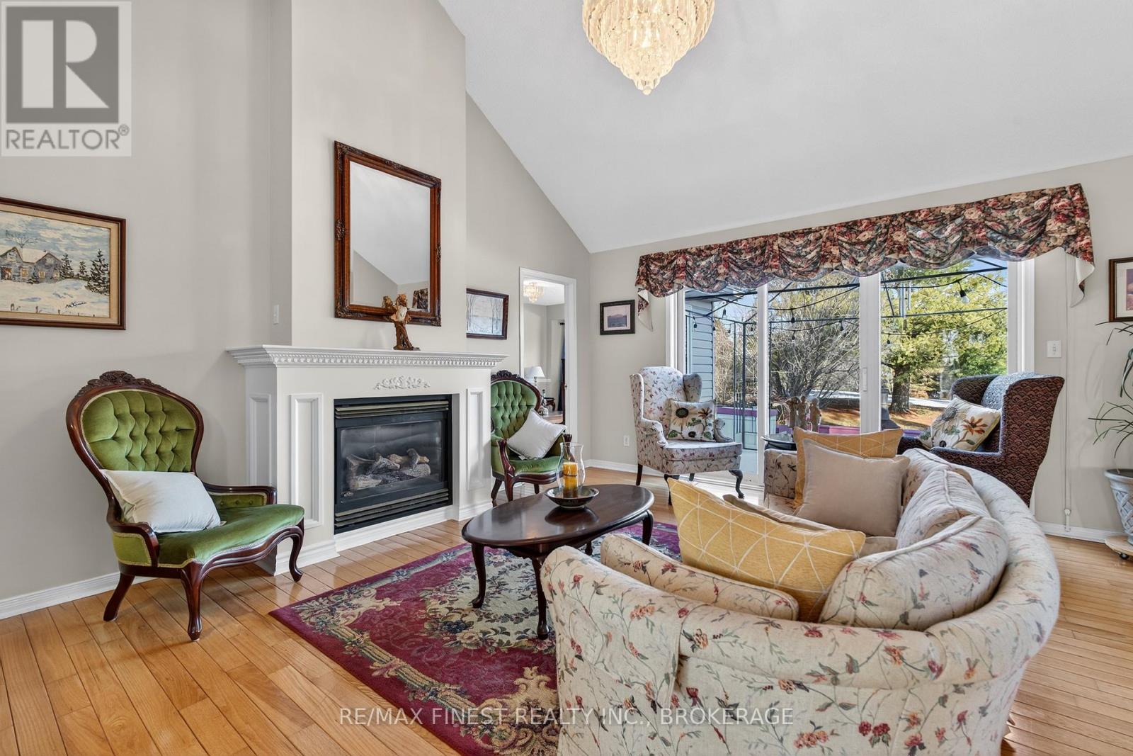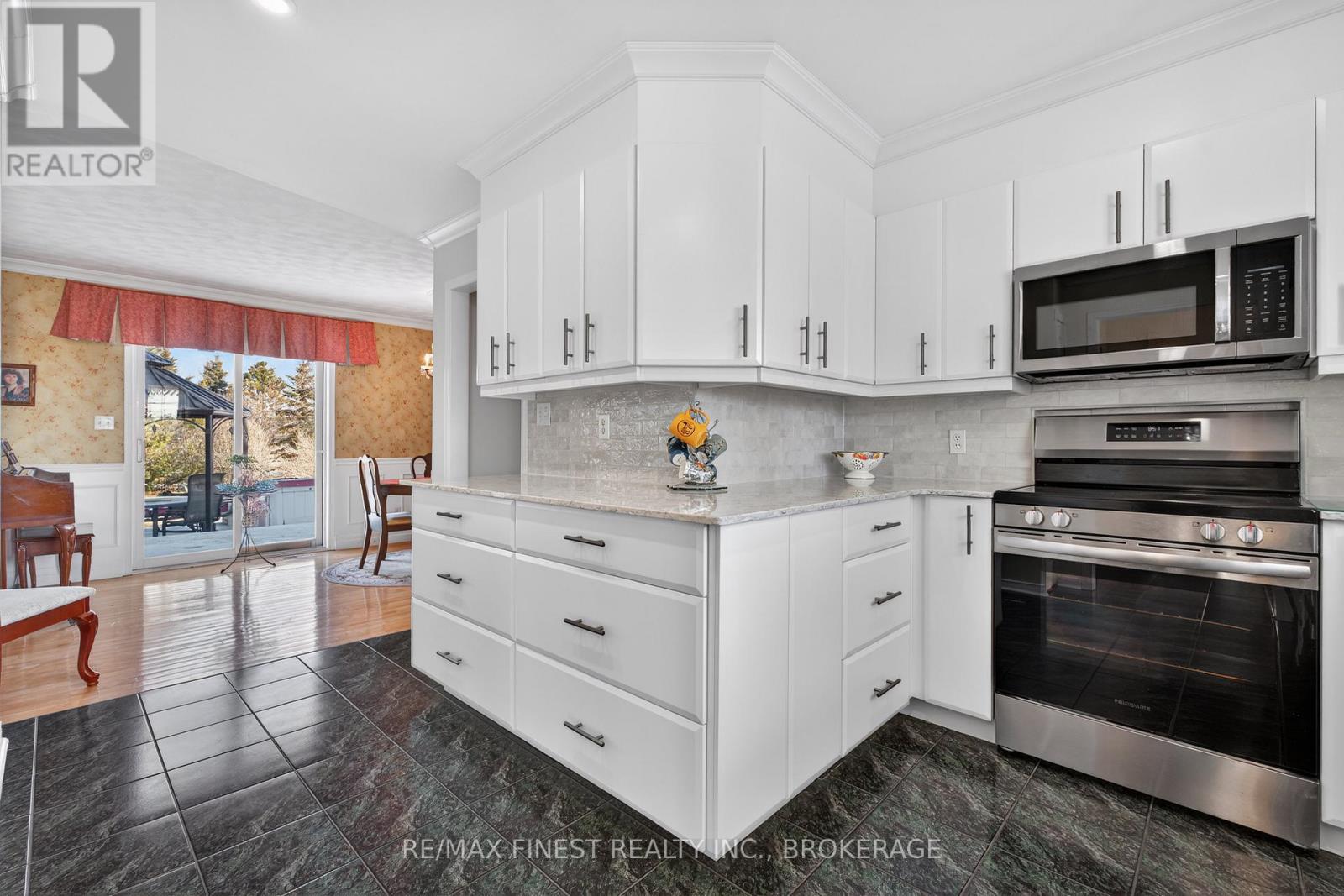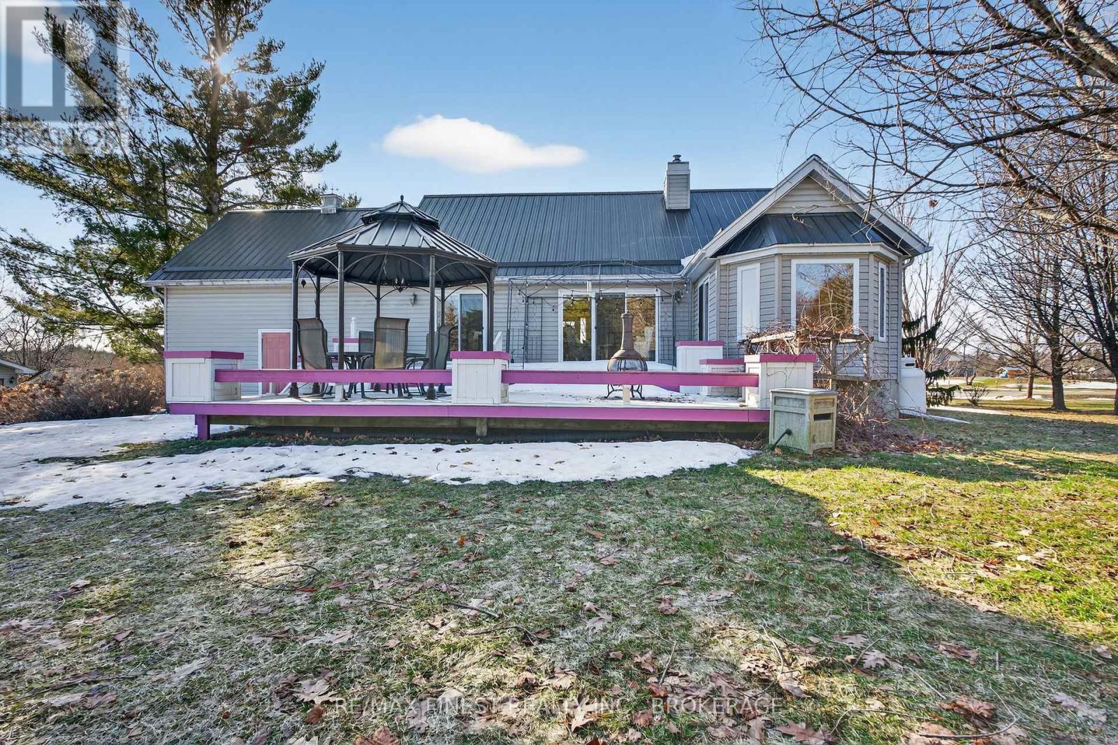 Great Neighbourhood perfect for young families and retirees alike! This updated 1560sf bungalow sits on a private1.2-acre lot in Victorian Lake Estates near Sydenham Lake. With over 2840sf of finished space, it offers a new custom kitchen with quartz counters, 3 bedrooms (master bedroom with ensuite, patio door and bay window), a vaulted great room with patio door and propane fireplace, separate formal dining room with another patio door. Hardwood and ceramic floors throughout most of the main floor. The lower level features an office/den/bedroom and a spacious rec room with electric fireplace, and large utility room with ample storage. Extras include: a400sf detached insulated and heated garage/workshop; 1-year-old propane furnace; HRV; UV/RO water treatment; metal roof; large rear deck with gazebos; elevated front porch; beautifully-landscaped grounds. Close proximity to all amenities, the Cataraqui Trail, Sydenham Lake and just 18 minutes north of Kingston/Hwy 401. (id:29295)