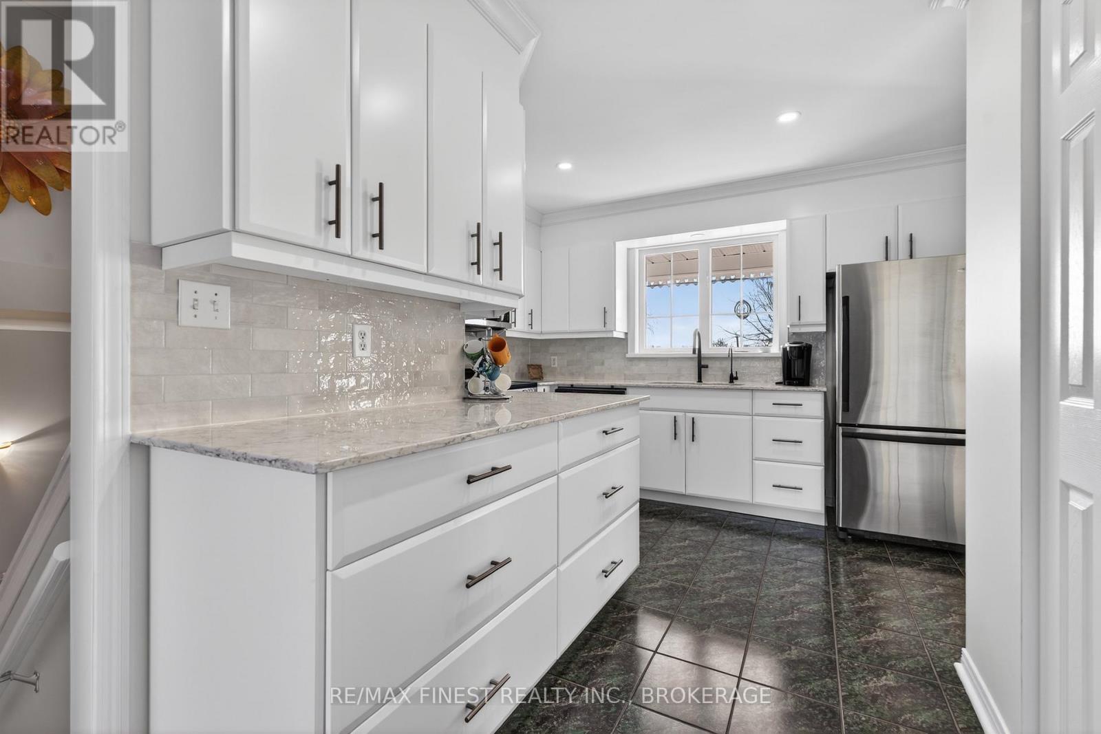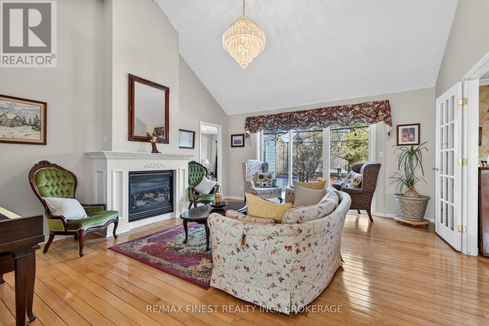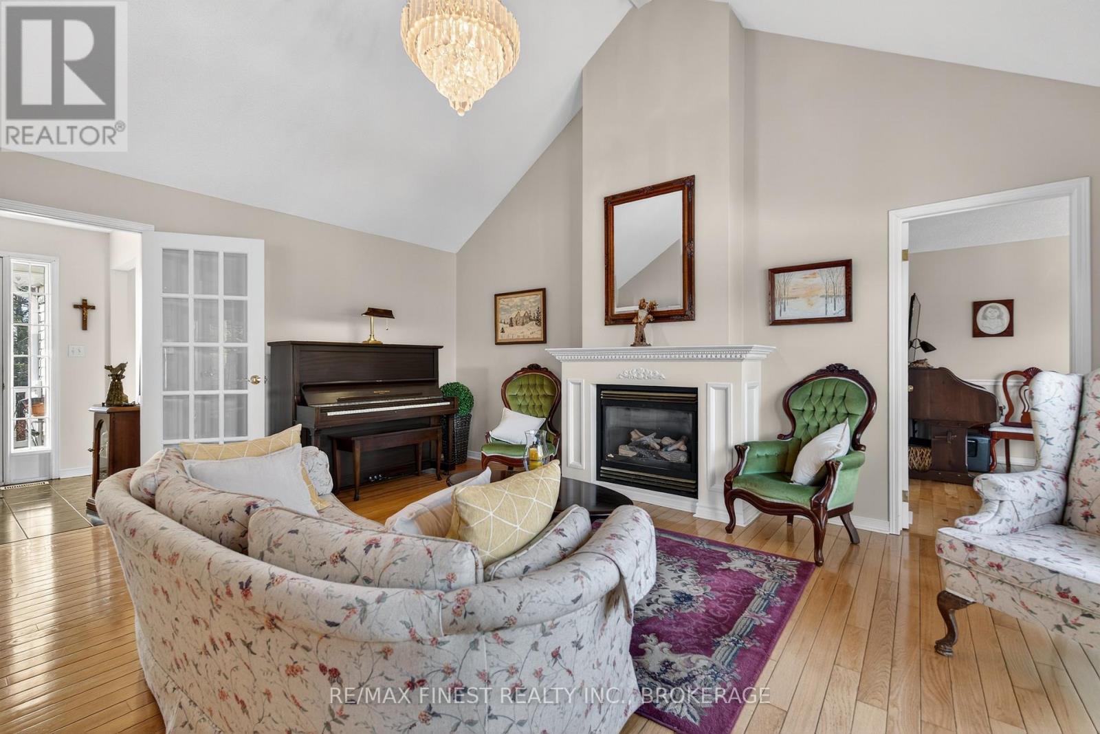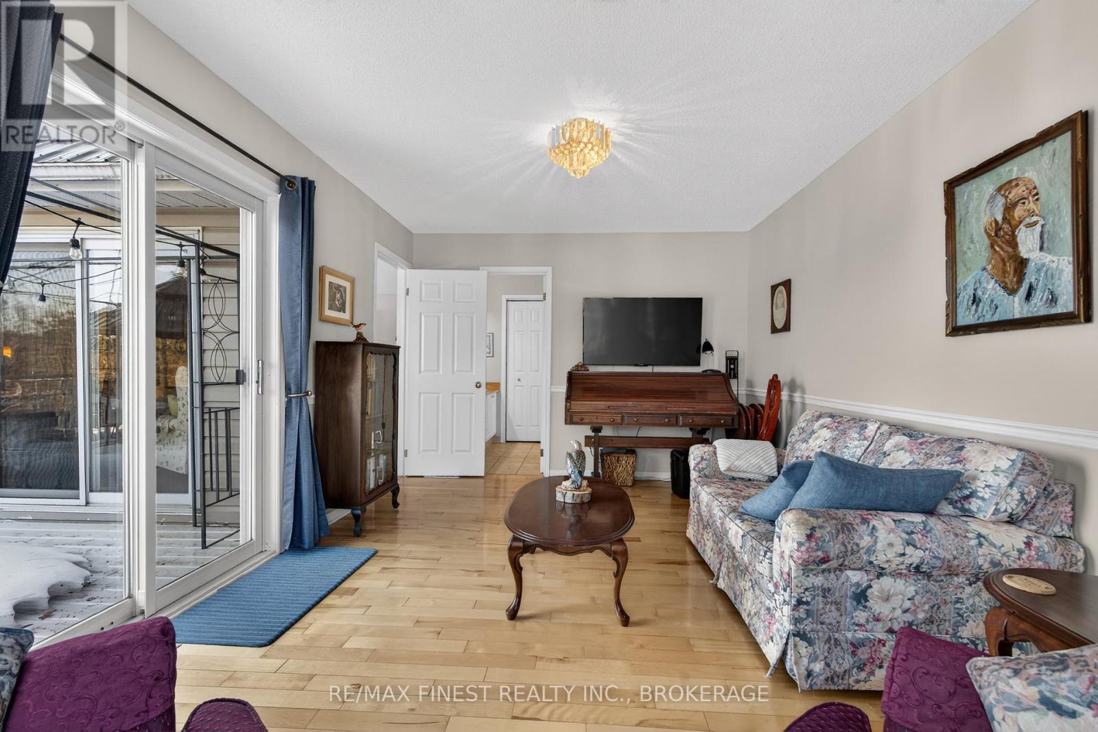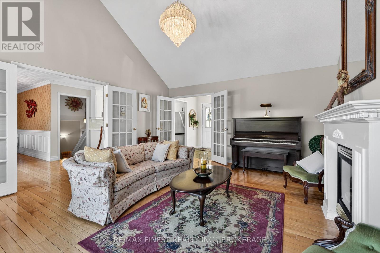 Great Neighbourhood perfect for young families and retirees alike! This updated 1560sf bungalow sits on a private1.2-acre lot in Victorian Lake Estates near Sydenham Lake. With over 2840sf of finished space, it offers a new custom kitchen with quartz counters, 3 bedrooms (master bedroom with ensuite, patio door and bay window), a vaulted great room with patio door and propane fireplace, separate formal dining room with another patio door. Hardwood and ceramic floors throughout most of the main floor. The lower level features an office/den/bedroom and a spacious rec room with electric fireplace, and large utility room with ample storage. Extras include: a400sf detached insulated and heated garage/workshop; 1-year-old propane furnace; HRV; UV/RO water treatment; metal roof; large rear deck with gazebos; elevated front porch; beautifully-landscaped grounds. Close proximity to all amenities, the Cataraqui Trail, Sydenham Lake and just 18 minutes north of Kingston/Hwy 401. (id:29295)