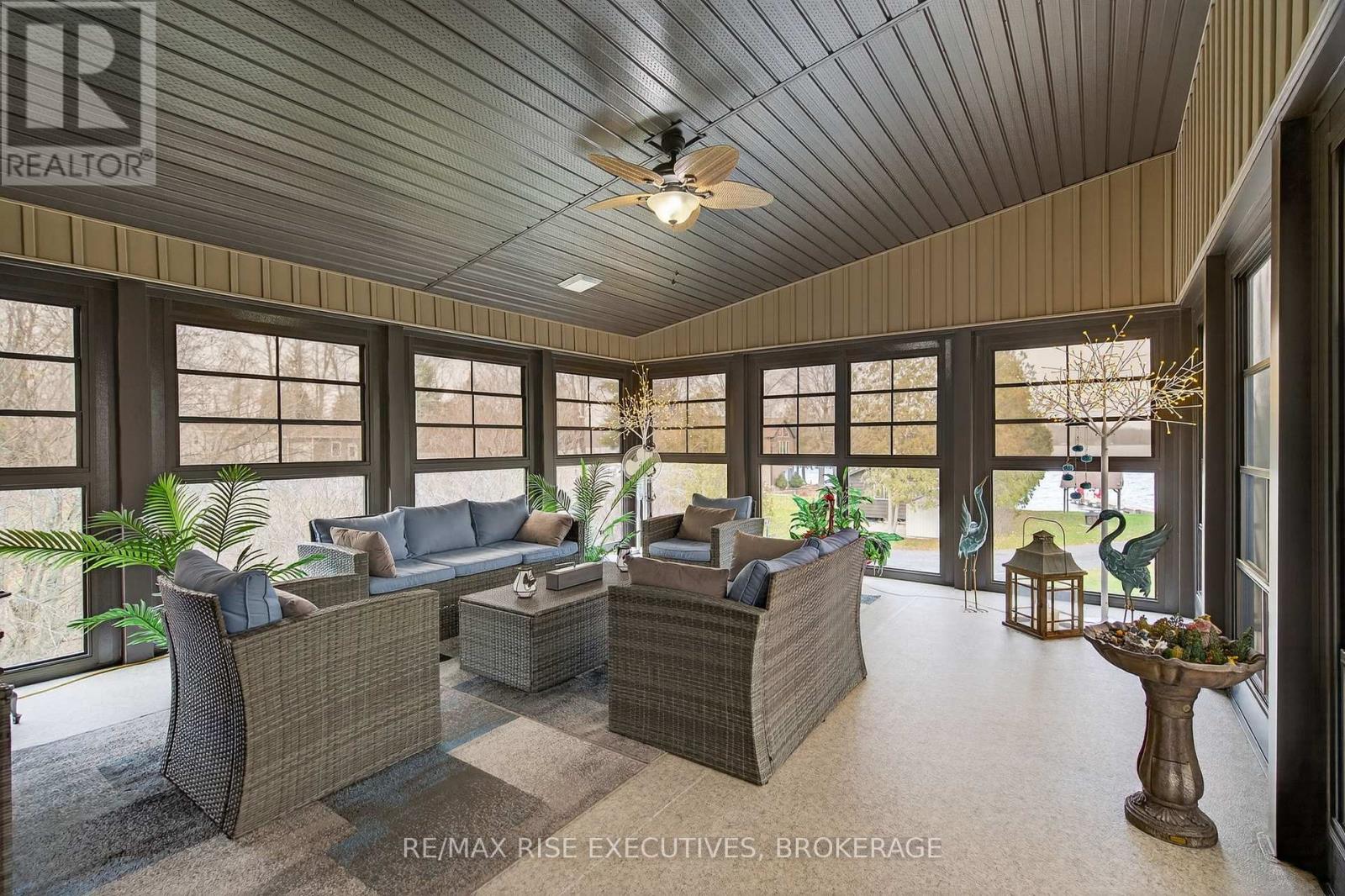 Impeccably built with architectural sophistication, this contemporary lakefront residence showcases dramatic window walls, rich stone columns, and a sprawling upper balcony perfect for soaking in the surrounding beauty. With soaring13-foot ceilings on the main level, a metal roof with leaf guards, and a design that blends modern lines with warm natural textures, the home offers an elevated living experience from the moment you arrive. Set on 85 ft. of Dog Lake waterfront, on just under an acre and part of the renowned Rideau System, the property offers exceptional water views, a 55 ft. permanent dock, and recreational opportunities with great fishing and impressive water depth - up to70 feet directly out front. The home also sits on a well-maintained private road with year-round plowing and maintenance for only $500 annually, and features a drilled well providing an abundance of good water. Built on a slab just 10 years ago, the home has been thoughtfully engineered with six inches of underside insulation for comfort, and longevity. Inside, the layout is both functional and luxurious, featuring two bedrooms on the lower level and a private master retreat upstairs complete with its own balcony and walk-in closet. The home is hot-tub ready with a Muskoka room designed for year-round enjoyment, and also includes a propane gas feed for your barbecue -ideal for lakeside entertaining. The 200-amp electrical panel comes equipped with a pigtail for easy generator hookup. All appliances, including the washer and dryer, are included with the sale, making this a turnkey opportunity for those seeking a high-quality, low-maintenance lifestyle. Further, the 160 sq. ft. shed offers excellent storage, and practical conveniences such as door-side garbage and recycling pickup and even Amazon delivery, ensure effortless day-to-day living. (id:29295)
