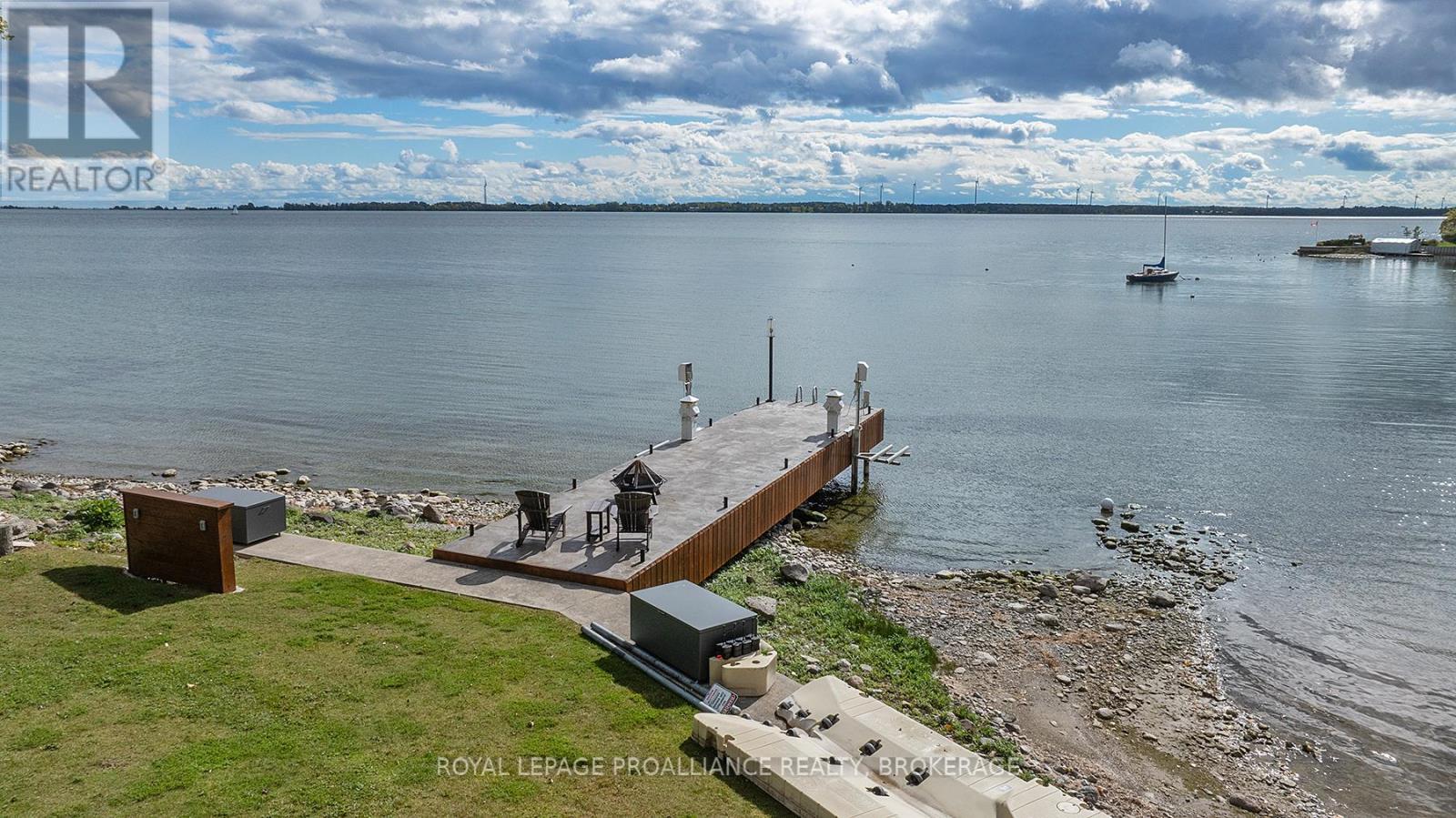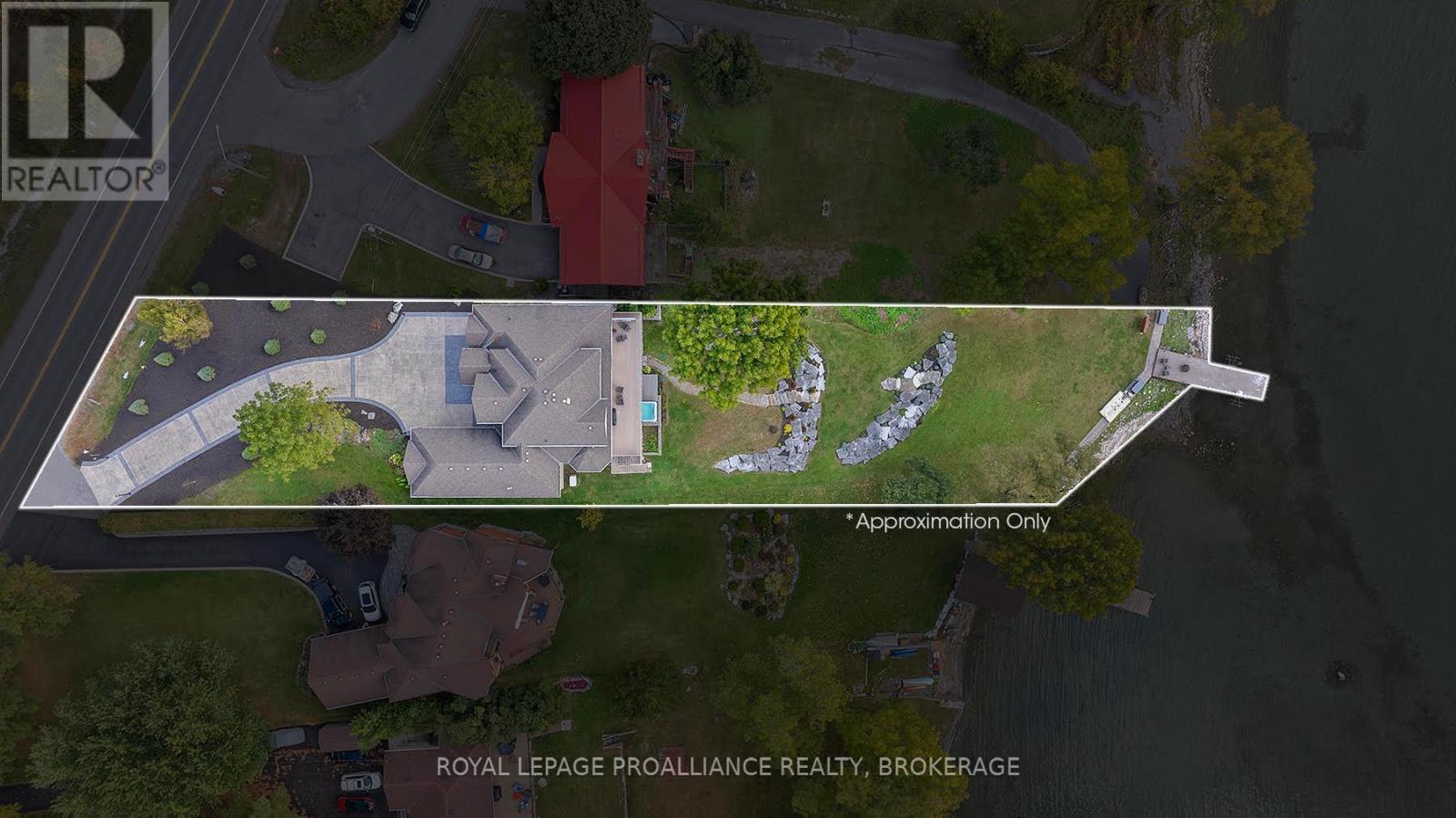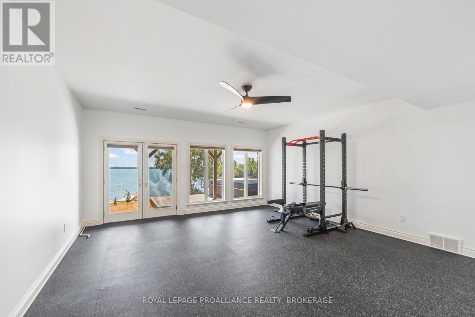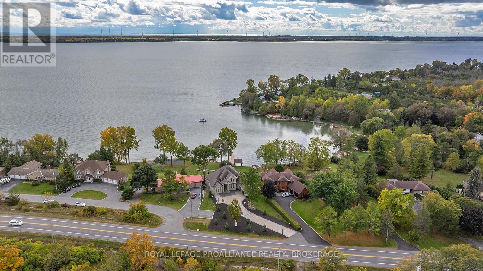 Experience Unrivaled Luxury on the Shores of Lake Ontario. Welcome to your private lakeside retreat - a breathtaking 5,778 sq. ft. masterpiece built by Garofalo Homes, designed to capture panoramic water views and timeless elegance at every turn. Step through the grand foyer with its 18-foot ceilings and immediately feel the sophistication and warmth of this meticulously cared-for home. The main level offers a spacious great room with sweeping lake views, a primary bedroom suite with an ensuite bath, a chef's kitchen, and beautiful hardwood flooring throughout. Ascend the elegant open staircase to find three additional bedrooms, each with generous closet space, and a serene guest bath. The fully finished lower level is ideal for entertaining or relaxation, featuring two more bedrooms, a full bathroom, a private gym, and a heated patio with a 14-foot swim spa-perfect for unwinding while taking in the stunning sunsets. The backyard oasis is a true showstopper, boasting professionally designed landscaping that leads to the private 50' x 12' concrete dock with lighting, power, 2 Sea-Doo lifts, and a 7,000-lb boat lift-expertly crafted by Kehoe Marine for the ultimate waterfront lifestyle. Recent upgrades elevate the home even further: a patterned concrete driveway, smart Lutron lighting system, infrared camera system, 2 new Carrier furnaces, cold-climate heat pumps, and Nest thermostats. The heated 3-car garage includes a gas heater and an external gas generator for peace of mind year-round. Perfectly situated near Amherstview, Parrotts Bay Conservation Area, and just minutes from downtown Kingston's shops and restaurants, this home blends serenity with convenience. With its generous layout and unmatched location, it's an exceptional opportunity for a luxury residence, bed & breakfast, or even a professional home office. Take the first step toward your dream waterfront lifestyle - schedule your private tour and experience Lake Ontario living at its finest. (id:29295)