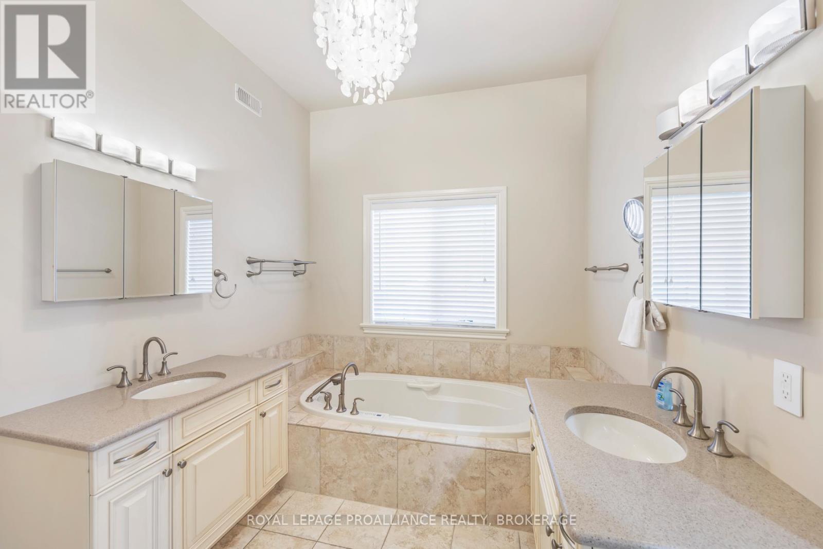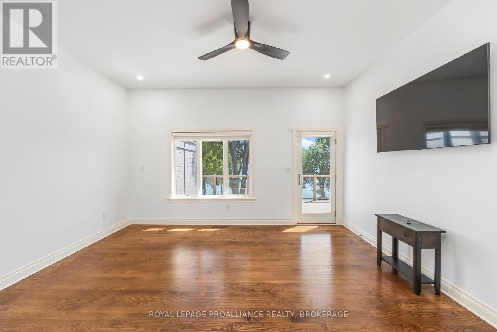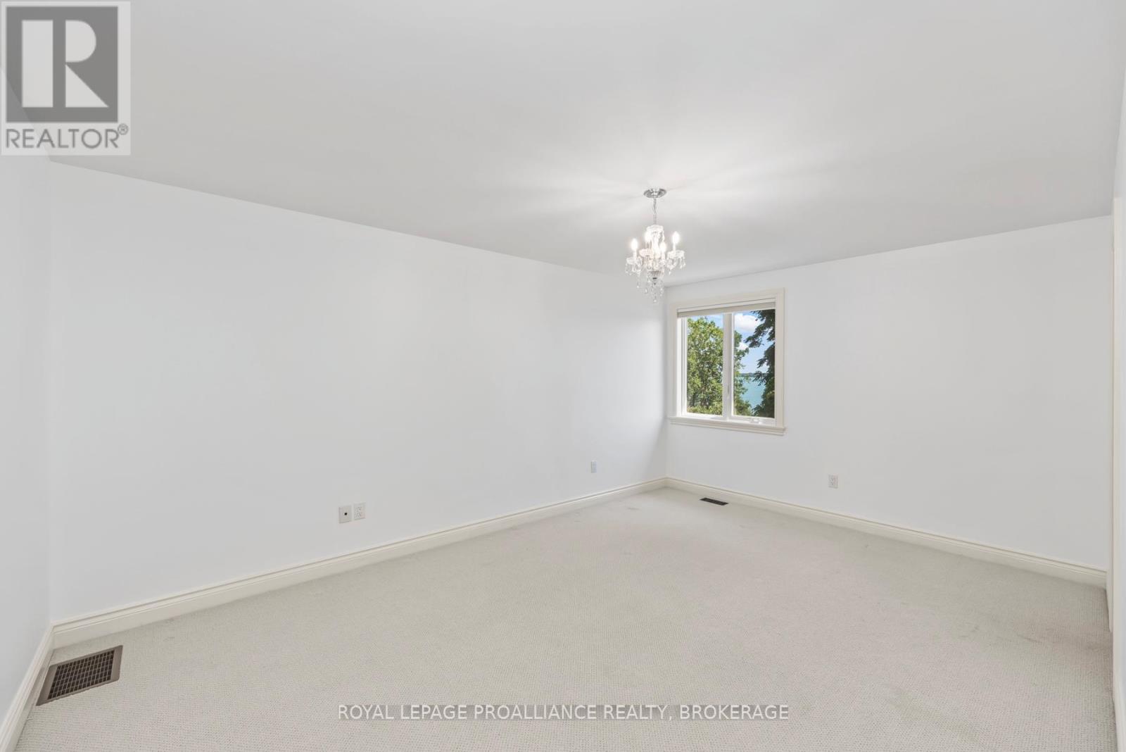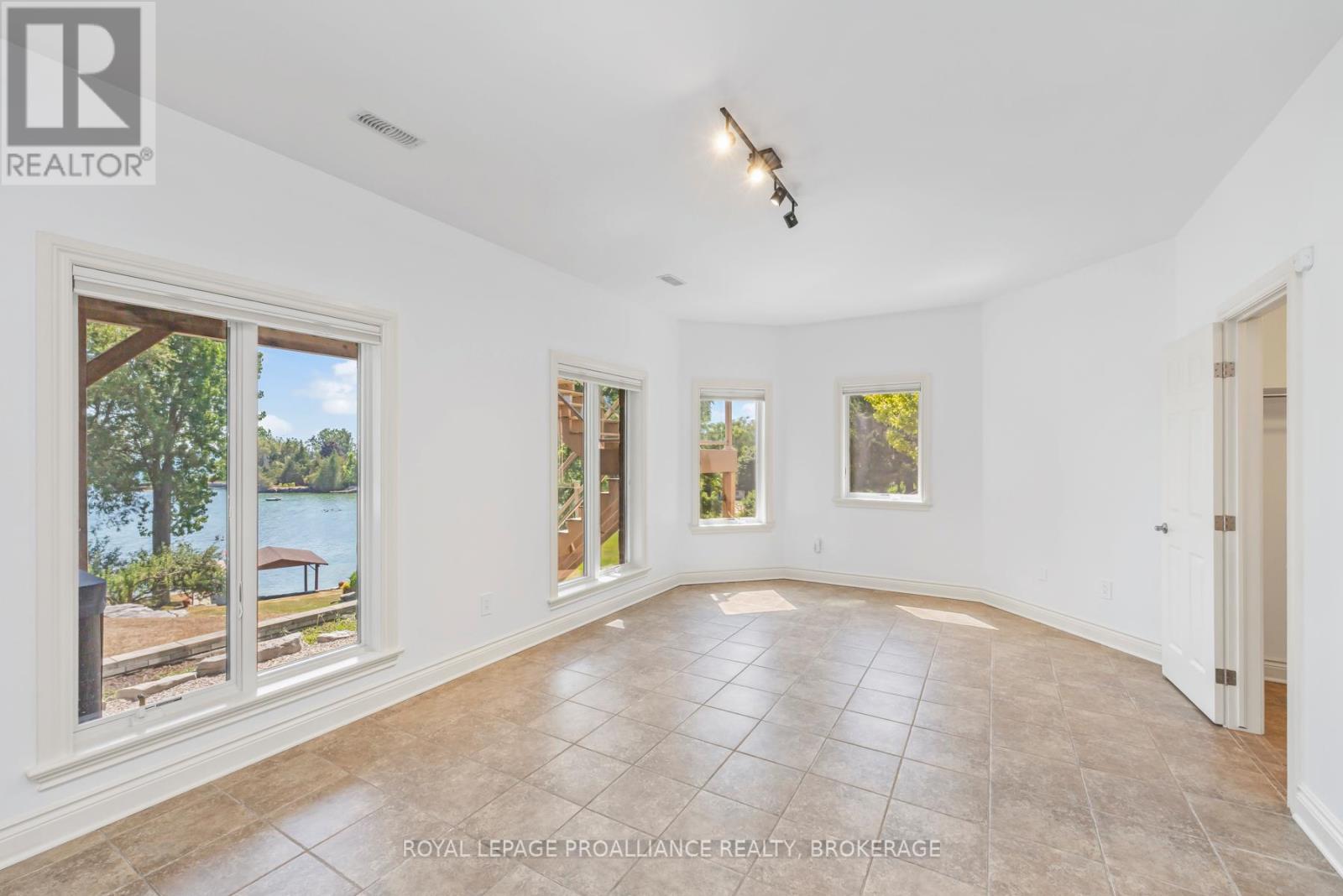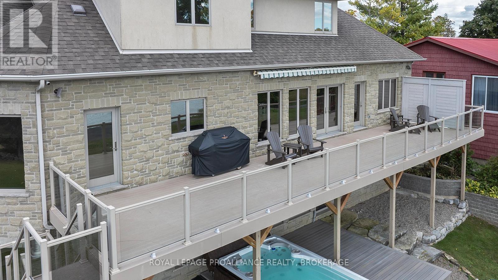 Experience Unrivaled Luxury on the Shores of Lake Ontario. Welcome to your private lakeside retreat - a breathtaking 5,778 sq. ft. masterpiece built by Garofalo Homes, designed to capture panoramic water views and timeless elegance at every turn. Step through the grand foyer with its 18-foot ceilings and immediately feel the sophistication and warmth of this meticulously cared-for home. The main level offers a spacious great room with sweeping lake views, a primary bedroom suite with an ensuite bath, a chef's kitchen, and beautiful hardwood flooring throughout. Ascend the elegant open staircase to find three additional bedrooms, each with generous closet space, and a serene guest bath. The fully finished lower level is ideal for entertaining or relaxation, featuring two more bedrooms, a full bathroom, a private gym, and a heated patio with a 14-foot swim spa-perfect for unwinding while taking in the stunning sunsets. The backyard oasis is a true showstopper, boasting professionally designed landscaping that leads to the private 50' x 12' concrete dock with lighting, power, 2 Sea-Doo lifts, and a 7,000-lb boat lift-expertly crafted by Kehoe Marine for the ultimate waterfront lifestyle. Recent upgrades elevate the home even further: a patterned concrete driveway, smart Lutron lighting system, infrared camera system, 2 new Carrier furnaces, cold-climate heat pumps, and Nest thermostats. The heated 3-car garage includes a gas heater and an external gas generator for peace of mind year-round. Perfectly situated near Amherstview, Parrotts Bay Conservation Area, and just minutes from downtown Kingston's shops and restaurants, this home blends serenity with convenience. With its generous layout and unmatched location, it's an exceptional opportunity for a luxury residence, bed & breakfast, or even a professional home office. Take the first step toward your dream waterfront lifestyle - schedule your private tour and experience Lake Ontario living at its finest. (id:29295)