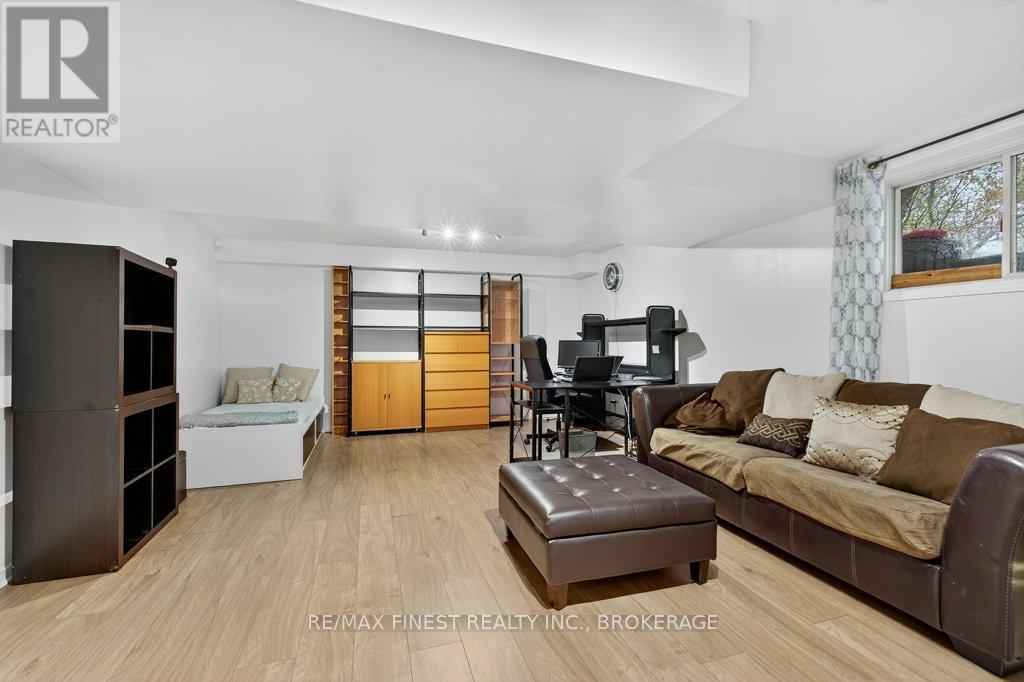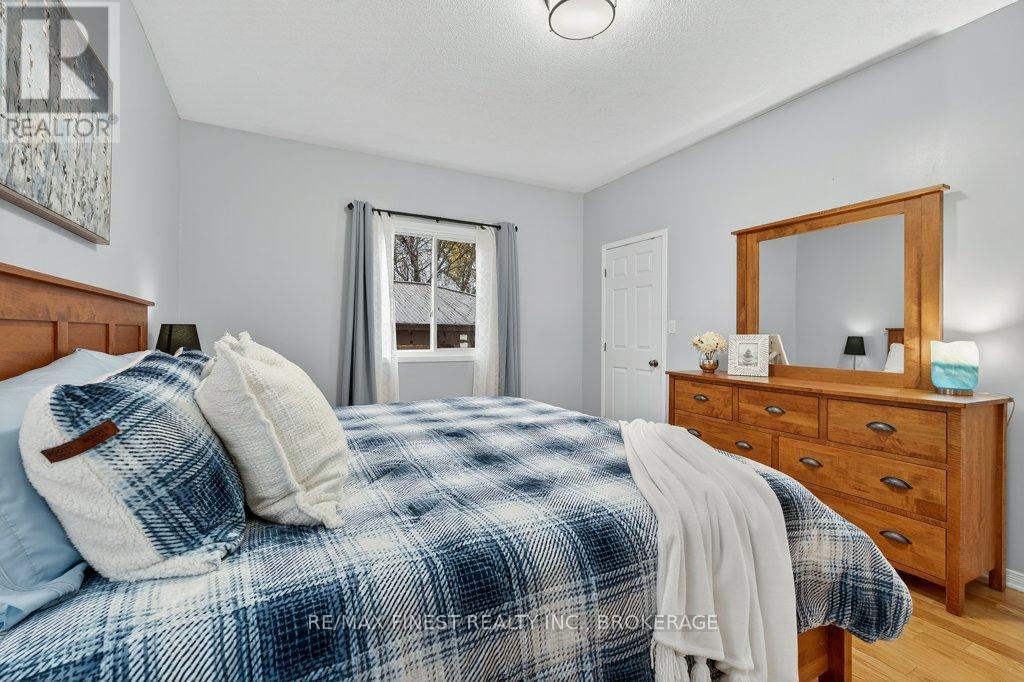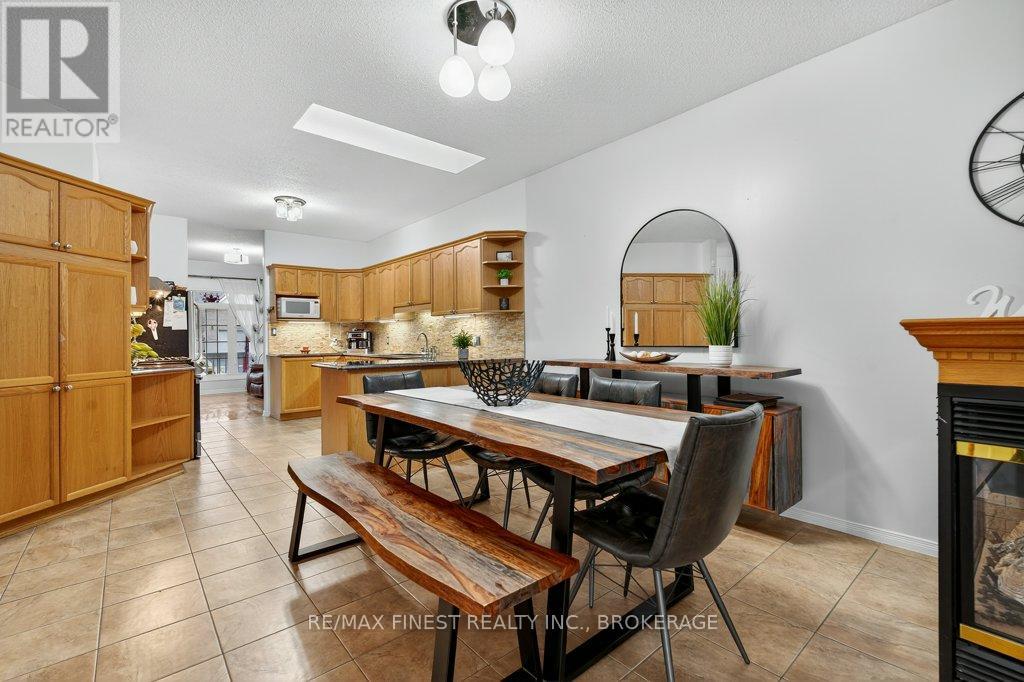 Well updated move-in-ready bungalow, ideally situated on a quiet street in the desirable Waterloo Village. Boasting over 2,500 sq ft of finished living space, this meticulously maintained home offers 2+1 bedrooms and 3 full baths and has undergone significant upgrades in the last five years. Enter the spacious foyer open to the versatile front office or sitting room. You'll be impressed by the 9-footceilings and hardwood flooring throughout the main level, complemented by tile in all wet areas. Open-concept kitchen features a gas stove and quartz countertops. Double-sided gas fireplace separates the dining nook and living room. Garden doors lead to a beautifully landscaped backyard with no rear neighbours, a poured concrete patio, a gazebo, and a sizable storage shed. The primary bedroom includes a walk-in closet and an ensuite bathroom, and a second 4-piece bath services an additional bedroom. The lower level offers a cozy den/rec room with a second gas fireplace, an extra bedroom, a 3-piece bath, a games room/office space, and tons of storage. Main floor laundry/rec room offers direct access to the garage. Driveway features newer curbs to allow for side-by-side parking, accommodating up to four cars, and a covered front porch adds to the curb appeal. This home is ideally located in a fantastic neighbourhood, steps away from a school and park, and minutes from all west-end amenities and downtown Kingston. (id:29295)