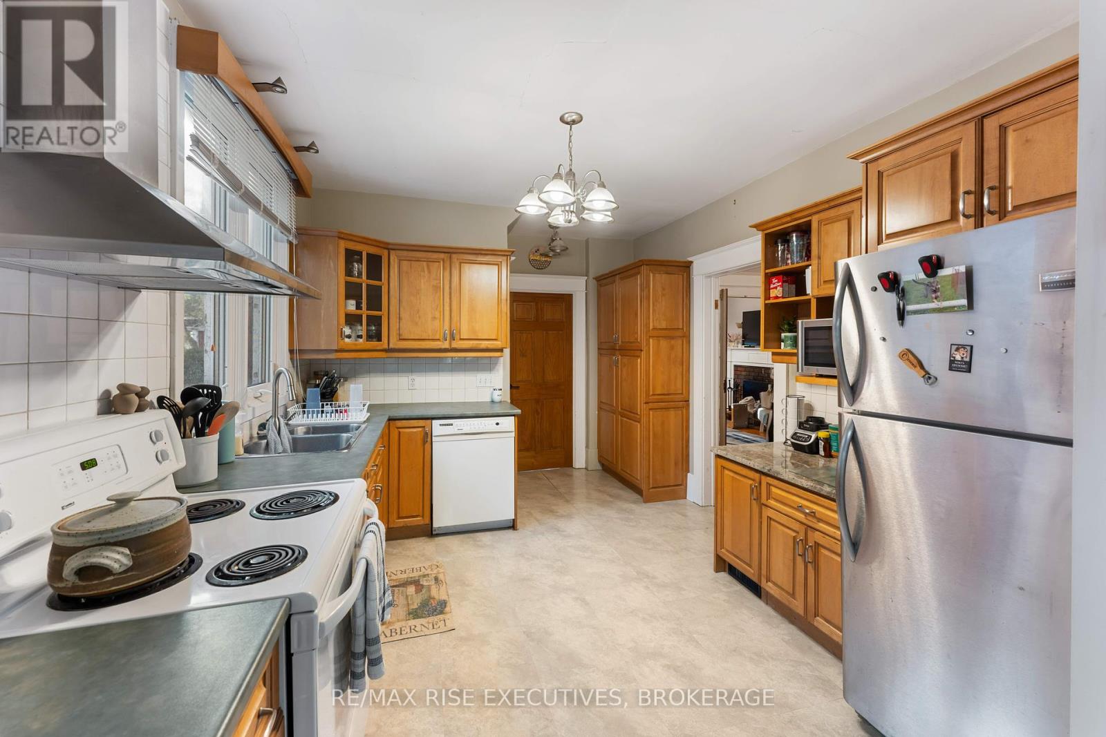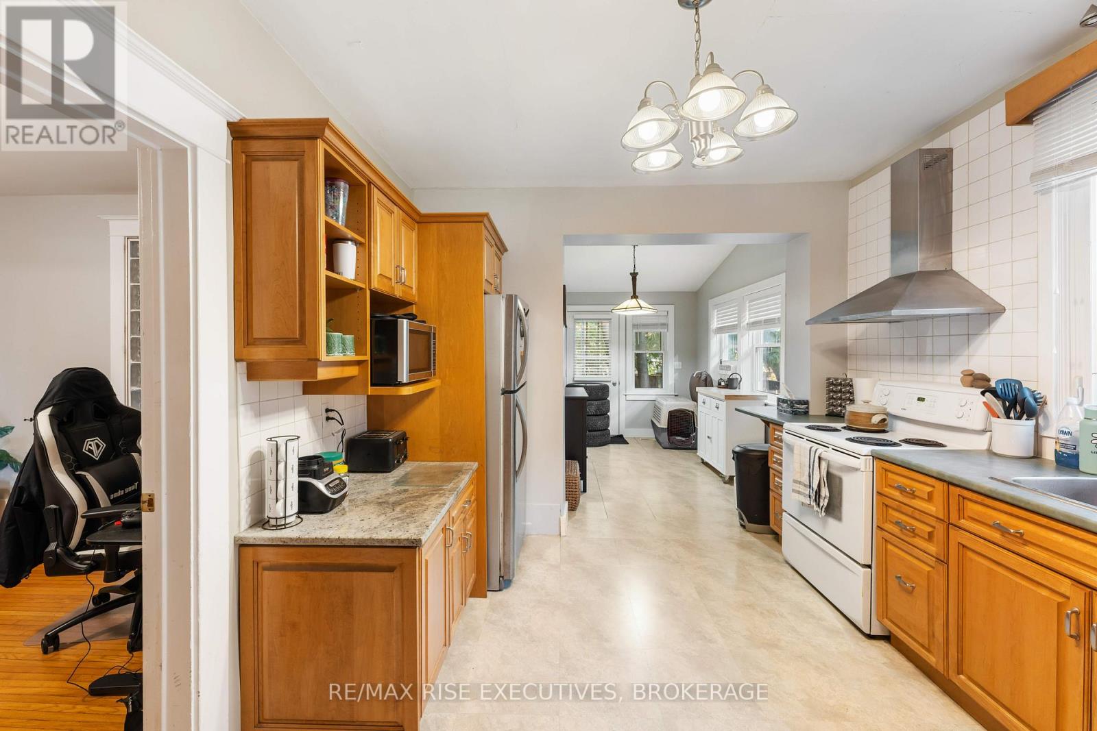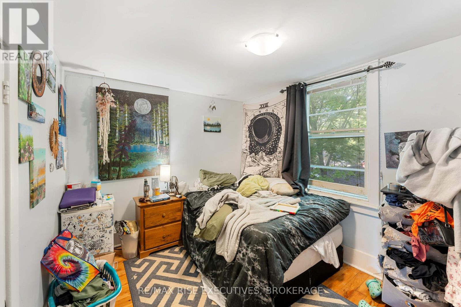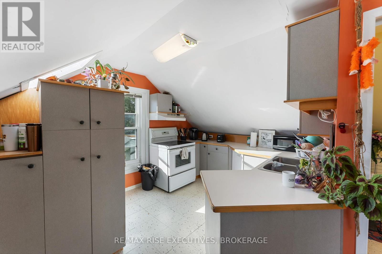Ideally situated just minutes from downtown Kingston and Queen's University, this well-maintained 2.5 storey brick home offers both space and flexibility. The main floor features a spacious primary bedroom with a private ensuite, a bright kitchen with a cozy breakfast book, and an open-concept dining and family area. The upper unit spans two levels offering three generously sized bedrooms and a full bathroom on the second floor. The third-floor loft includes its own kitchen, a 2-piece bath, living a, and private entrance - perfect for added privacy or rental potential. Set on an oversized lot with beautiful hardwood floors throughout and plenty of parking, this property is a rare find in a prime location. (id:29295)
