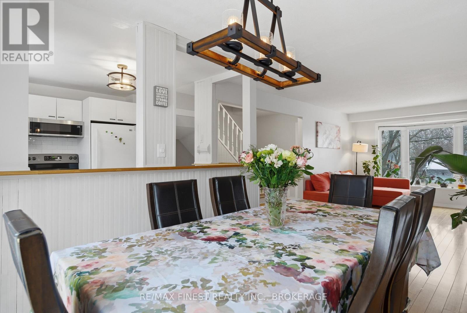 Welcome to this beautifully maintained 3 bedroom townhome located in Kingston's sought-after east end. The ground level provides direct interior access from the garage and features ample storage, a dedicated laundry room, and a versatile bonus space-perfect as a home gym, music room, or office-with a walkout to the private backyard. Upstairs, enjoy a bright and inviting open-concept living area highlighted by a large bay window with a charming built-in ledge-ideal for displaying plants. The kitchen has been thoughtfully updated with a new over-the-range microwave (2022), dishwasher (2024), stylish backsplash, and modern lighting, making it both functional and attractive. Step out from the dining area through patio doors onto a spacious, recently stained deck, complete with a gas BBQ and direct gas hookup-perfect for outdoor entertaining. A conveniently located and updated 2-piece bathroom (2021) completes this level.The third floor offers three generously sized bedrooms, along with a refreshed main bathroom (vanity with double sink, 2021) that includes direct access to the primary bedroom for added convenience. Outside, enjoy a large, fully fenced backyard-ideal for family activities, pets, or relaxing in your own private space. This home has been recently painted throughout and includes a Ring alarm system (door and window sensors, doorbell and camera).Situated close to schools, shopping, parks, and all amenities, this move-in ready home is an exceptional opportunity in a prime location. (id:29295)