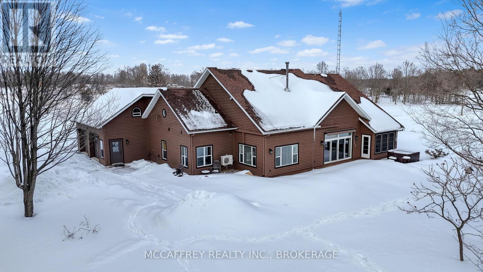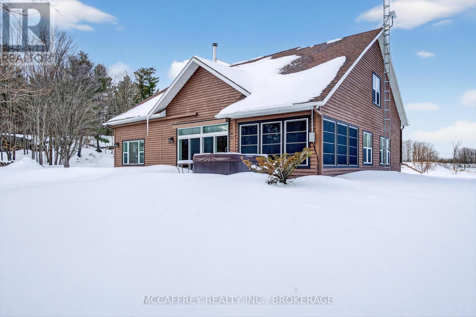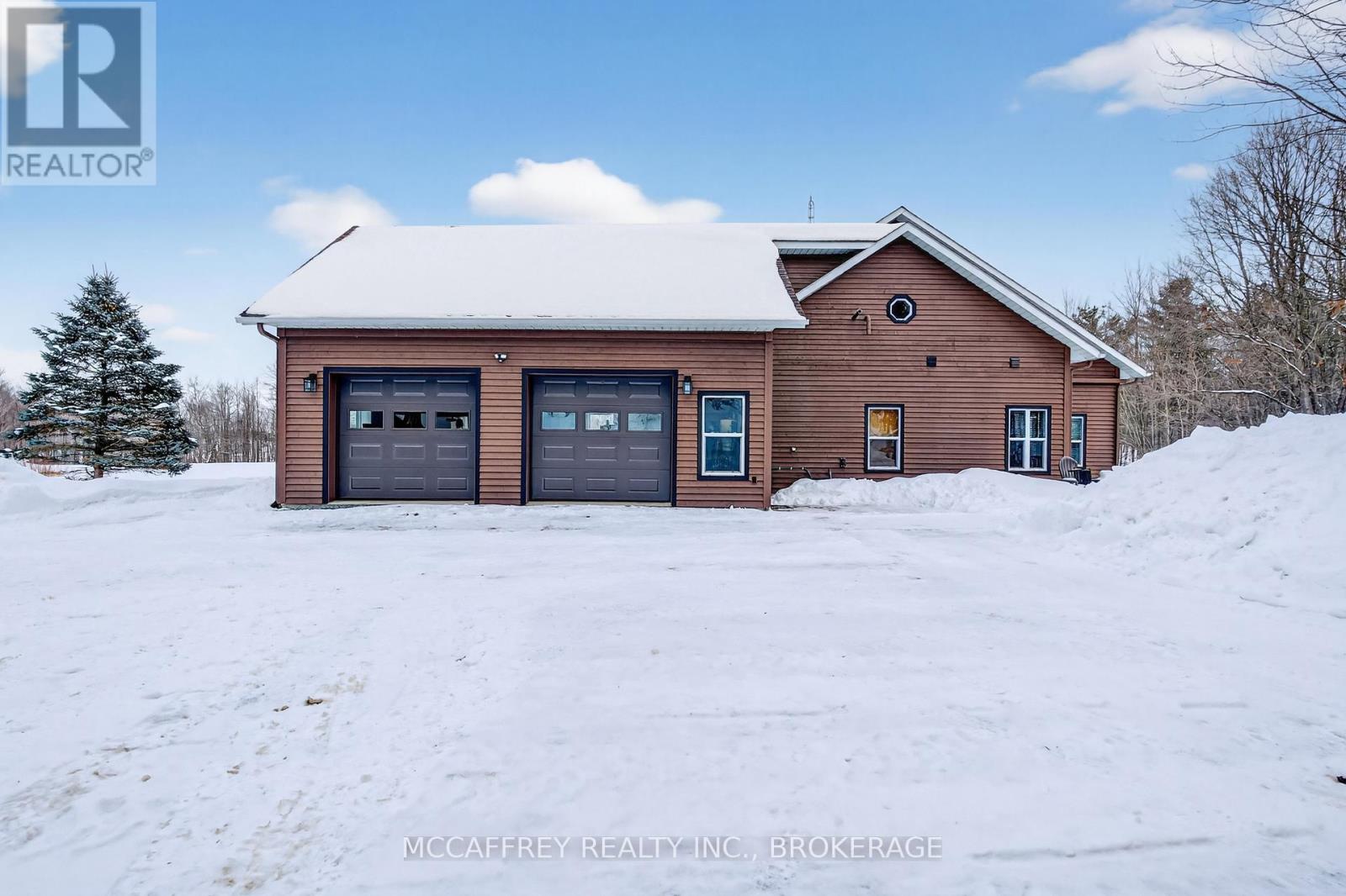 Set on just over 10 acres of beautifully treed countryside, this exceptional slab-on-grade bungaloft offers the perfect blend of quality craftsmanship, thoughtful design, and serene rural living. Built with ICF construction right to the rafters for superior efficiency and durability, this home is as solid as it is stunning. Complete with an attached 2-car garage and an additional detached 1.5-car garage, there's ample space for vehicles, hobbies, and storage. Conveniently located just a 20-minute drive from Kingston for easy access to city amenities. Surrounded by nature, the property features two spring-fed ponds and an abundance of wildlife, creating a private retreat-like setting you'll enjoy year-round. Step inside to a bright, open-concept main living space highlighted by an abundance of large windows that flood the home with natural light. The inviting living room features a cozy wood-burning fireplace and patio doors leading to the backyard stamped concrete patio - the perfect place to unwind and take in the peaceful views. A dedicated dining room seamlessly flows into the gourmet kitchen, designed to impress with a large center island, granite countertops, and an abundance of cabinetry for all your storage needs. Just off the kitchen, a charming 3-season sunroom offers a tranquil space to enjoy your morning coffee while overlooking the surrounding landscape. On the opposite wing of the home, you'll find a convenient 2-piece bath, a spacious laundry room, and a generously sized primary suite. The primary bedroom boasts a walk-in closet and a luxurious 5-piece ensuite complete with a soaker tub and glass shower - your own private escape at the end of the day. Upstairs, the bungaloft design offers three lovely sized bedrooms, ample storage space, and a well-appointed 4-piece bathroom - ideal for family or guests. A truly beautiful home offering peace, privacy, and the quiet charm of country living - all wrapped in quality construction and timeless design. (id:29295)