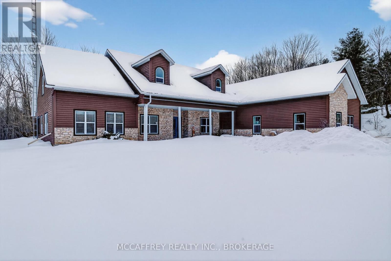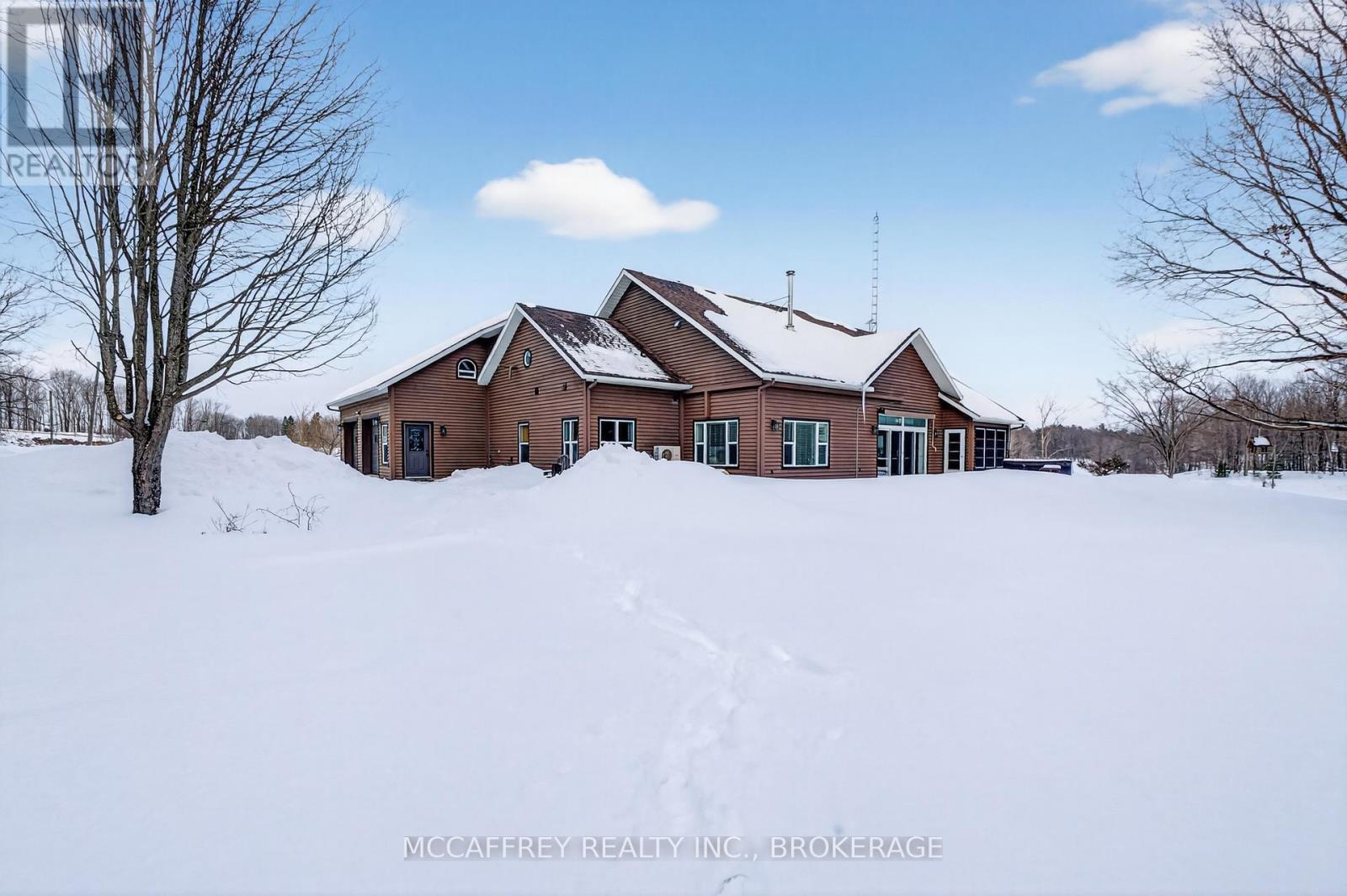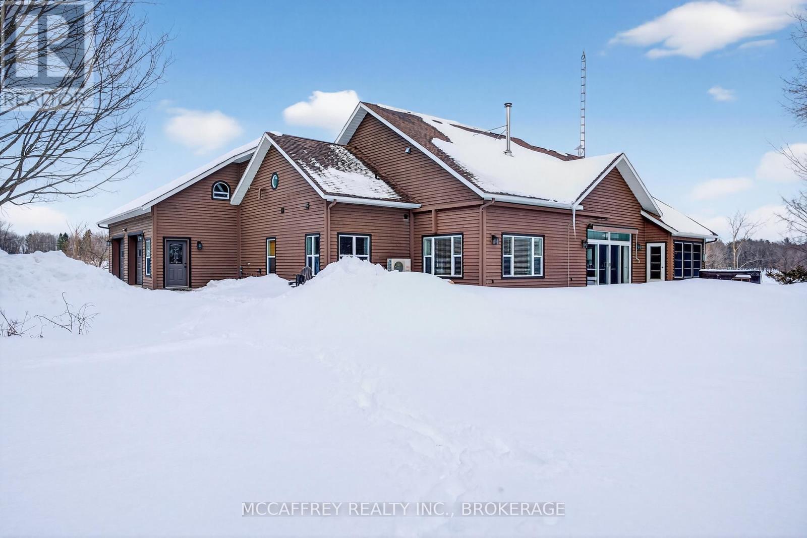 Set on just over 10 acres of beautifully treed countryside, this exceptional slab-on-grade bungaloft offers the perfect blend of quality craftsmanship, thoughtful design, and serene rural living. Built with ICF construction right to the rafters for superior efficiency and durability, this home is as solid as it is stunning. Complete with an attached 2-car garage and an additional detached 1.5-car garage, there's ample space for vehicles, hobbies, and storage. Conveniently located just a 20-minute drive from Kingston for easy access to city amenities. Surrounded by nature, the property features two spring-fed ponds and an abundance of wildlife, creating a private retreat-like setting you'll enjoy year-round. Step inside to a bright, open-concept main living space highlighted by an abundance of large windows that flood the home with natural light. The inviting living room features a cozy wood-burning fireplace and patio doors leading to the backyard stamped concrete patio - the perfect place to unwind and take in the peaceful views. A dedicated dining room seamlessly flows into the gourmet kitchen, designed to impress with a large center island, granite countertops, and an abundance of cabinetry for all your storage needs. Just off the kitchen, a charming 3-season sunroom offers a tranquil space to enjoy your morning coffee while overlooking the surrounding landscape. On the opposite wing of the home, you'll find a convenient 2-piece bath, a spacious laundry room, and a generously sized primary suite. The primary bedroom boasts a walk-in closet and a luxurious 5-piece ensuite complete with a soaker tub and glass shower - your own private escape at the end of the day. Upstairs, the bungaloft design offers three lovely sized bedrooms, ample storage space, and a well-appointed 4-piece bathroom - ideal for family or guests. A truly beautiful home offering peace, privacy, and the quiet charm of country living - all wrapped in quality construction and timeless design. (id:29295)