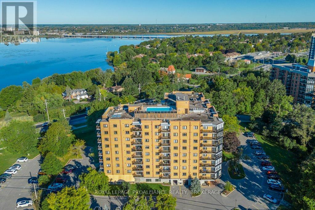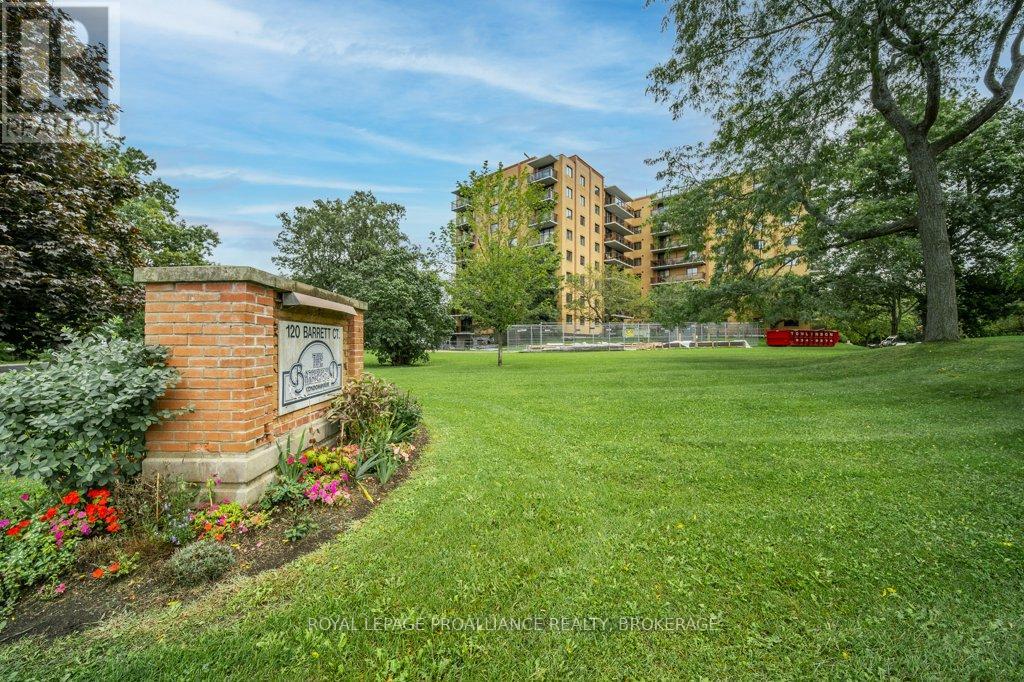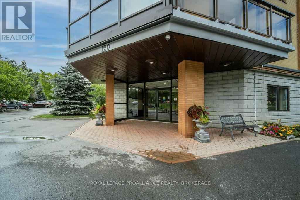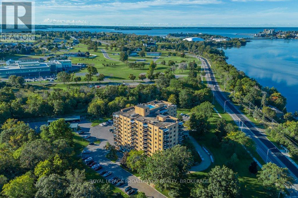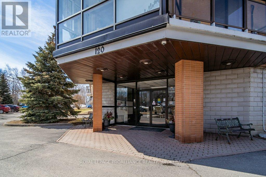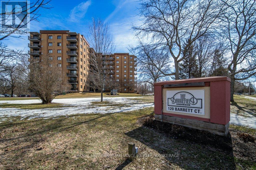 $1,052.77 MonthlyWelcome to this beautifully maintained 2-bedroom, 2-bathroom corner condo in Kingston's desirable east end at 120 Barrett Court. Offering one of the building's most sought-after floor plans, this spacious corner unit features just over 1,100 sq. ft. of comfortable living space, including a bright solarium-style living room that fills the home with natural light and showcases incredible views. This meticulously maintained unit features updated bathrooms, hardwood flooring, custom blinds throughout, in-unit laundry and a heat pump for AC/heat for added comfort. The thoughtful layout offers generous room sizes, ample storage and a primary bedroom complete with a walk-in closet and private ensuite. Residents of this well-managed building enjoy an impressive range of amenities including an indoor pool, rooftop pool, sauna, games room, guest suites, freezer room and organized social activities, offering a true sense of community and convenient condo living. Additional highlights include one parking space conveniently located close to the entrance for easy day-to-day access. A rare opportunity to own a corner unit in a fantastic east-end location, perfect for those seeking low-maintenance living without compromising on space, views, amenities, or location.(Disclaimer: Some exterior drone/rooftop photos were taken in the summer months to show amenities covered by snow at time of photos) (id:29295)