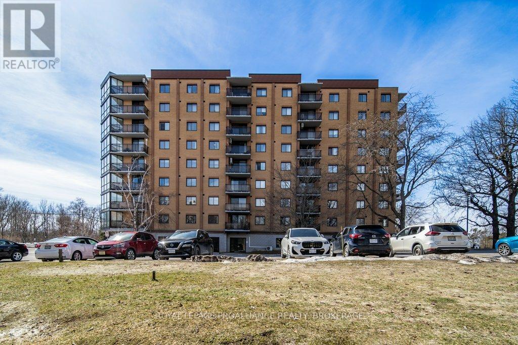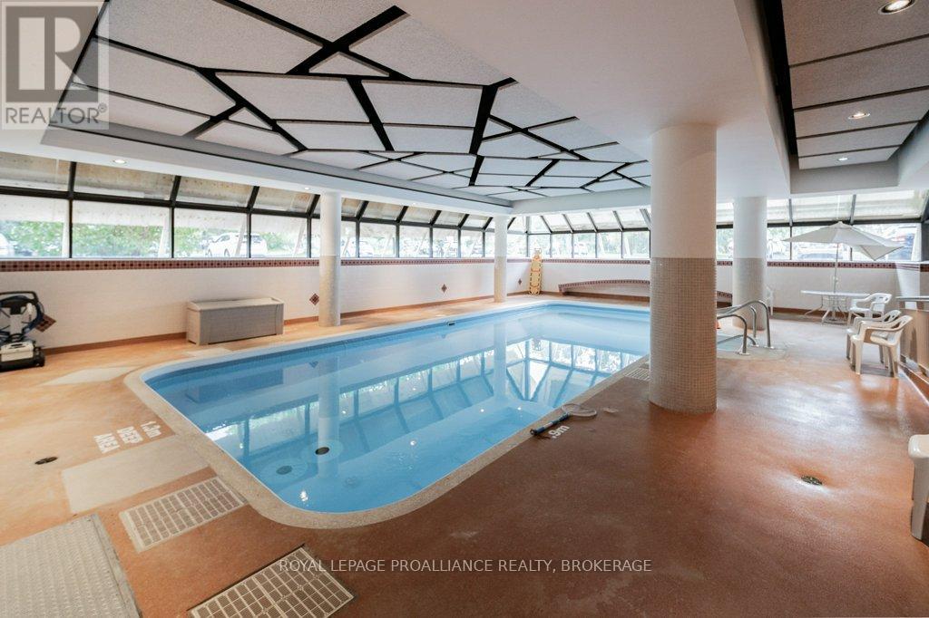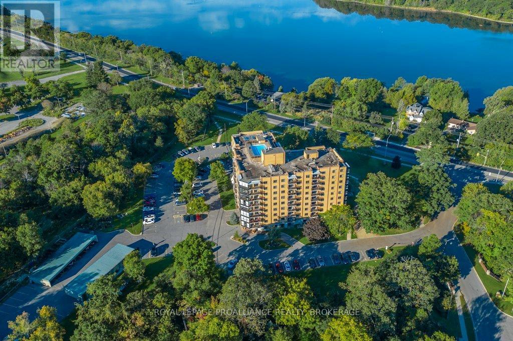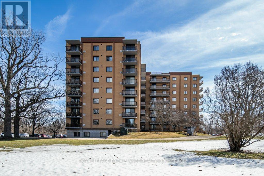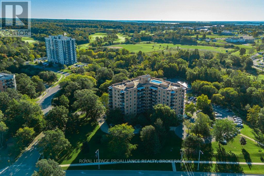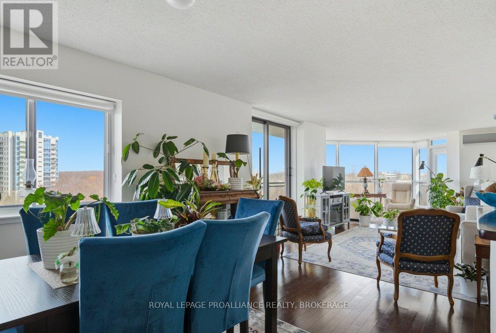 $1,052.77 MonthlyWelcome to this beautifully maintained 2-bedroom, 2-bathroom corner condo in Kingston's desirable east end at 120 Barrett Court. Offering one of the building's most sought-after floor plans, this spacious corner unit features just over 1,100 sq. ft. of comfortable living space, including a bright solarium-style living room that fills the home with natural light and showcases incredible views. This meticulously maintained unit features updated bathrooms, hardwood flooring, custom blinds throughout, in-unit laundry and a heat pump for AC/heat for added comfort. The thoughtful layout offers generous room sizes, ample storage and a primary bedroom complete with a walk-in closet and private ensuite. Residents of this well-managed building enjoy an impressive range of amenities including an indoor pool, rooftop pool, sauna, games room, guest suites, freezer room and organized social activities, offering a true sense of community and convenient condo living. Additional highlights include one parking space conveniently located close to the entrance for easy day-to-day access. A rare opportunity to own a corner unit in a fantastic east-end location, perfect for those seeking low-maintenance living without compromising on space, views, amenities, or location.(Disclaimer: Some exterior drone/rooftop photos were taken in the summer months to show amenities covered by snow at time of photos) (id:29295)