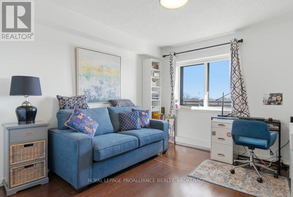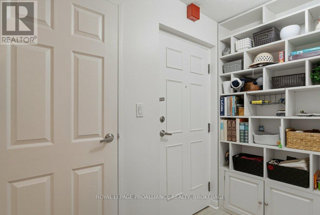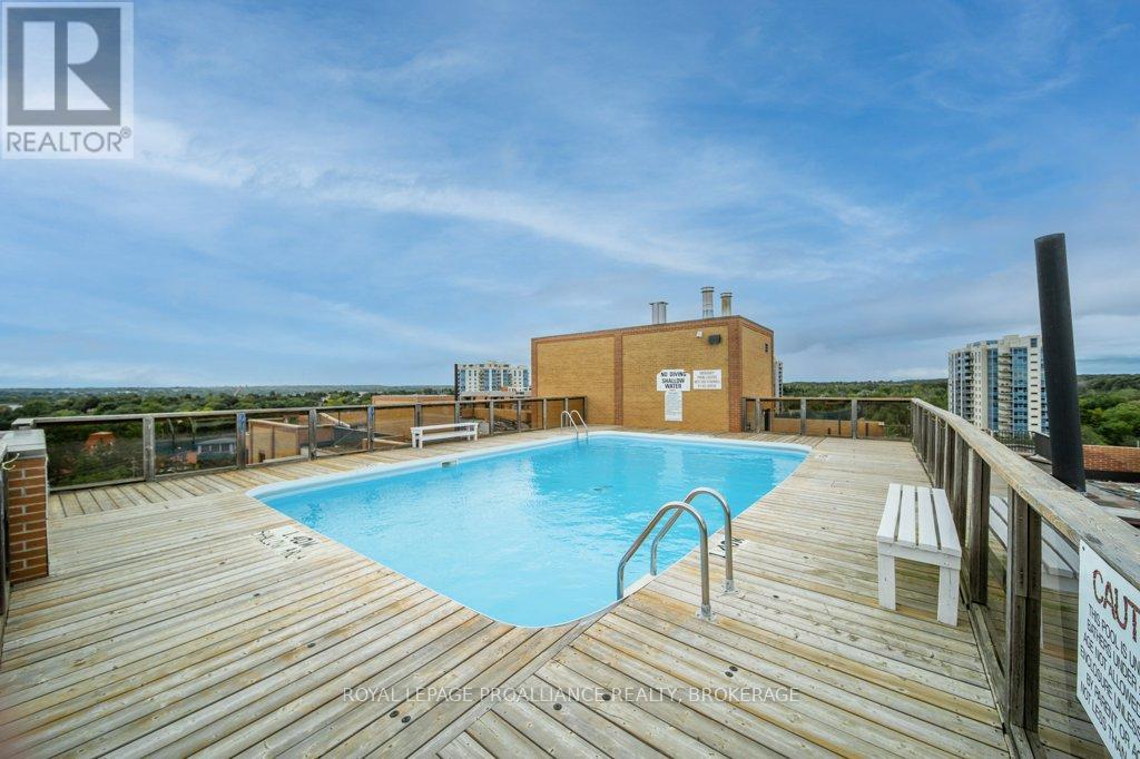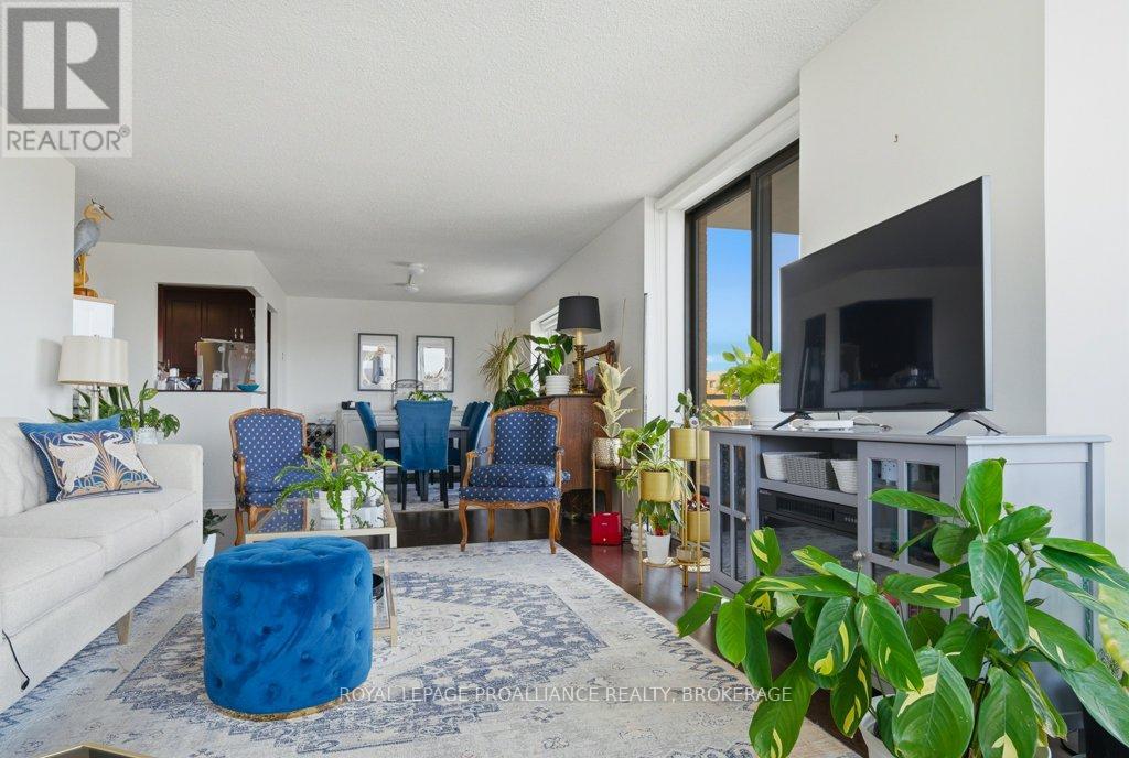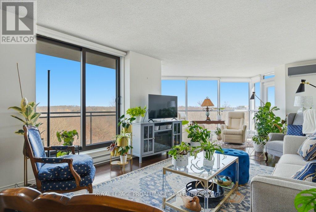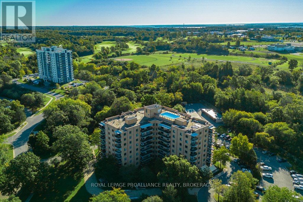 $1,052.77 MonthlyWelcome to this beautifully maintained 2-bedroom, 2-bathroom corner condo in Kingston's desirable east end at 120 Barrett Court. Offering one of the building's most sought-after floor plans, this spacious corner unit features just over 1,100 sq. ft. of comfortable living space, including a bright solarium-style living room that fills the home with natural light and showcases incredible views. This meticulously maintained unit features updated bathrooms, hardwood flooring, custom blinds throughout, in-unit laundry and a heat pump for AC/heat for added comfort. The thoughtful layout offers generous room sizes, ample storage and a primary bedroom complete with a walk-in closet and private ensuite. Residents of this well-managed building enjoy an impressive range of amenities including an indoor pool, rooftop pool, sauna, games room, guest suites, freezer room and organized social activities, offering a true sense of community and convenient condo living. Additional highlights include one parking space conveniently located close to the entrance for easy day-to-day access. A rare opportunity to own a corner unit in a fantastic east-end location, perfect for those seeking low-maintenance living without compromising on space, views, amenities, or location.(Disclaimer: Some exterior drone/rooftop photos were taken in the summer months to show amenities covered by snow at time of photos) (id:29295)