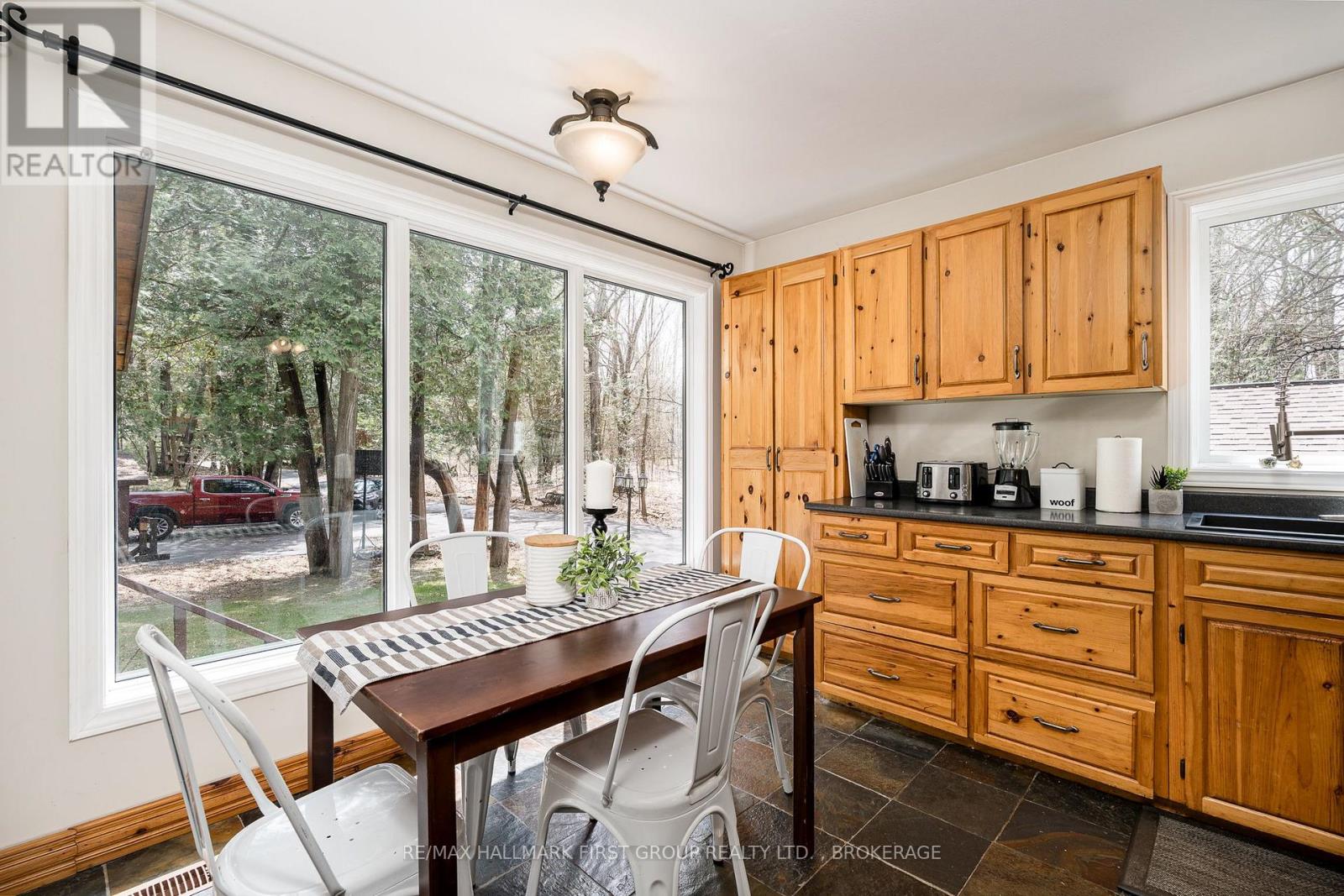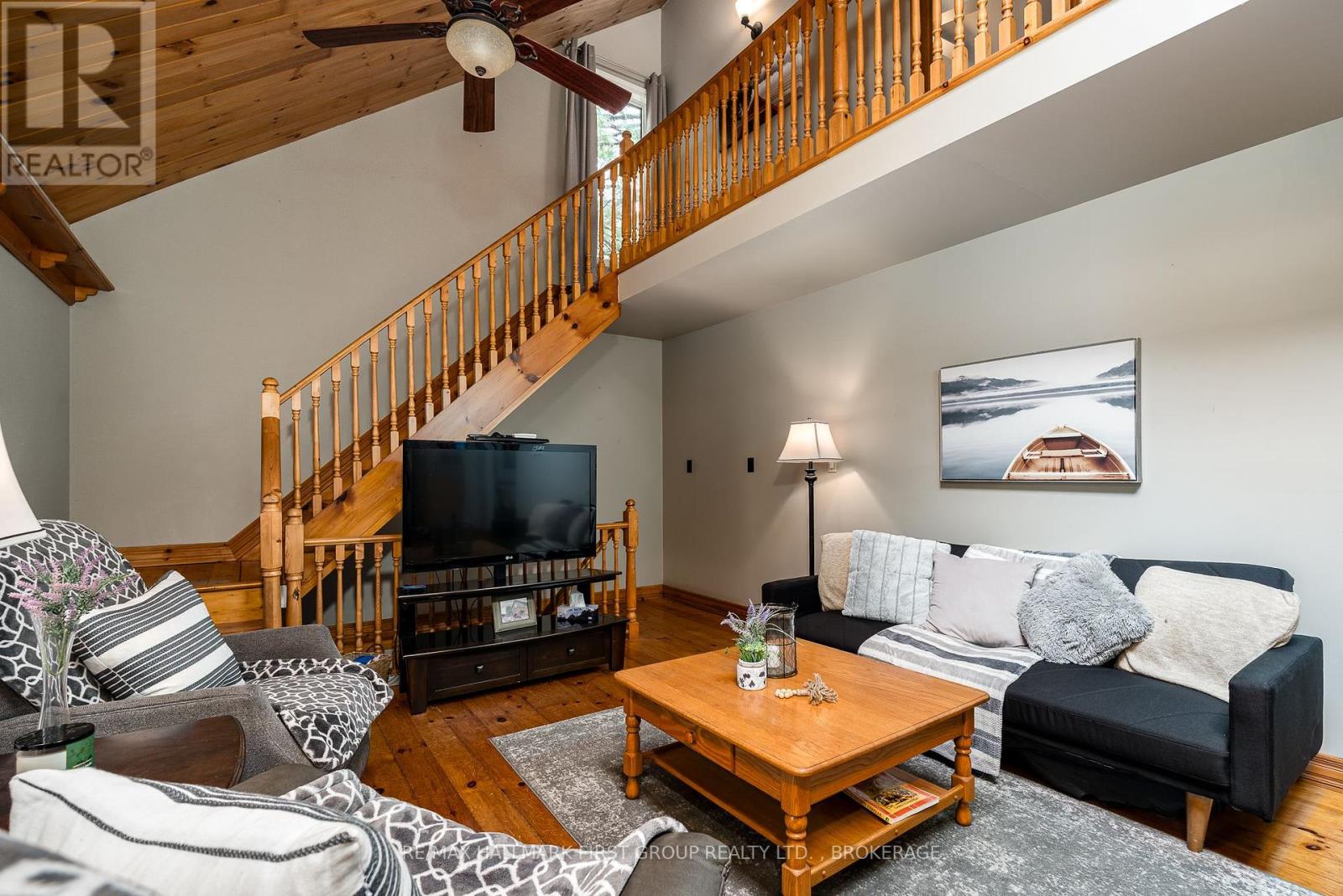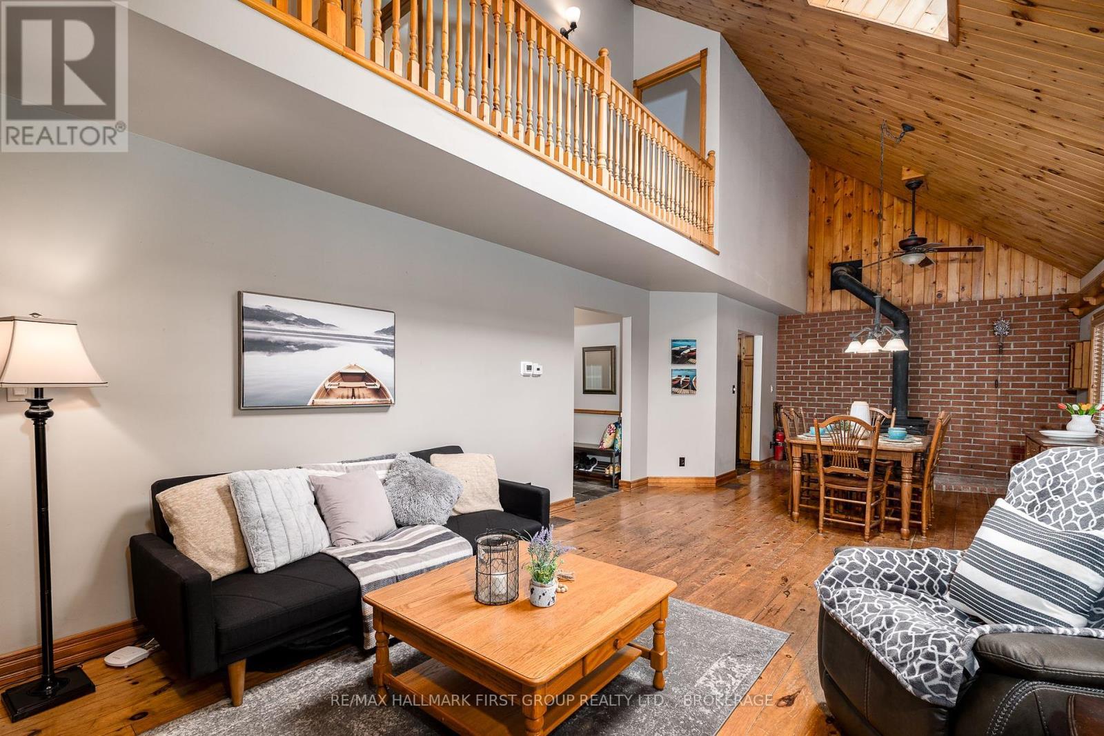 Nestled on a private, tree-lined 1.025-acre lot, 616 Cedarstone Road offers the perfect blend of rustic charm and modern comfort on beautiful Beaver Lake. With 151.53 feet of natural rocky shoreline, this property features a level waterfront ideal for swimming and offers enough clearance to dock a boat year-round. A private dock is included, with additional items negotiable or available for purchase. This year-round home provides 3 bedrooms, 2 bathrooms, including a convenient primary suite on the main floor, and an updated full bathroom. Enjoy the warmth and character of vaulted open ceilings overlooking the second level, creating a bright and airy living space. The main level also features a cozy woodstove, while the lower-level family room is enhanced by a pellet stove, both offering excellent secondary heating sources. The property has seen recent updates, including a newly installed propane furnace with central air conditioning for year-round comfort. Additional highlights include a full paved driveway, a detached 1-car garage with an attached workshop at the rear, multiple storage sheds, and ample parking for guests or recreational vehicles. The full basement offers great versatility with a finished recreation room and a den, providing extra space for family gatherings and hobbies. Recent septic and well inspections are available upon request, offering peace of mind to buyers. Located just minutes from the charming village of Tamworth, you'll enjoy small-town amenities including shops, cafes, and local events, while being only 30 minutes north of Napanee and Highway 401providing easy access for commuting or weekend getaways. The home is located on a municipally maintained year-round road, making it truly ideal for full-time living or a peaceful four-season retreat. (id:29295)