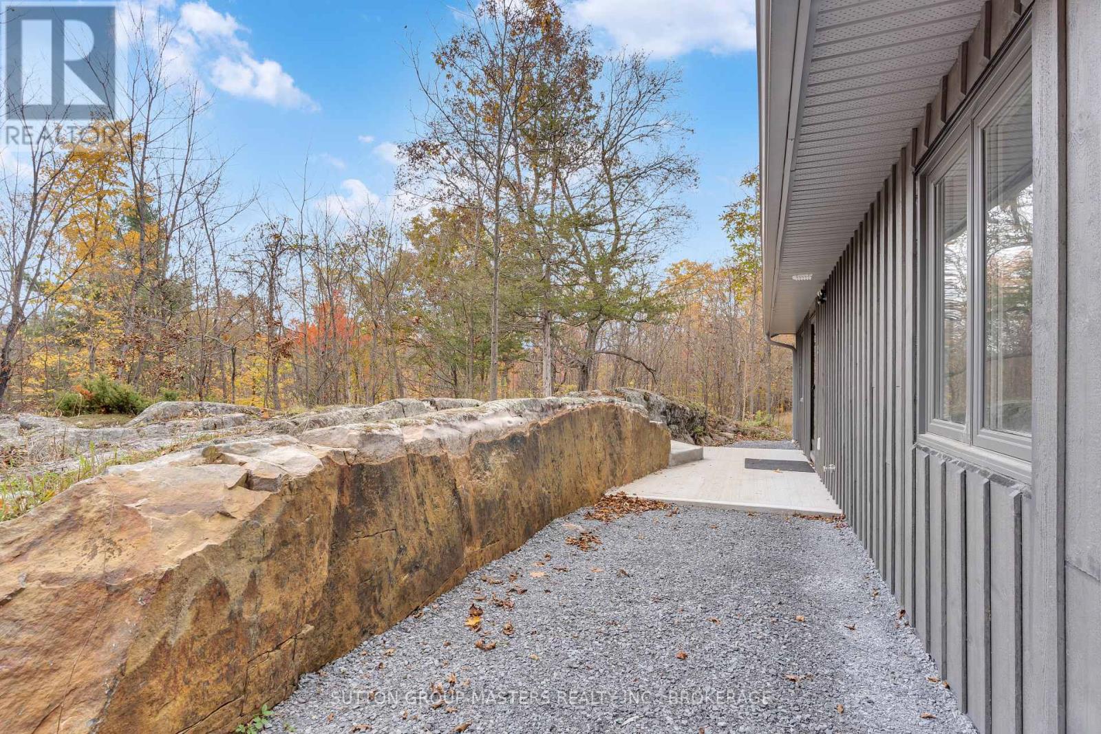 Situated on 41 +/- acres of Hardwood, Softwood ,Clearings and Exposed Canadian Shield, this spectacular property is home to an all custom 2 bedroom 2 bathroom slab home with 2 detached garages and generator shed that will keep the home comfortable should you ever require it. This property has over 1,300 feet of road frontage on North Shore Road (south) as well as over 1,700 feet on Fishing Lake Road (west). The Nature Conservancy of Canada abuts this property to the (east), so you will for sure never have a neighbors there! Built in 2022 /2023, nothing but quality products were used to complete this project. The home as well as the main garage are heated with in-floor radiant heat. All 3 buildings have a gorgeous lifetime metal roof accented by a factory finished board and batten siding. Interior floorplan of the home consists of a bright open kitchen with SS appliances and eat at counter that is fully open to the Living / Dining Space accented by pot-lights , large bright windows and easy care flooring that runs throughout. To make this home even more special, both generous bedrooms have ensuites. Utility room completes the Floorplan and hosts the Laundry, water treatment and heating equipment. Boating and Fishing enthusiasts will love the proximity to Loughborough Lake and the public boat launch , while the Nature lovers and hunters will just want to stay home and enjoy everything this fantastic, private property has to offer! If you like Quality Construction plus privacy, this property is for you ! (id:29295)