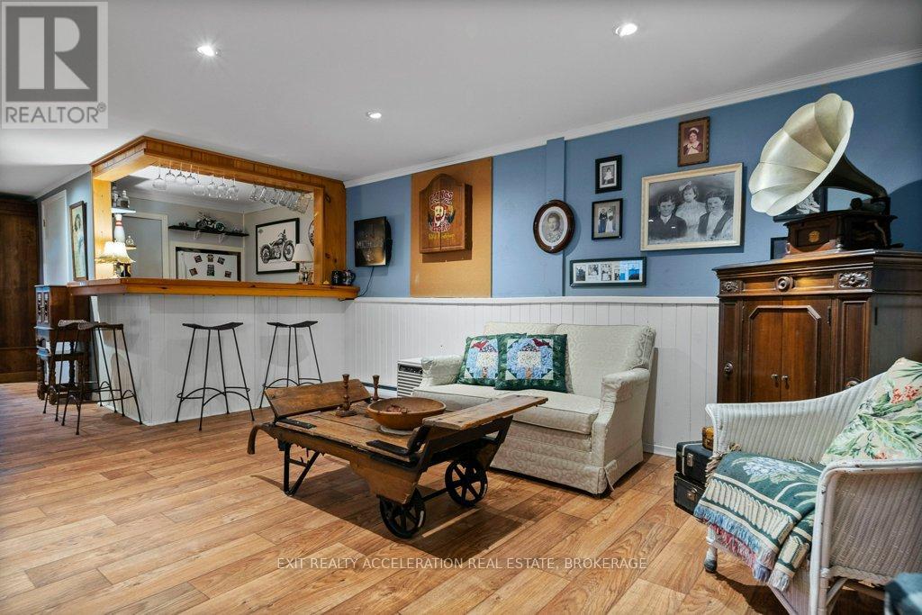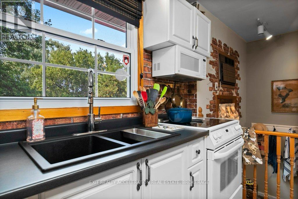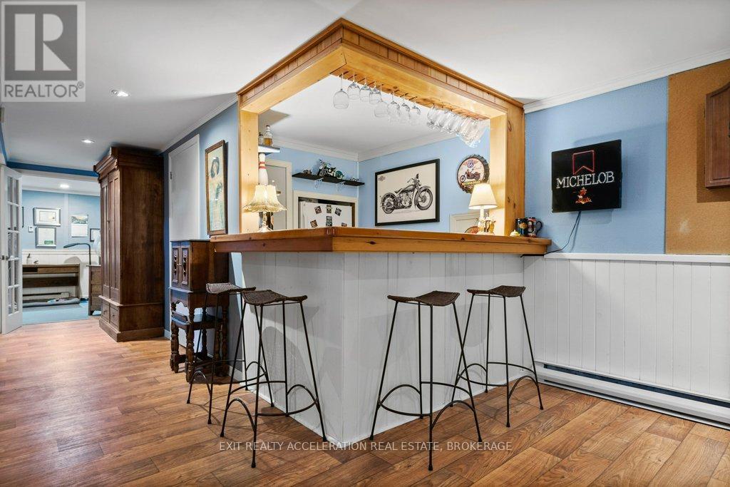 Welcome to this lovely CREEK FRONT, WATER VIEW four-bedroom, two-bathroom bungalow located on the edge of Napanee, where town convenience meets peaceful surroundings. Set on just under half an acre of beautifully landscaped property, this home offers a warm and inviting atmosphere inside and out. The bright kitchen opens easily to the main living spaces, with hardwood flooring flowing throughout the upper level. The attached garage, heated by natural gas, includes a spacious loft for exceptional storage. The finished basement extends the living area with a cozy family room and bar, along with a bedroom featuring its own three-piece ensuite. From the lower level, step into the impressive indoor pool area with a heated in-ground pool (32x14, constant 5ft depth), perfect for year-round enjoyment. Access the screened porch or the deck from here, both offering tranquil views of the landscaped backyard and the Napanee River beyond - an ideal retreat for relaxation or entertaining. (Main house roof - 2015, Pool addition roof - 2022, Decks - 2025, Stone Style Siding - 2023, Front porch rebuild - 2025), Pool liner - 2025, Pool Heater - 2024, Pool Filter - 2024, Pump - 2019, Heat & Moisture Cover - 2023 (id:29295)
