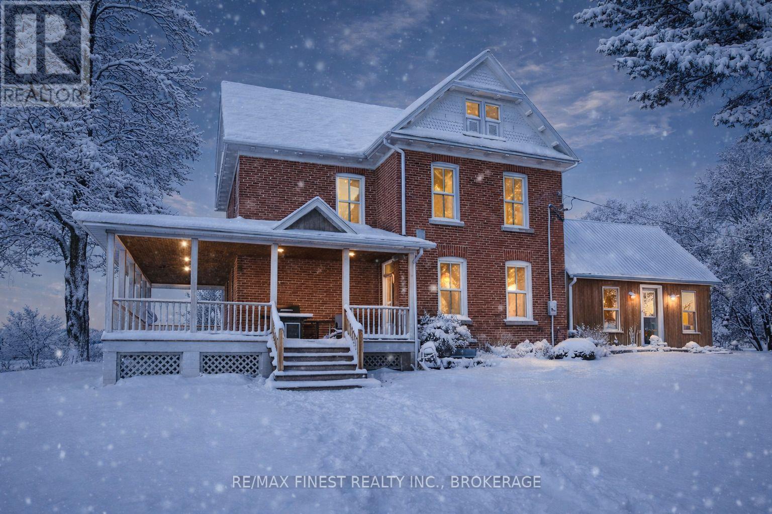 Picturesquely set on over 4 acres and only 15 minutes from Kingston, this timeless 2-storey brick home perfectly blends elegance with country charm. Step inside to find a true country kitchen, with abundant pantry space, modern appliances, and an Elmira cook stove, exuding functionality and inviting vibes. Warm hardwood floors flowing through much of the main level, featuring a spacious living room, a sunroom complete with vaulted ceilings, a convenient laundry room with storage, and a full 3-piece bath. Upstairs, hardwood continues into four cozy bedrooms and a 4-piece bath. A spacious attic provides endless potential whether you envision a studio, playroom, or home gym, your dream space awaits. The unfinished basement offers even more room for your future projects. Updates include extensive spray foam throughout the home. Outside, the wrap-around porch is the perfect spot for morning coffee, overlooking the sweeping green landscape. Outbuildings grace the property, ready for your personal touch to complete the country lifestyle. (id:29295)