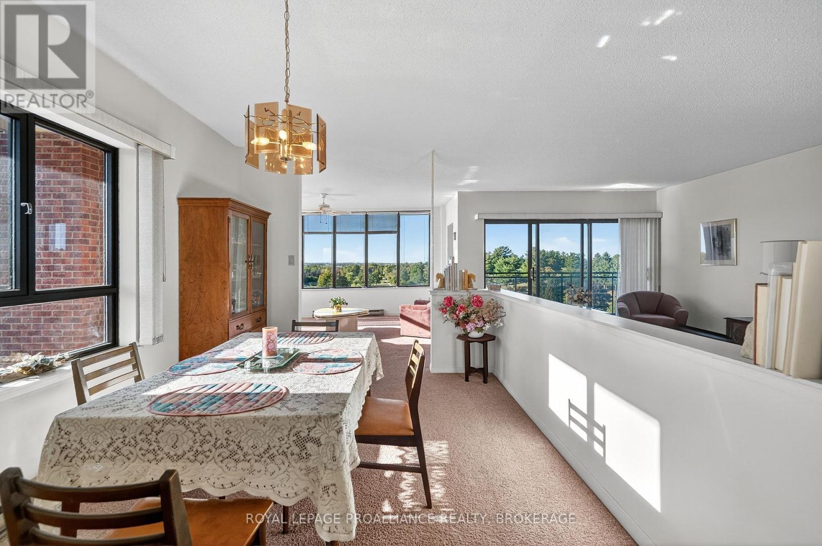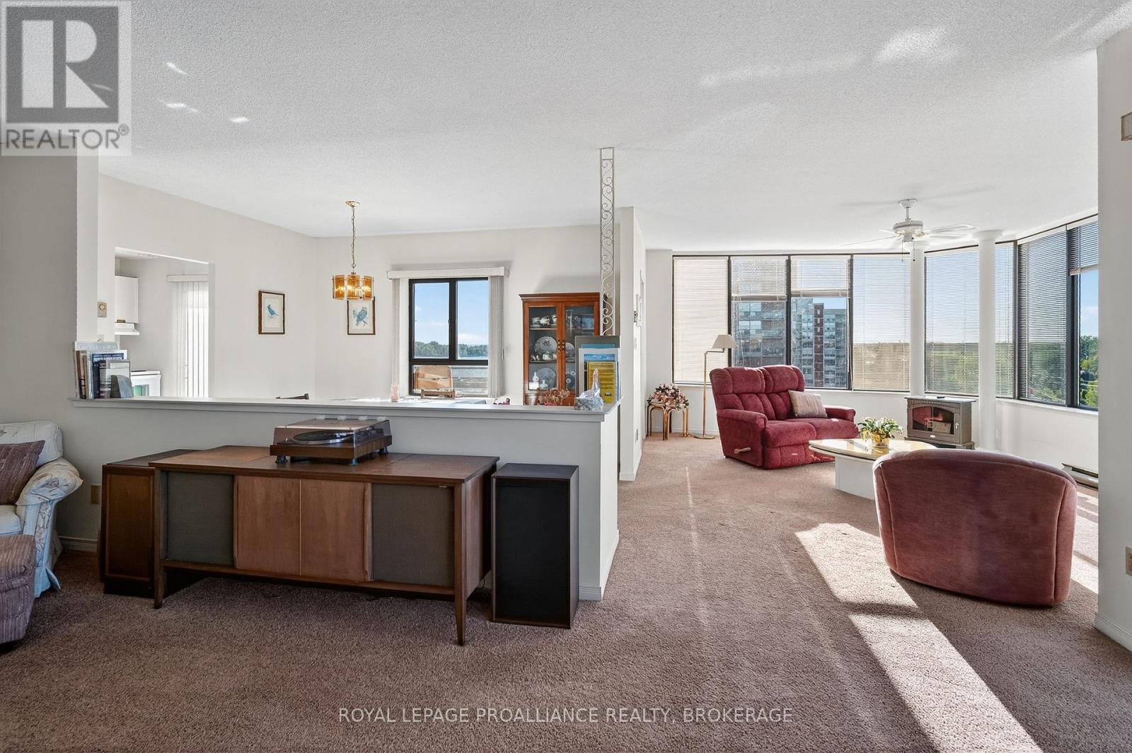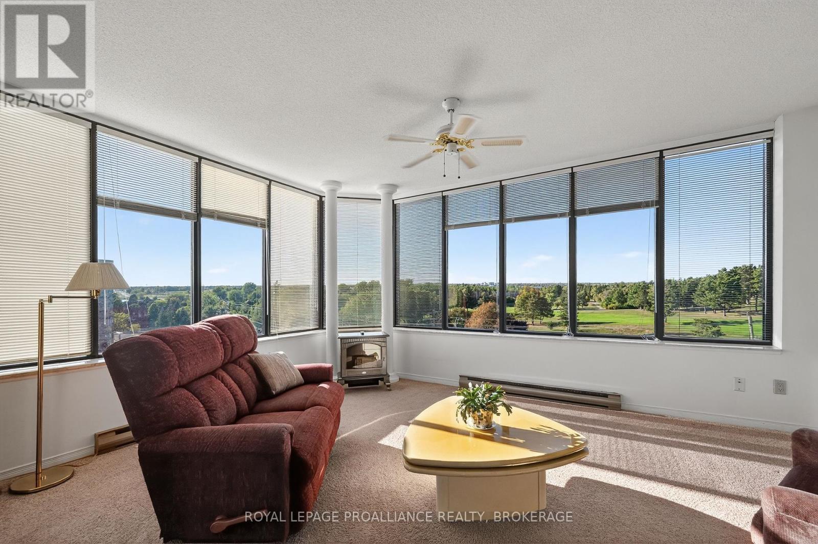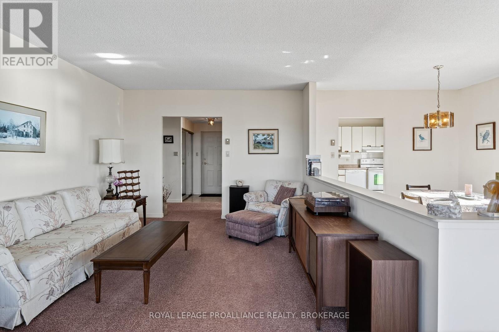 Welcome to Unit 701 at 1000 King Street West - an exceptional 2-bedroom, 2-bath condo offering breathtaking views and a lifestyle of comfort and convenience. Perched on the 7th floor, this residence boasts two private balconies with stunning vistas over treetops, the golf course, and the shimmering lake, all visible from your bright and airy living space. Inside, you'll find spacious bedrooms with generous closet space, a well-appointed kitchen with extensive cabinetry, and a thoughtfully designed living area that maximizes natural light and panoramic views. The convenience of in-suite laundry adds to the seamless living experience. One owned parking space and a private storage locker are included for added ease. Located just minutes from downtown Kingston, the building features patio areas perfect for social gatherings and offers effortless access to shops, restaurants, parks, and waterfront trails. Whether you're enjoying a quiet evening with a view or exploring the vibrant local scene, Unit 701 delivers a rare blend of serenity and urban connection. (id:29295)
