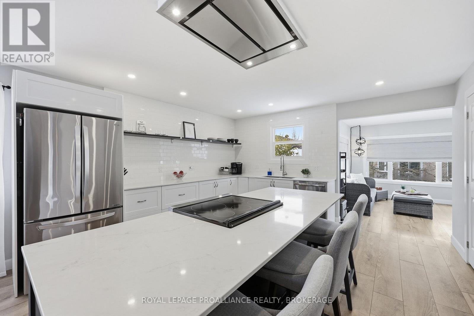 A rare find in centrally located waterloo village! 719 Muirfield Crescent is a 1,600 sqft raised bungalow that was fully renovated in 2021 - a complete redesign finished to an exceptional standard. From top to bottom, nearly everything has been updated, creating a home that feels both beautifully modern and incredibly welcoming. The main floor has been opened up to create a bright, flowing layout that connects the living room, dining area and kitchen into one airy and inviting space. At the centre of it all is the custom kitchen, featuring quartz countertops, a tile backsplash and a large island, perfectly positioned between the light-filled living and dining areas and the four-season sunroom - a space you'll find yourself gravitating toward year-round. Every detail has been thoughtfully considered, from updated flooring and pot lighting to the fully renovated bathrooms and quality finished throughout. The main level offers three spacious bedrooms and two fully updated bathrooms, including a beautifully primary ensuite connected to a walk-in closet. The lower level continues the quality and thoughtful design found throughout the home. Thanks to the raised bungalow layout, it's bright and welcoming with oversized windows that bring in plenty of natural light. The fully renovated space includes a large family room, a fourth bedroom and a third full bathroom - ideal for teenagers, guests, extended family or a comfortable work-from-home setup. Other important updates include a furnace and central A/C installed in 2022 and roof shingles replaced 2018. The home also features an attached two-car garage with convenient inside entry. Set on one of the quietest streets in the neighbourhood, the location is just as appealing as the home itself. You're just minutes from Farm Boy, Starbucks, Planet Fitness, Costco, parks, schools and everyday amenities. Completely renovated. Move-in ready and truly one of a kind. Put this stunner on your must-see list. (id:29295)