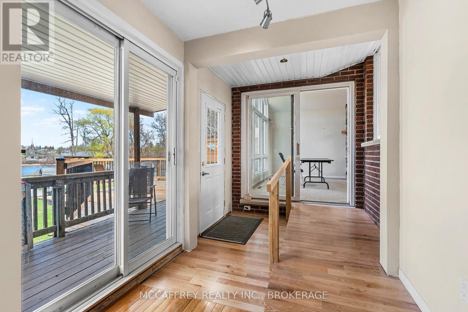 Welcome to your riverside sanctuary along the lovely Napanee River! Experience the best of waterfront living in this enchanting two-storey home, where modern comfort meets classic architectural charm. Rarely does a property blend such peaceful natural beauty with a prime riverfront location and full town services. Admire timeless custom architecture enhanced by striking natural stone frontage that blends into landscaped gardens, creating year-round curb appeal. Step inside to a generous living area, featuring a cozy gas fireplace and expansive windows flooding the space with natural light. The spacious, stylish kitchen offers modern appliances and direct access to an expansive deck overlooking the river perfect for morning coffee, evening sunsets, and gatherings with friends as swans glide by. The dining room is a delight for nature lovers, wrapped in windows framing panoramic river views. Enjoy multiple flourishing gardens that complete the serene setting and offer year-round pleasure. The main floor is designed for versatility, featuring a bedroom with cheater 2pc ensuite ideal for guests, family members needing easy access, or multigenerational living. You'll also appreciate the convenient laundry room with direct garage entry. Upstairs, the primary bedroom is a private retreat complete with a 2pc ensuite and a balcony overlooking the tranquil river. Two additional bedrooms and a 4pc bath with soaker tub offer space and flexibility for family, guests, or home offices. The finished walk-out lower level boasts a generous rec room with wood burning fireplace, storage, a 3pc bath, second laundry hookup, and direct back yard access great for a potential in-law suite or extended family. This exceptional home is within walking distance of amenities and minutes from a boat launch. Perfect for multigenerational families, guests, and those seeking both convenience and tranquility. Embrace riverside living at its finest in this one-of-a-kind home! (id:29295)