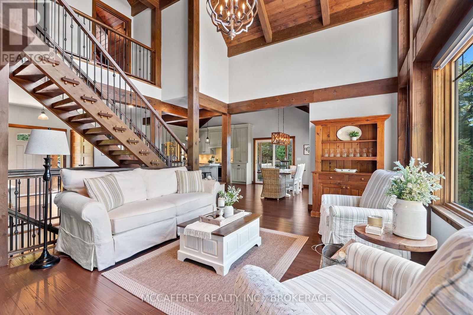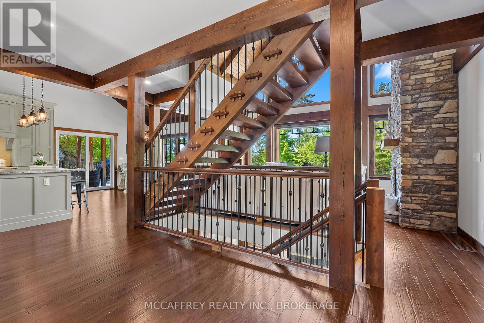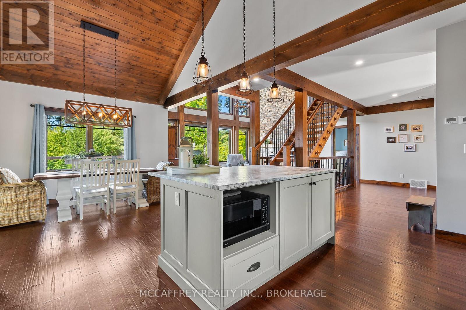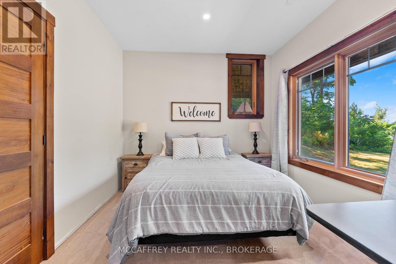 Welcome to this gorgeous timberframe waterfront retreat in Seeleys Bay, custom built in 2017. Tucked into a peaceful, 3+ acre country setting located directly on the Rideau Canal, this two storey Discovery Dream Home blends classic character with elevated finishes, beginning with soaring tongue and groove cathedral ceilings that crown the light filled main living area. Warm natural wood, expansive windows, and an airy, open concept create an inviting backdrop for everyday life and effortless entertaining. At the heart of the home is a magazine worthy kitchen by Hickory Lane Kitchen. Custom cabinetry provides exceptional storage and organization, while leathered granite countertops bring texture, durability, and understated luxury. A generous prep and serving area invites family and friends to gather, and the seamless flow to the dining and living spaces keeps the conversation going from breakfast to late night board games. Thoughtful design continues throughout with flexible main floor spaces that adapt to your lifestyle ideal for a home office, playroom, or quiet guest room. Upstairs, the Cape Cod charm continues with dormer accents and a lofted feel, offering a bedroom and a bright landing that can double as a reading nook or creative studio. Every detail reflects quality craftsmanship and a focus on comfort, from the solid finishes to the practical storage solutions you'll appreciate daily. Outdoors, enjoy tranquil views and room to relax, garden, fish, swim and entertain whether you're hosting summer barbecues or unwinding with a coffee on a crisp morning. Boat through the channel into Whitefish, minutes from marinas, parks and recreation on the Rideau. Convenient, easy commute to Kingston and Gananoque. Move In ready and impeccably maintained, this home delivers the best of waterfront country living: character without compromise in a setting that feels like home the moment you arrive. Discover your next chapter in a home that's as functional as it is beautiful. (id:29295)