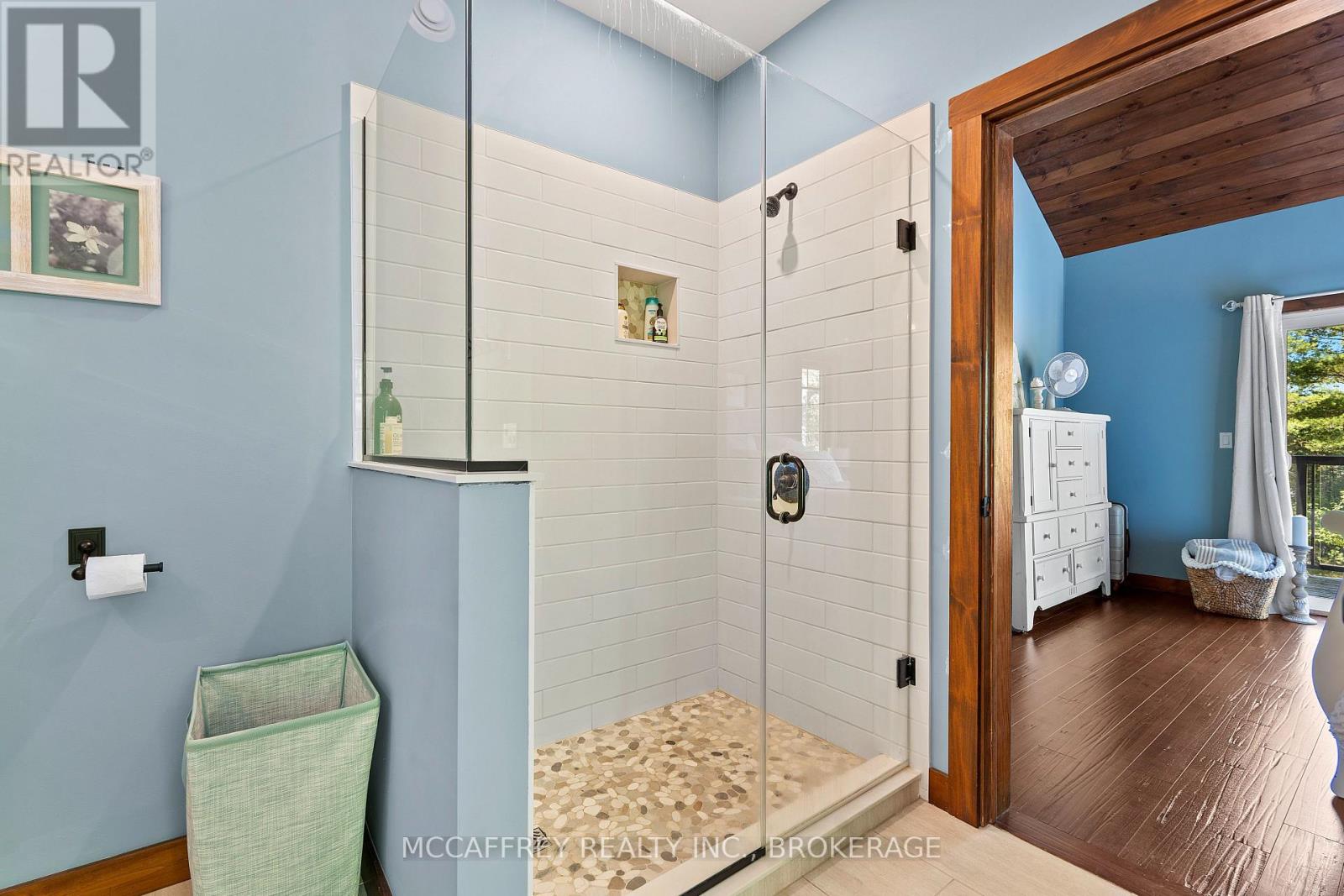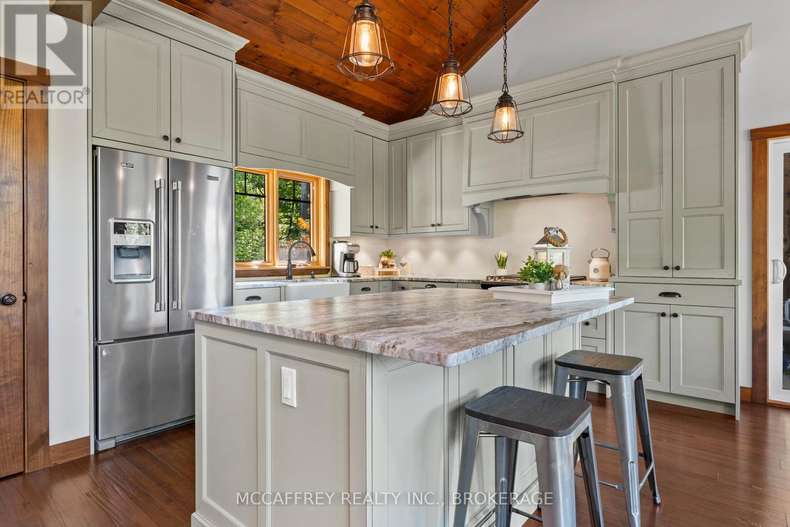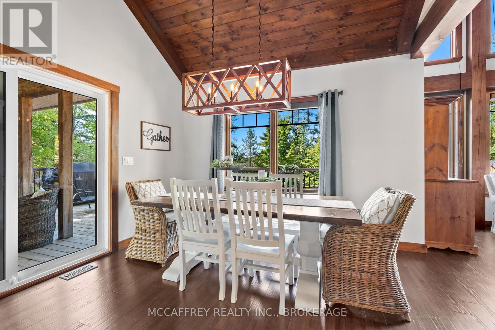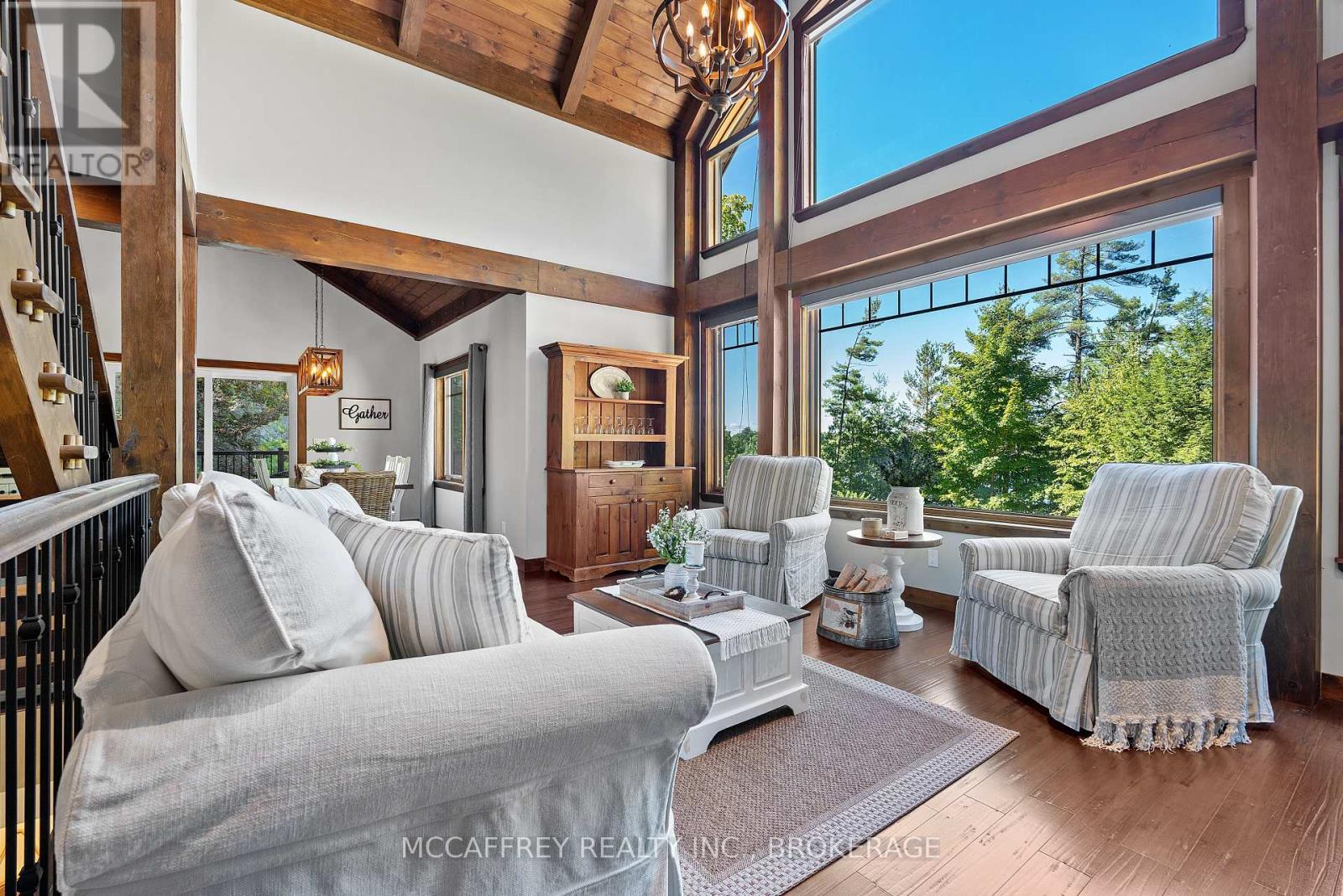 Welcome to this gorgeous timberframe waterfront retreat in Seeleys Bay, custom built in 2017. Tucked into a peaceful, 3+ acre country setting located directly on the Rideau Canal, this two storey Discovery Dream Home blends classic character with elevated finishes, beginning with soaring tongue and groove cathedral ceilings that crown the light filled main living area. Warm natural wood, expansive windows, and an airy, open concept create an inviting backdrop for everyday life and effortless entertaining. At the heart of the home is a magazine worthy kitchen by Hickory Lane Kitchen. Custom cabinetry provides exceptional storage and organization, while leathered granite countertops bring texture, durability, and understated luxury. A generous prep and serving area invites family and friends to gather, and the seamless flow to the dining and living spaces keeps the conversation going from breakfast to late night board games. Thoughtful design continues throughout with flexible main floor spaces that adapt to your lifestyle ideal for a home office, playroom, or quiet guest room. Upstairs, the Cape Cod charm continues with dormer accents and a lofted feel, offering a bedroom and a bright landing that can double as a reading nook or creative studio. Every detail reflects quality craftsmanship and a focus on comfort, from the solid finishes to the practical storage solutions you'll appreciate daily. Outdoors, enjoy tranquil views and room to relax, garden, fish, swim and entertain whether you're hosting summer barbecues or unwinding with a coffee on a crisp morning. Boat through the channel into Whitefish, minutes from marinas, parks and recreation on the Rideau. Convenient, easy commute to Kingston and Gananoque. Move In ready and impeccably maintained, this home delivers the best of waterfront country living: character without compromise in a setting that feels like home the moment you arrive. Discover your next chapter in a home that's as functional as it is beautiful. (id:29295)