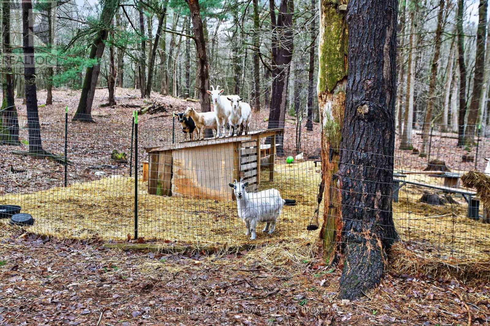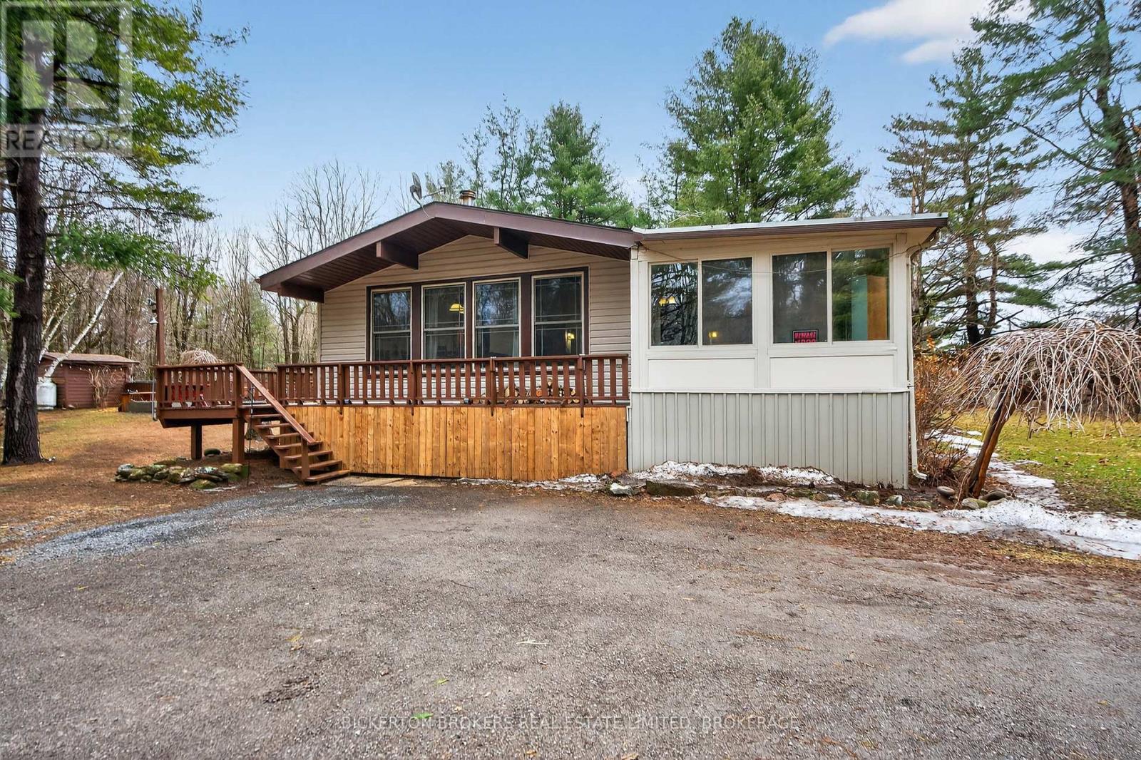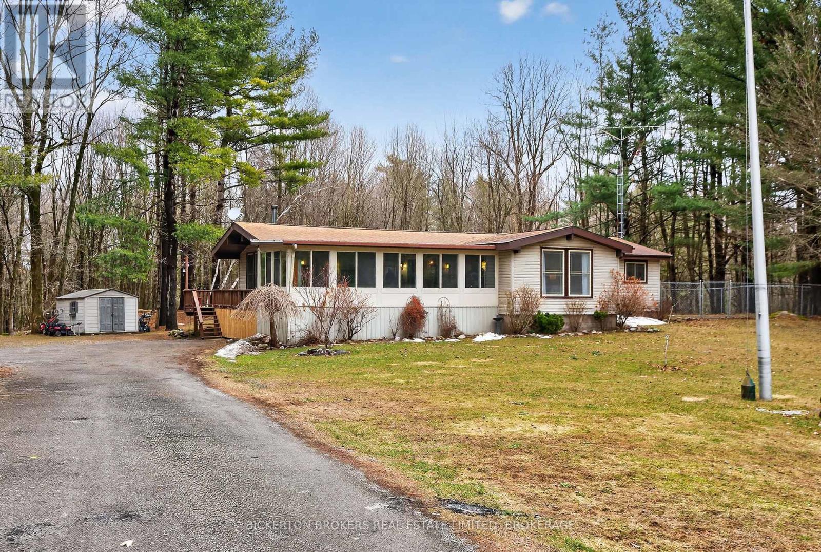 Nestled in the trees this 7-acre property has it all; conveniently located on a quiet road within walking distance to the 1000 Island Parkway waterfront trail, a marina, and a quick hop onto the 401 or to the bridge to the US. You have it all on one level with 2 bathrooms, 4 bedrooms, plus an office and large dedicated laundry room. An open concept kitchen, dining and living area takes advantage of the views and streams with sunlight. Vaulted ceilings make the space bright and airy a skylight adds even more light in the dining area. Lovely wood cabinetry in the kitchen with lots of storage and a handy breakfast bar or additional workspace. The living room is large, and light filled and you'll love to cozy up by the stove on those chilly nights. There is also a door for access to the wrap around deck. Outside there is plenty of room for all your hobbies to include a large shed with attached kennel or use as a chicken coop, a fenced area currently housed by chickens and a goat and to top it off a large steel Quonset hut that provides endless options. Maybe boat storage or it once was used for horses or a fabulous workshop equipped with power. To add to this paradise, you have a lovely in ground pool surrounded by decking that can handle all your entertaining or relaxing dreams. The pool and deck area are at the rear and offer complete privacy surrounded by your own woods. If you are a nature lover wildlife abounds at this gorgeous location. Nicely set back from the road and featuring a circular driveway. Do not miss out on this! (id:29295)