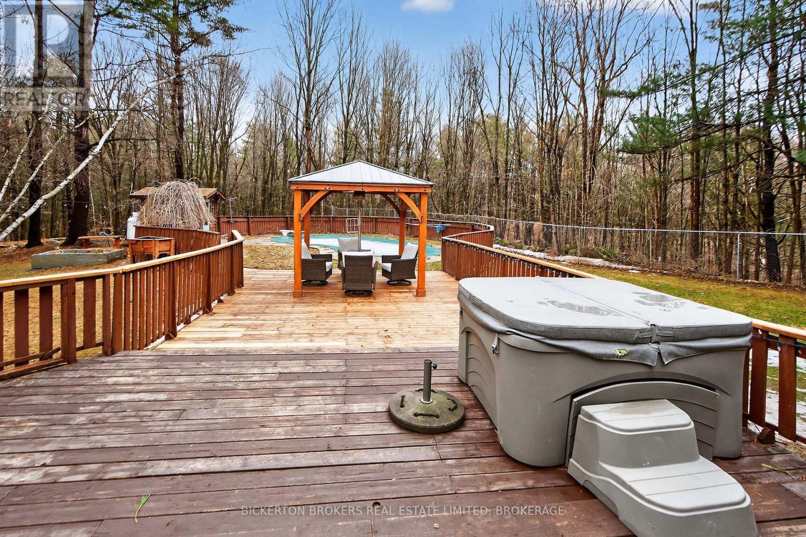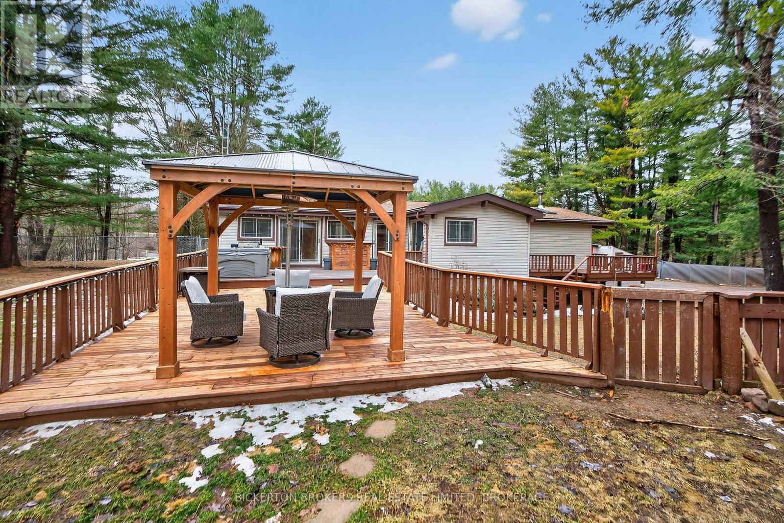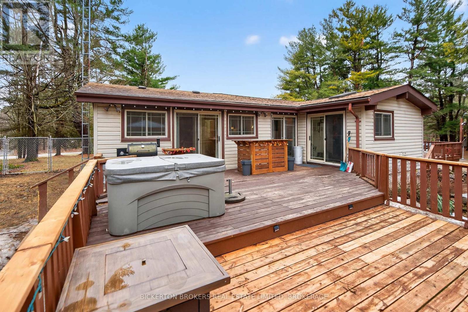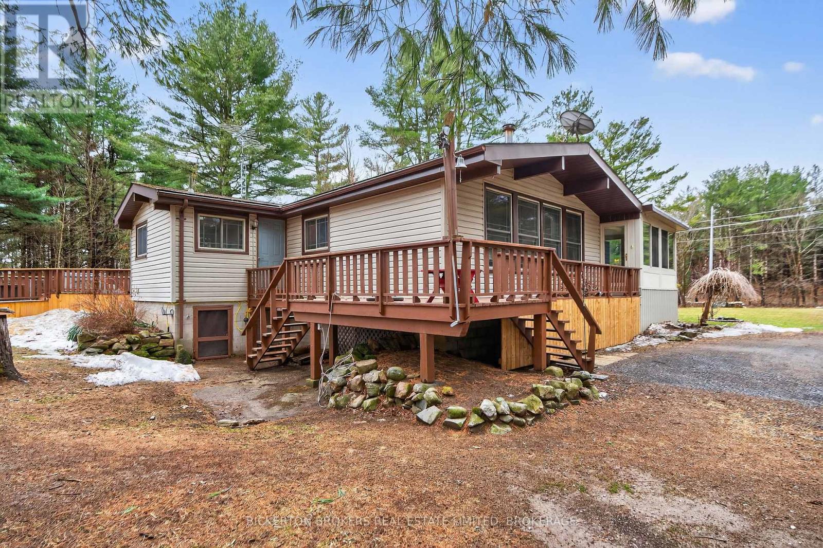 Nestled in the trees this 7-acre property has it all; conveniently located on a quiet road within walking distance to the 1000 Island Parkway waterfront trail, a marina, and a quick hop onto the 401 or to the bridge to the US. You have it all on one level with 2 bathrooms, 4 bedrooms, plus an office and large dedicated laundry room. An open concept kitchen, dining and living area takes advantage of the views and streams with sunlight. Vaulted ceilings make the space bright and airy a skylight adds even more light in the dining area. Lovely wood cabinetry in the kitchen with lots of storage and a handy breakfast bar or additional workspace. The living room is large, and light filled and you'll love to cozy up by the stove on those chilly nights. There is also a door for access to the wrap around deck. Outside there is plenty of room for all your hobbies to include a large shed with attached kennel or use as a chicken coop, a fenced area currently housed by chickens and a goat and to top it off a large steel Quonset hut that provides endless options. Maybe boat storage or it once was used for horses or a fabulous workshop equipped with power. To add to this paradise, you have a lovely in ground pool surrounded by decking that can handle all your entertaining or relaxing dreams. The pool and deck area are at the rear and offer complete privacy surrounded by your own woods. If you are a nature lover wildlife abounds at this gorgeous location. Nicely set back from the road and featuring a circular driveway. Do not miss out on this! (id:29295)