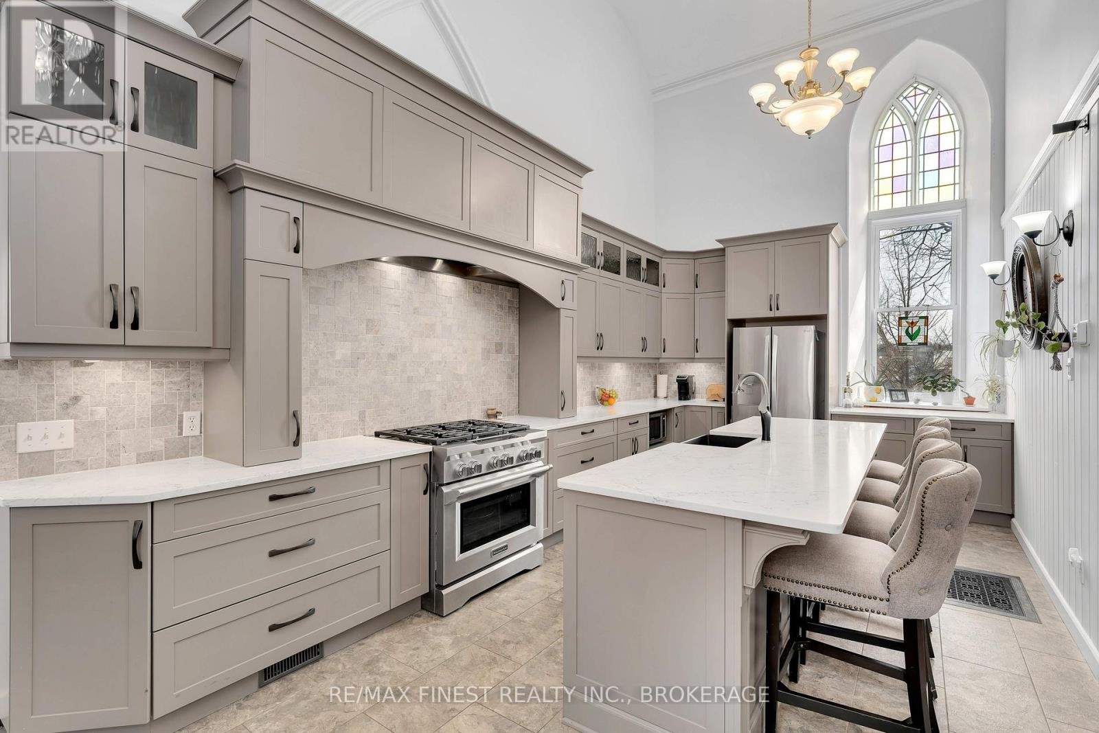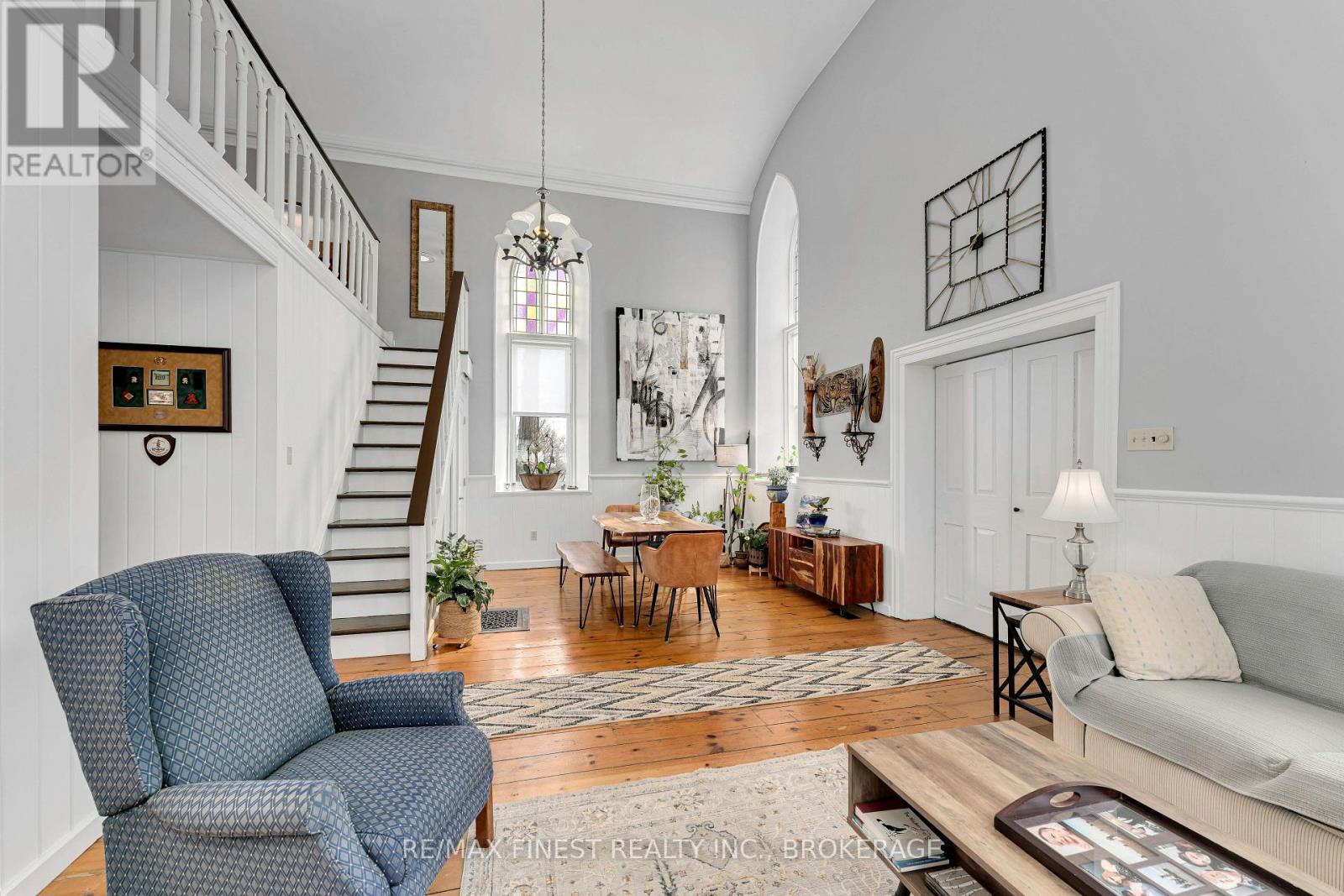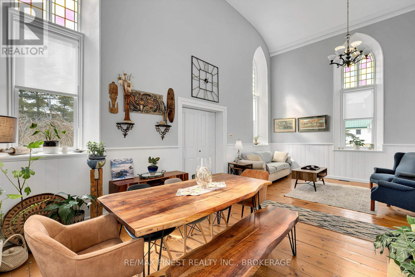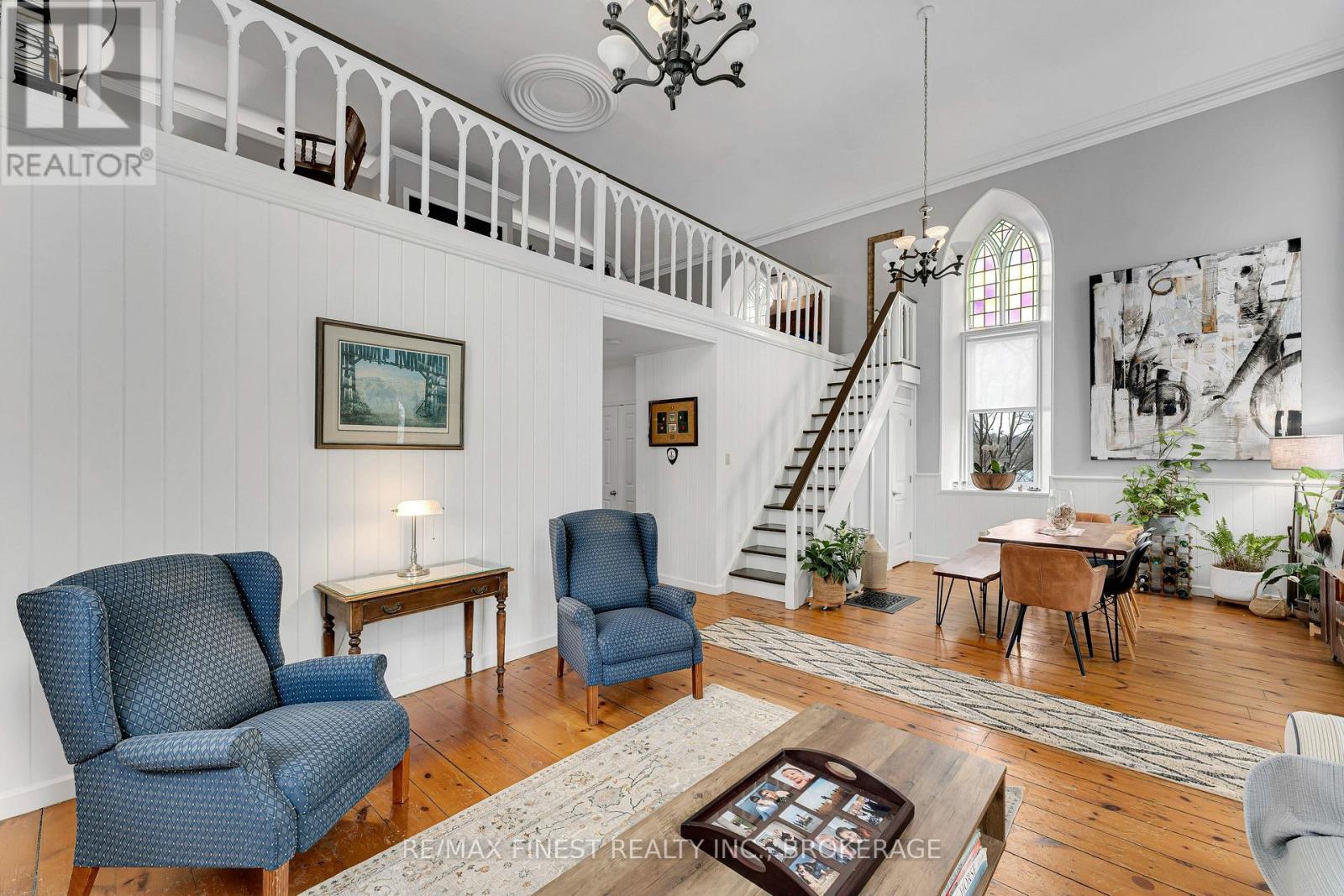Step into a truly one-of-a-kind home-this beautifully converted 1875 church in Strathcona blends historic character with modern comfort. Featuring soaring ceilings and an abundance of natural light, this property offers a warm and inviting atmosphere throughout. The main living space boasts an open-concept design with a spacious living and dining area, perfect for entertaining or relaxing. The home includes 1 bedroom, 1.5 baths, and convenient main-floor laundry. The chef-inspired kitchen is a standout, complete with a large island and an adjoining prep area offering ample cabinetry and counter space. Just off the kitchen, a charming screened-in porch provides the perfect spot to enjoy your morning coffee and take in the sunrise. Upstairs, a versatile loft-style family room overlooks the main living area, showcasing the home's unique architecture. This flexible space can easily be converted into an additional bedroom if desired. The property also features a private in-law suite with its own separate entrance. This self-contained space includes a spacious living room with a natural gas fireplace, a newer kitchen, a bedroom, full bath with walk-in shower, and its own laundry. A cozy 3-season sitting area adds even more comfort and privacy. Outside, enjoy peaceful surroundings from your deck or cool off in the above-ground pool during warm summer days. A detached, heated 2-car garage with plenty of natural light and a paved driveway adds convenience and functionality. Located just a short walk from the K&P Trail, this exceptional property offers a rare opportunity to own a piece of history with modern versatility. Be sure to ask for the full list of updates-this home truly does not disappoint. (id:29295)
