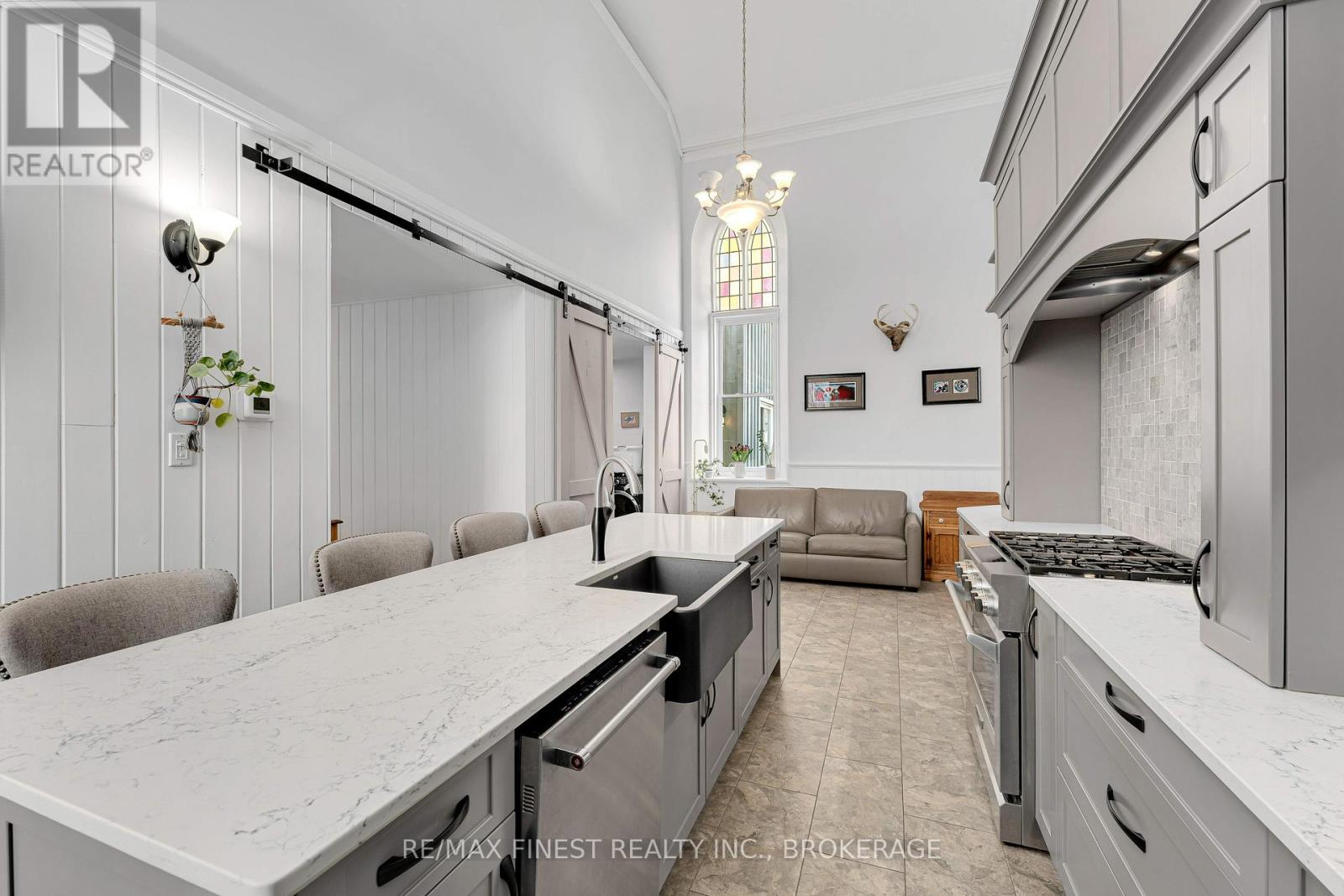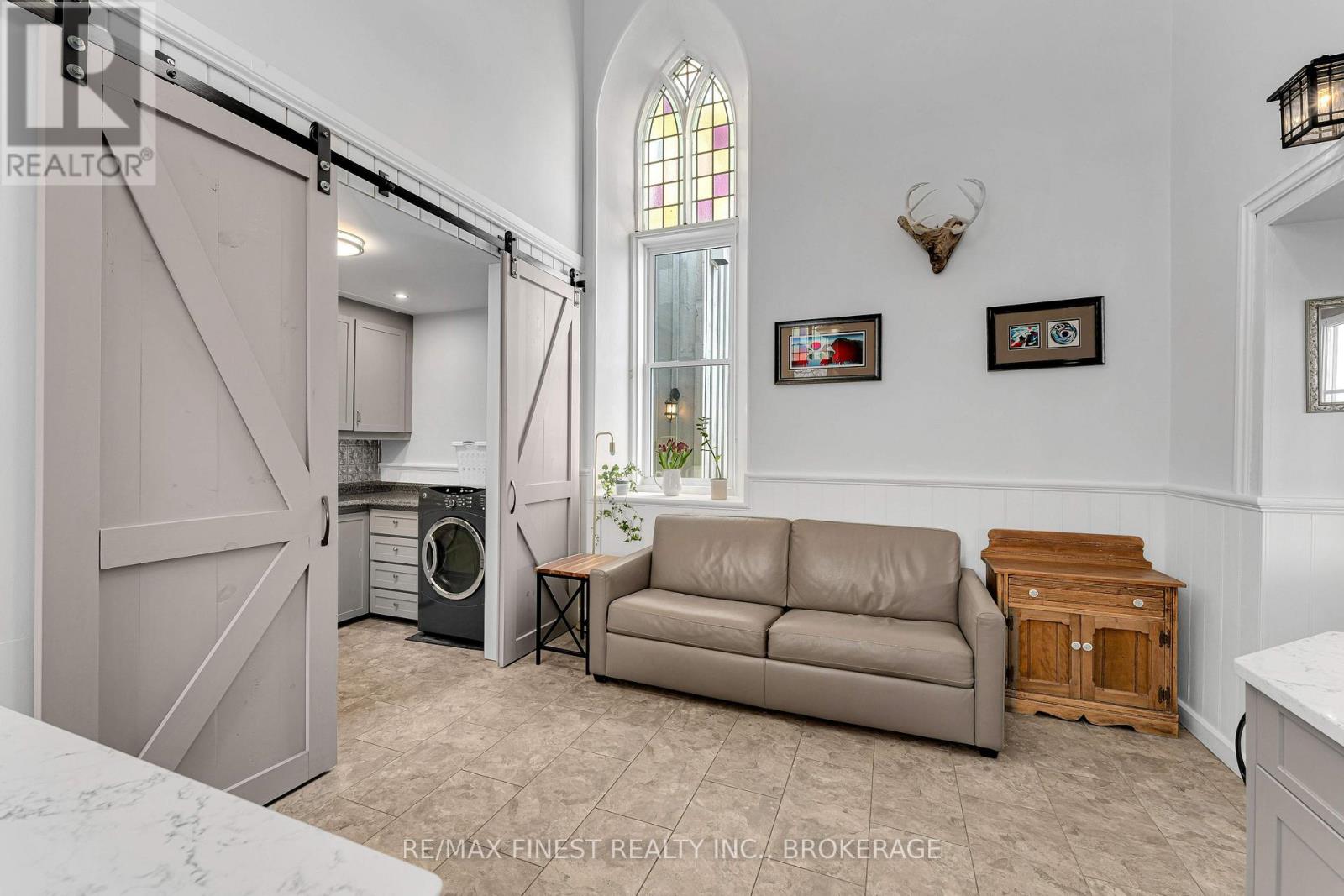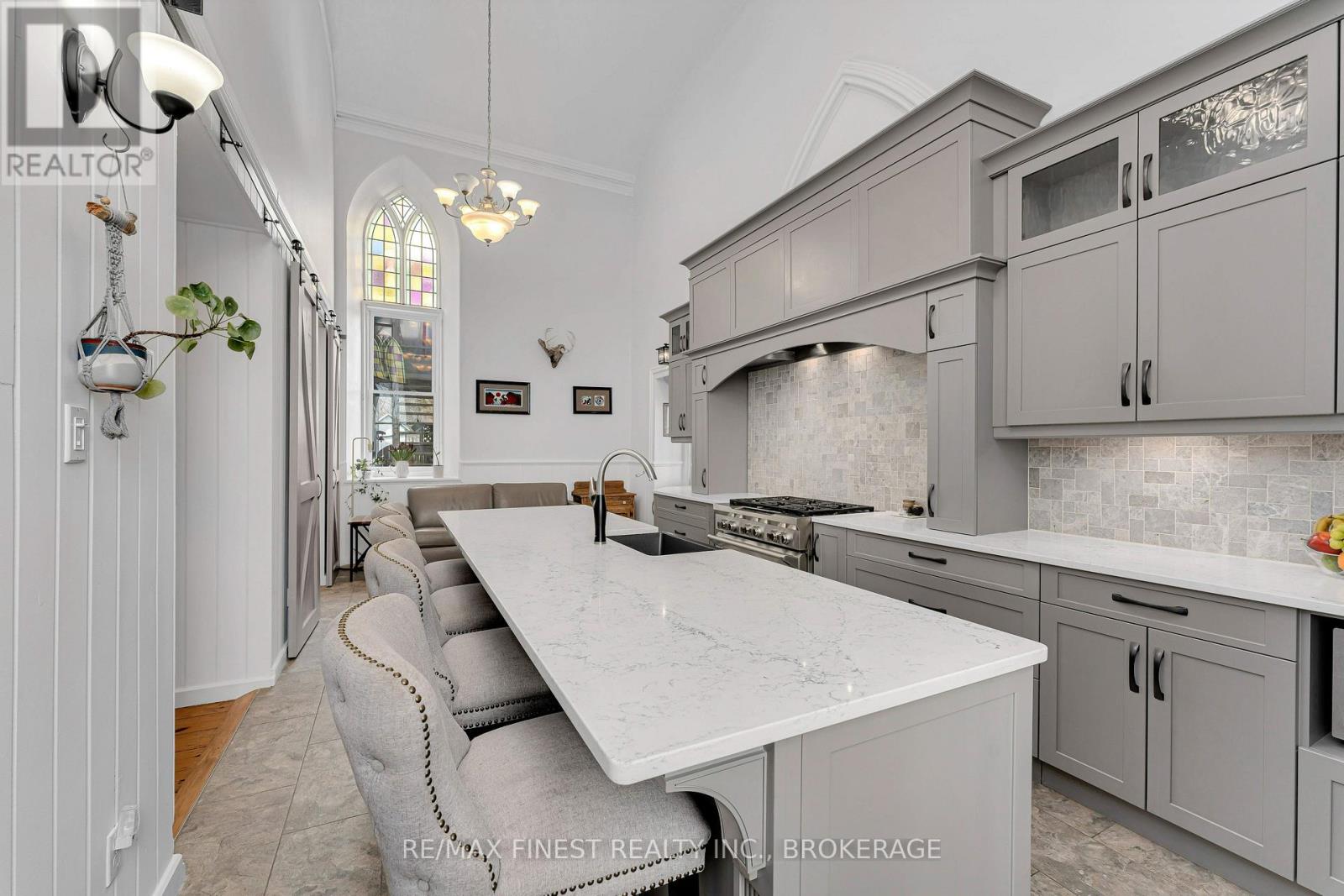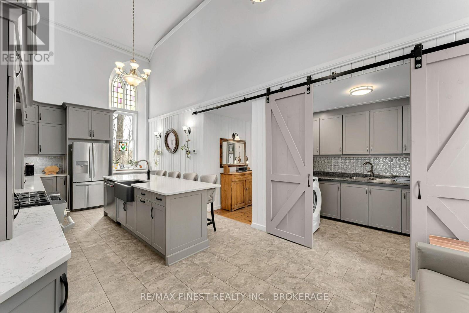 Step into a truly one-of-a-kind home-this beautifully converted 1875 church in Strathcona blends historic character with modern comfort. Featuring soaring ceilings and an abundance of natural light, this property offers a warm and inviting atmosphere throughout. The main living space boasts an open-concept design with a spacious living and dining area, perfect for entertaining or relaxing. The home includes 1 bedroom, 1.5 baths, and convenient main-floor laundry. The chef-inspired kitchen is a standout, complete with a large island and an adjoining prep area offering ample cabinetry and counter space. Just off the kitchen, a charming screened-in porch provides the perfect spot to enjoy your morning coffee and take in the sunrise. Upstairs, a versatile loft-style family room overlooks the main living area, showcasing the home's unique architecture. This flexible space can easily be converted into an additional bedroom if desired. The property also features a private in-law suite with its own separate entrance. This self-contained space includes a spacious living room with a natural gas fireplace, a newer kitchen, a bedroom, full bath with walk-in shower, and its own laundry. A cozy 3-season sitting area adds even more comfort and privacy. Outside, enjoy peaceful surroundings from your deck or cool off in the above-ground pool during warm summer days. A detached, heated 2-car garage with plenty of natural light and a paved driveway adds convenience and functionality. Located just a short walk from the K&P Trail, this exceptional property offers a rare opportunity to own a piece of history with modern versatility. Be sure to ask for the full list of updates-this home truly does not disappoint. (id:29295)