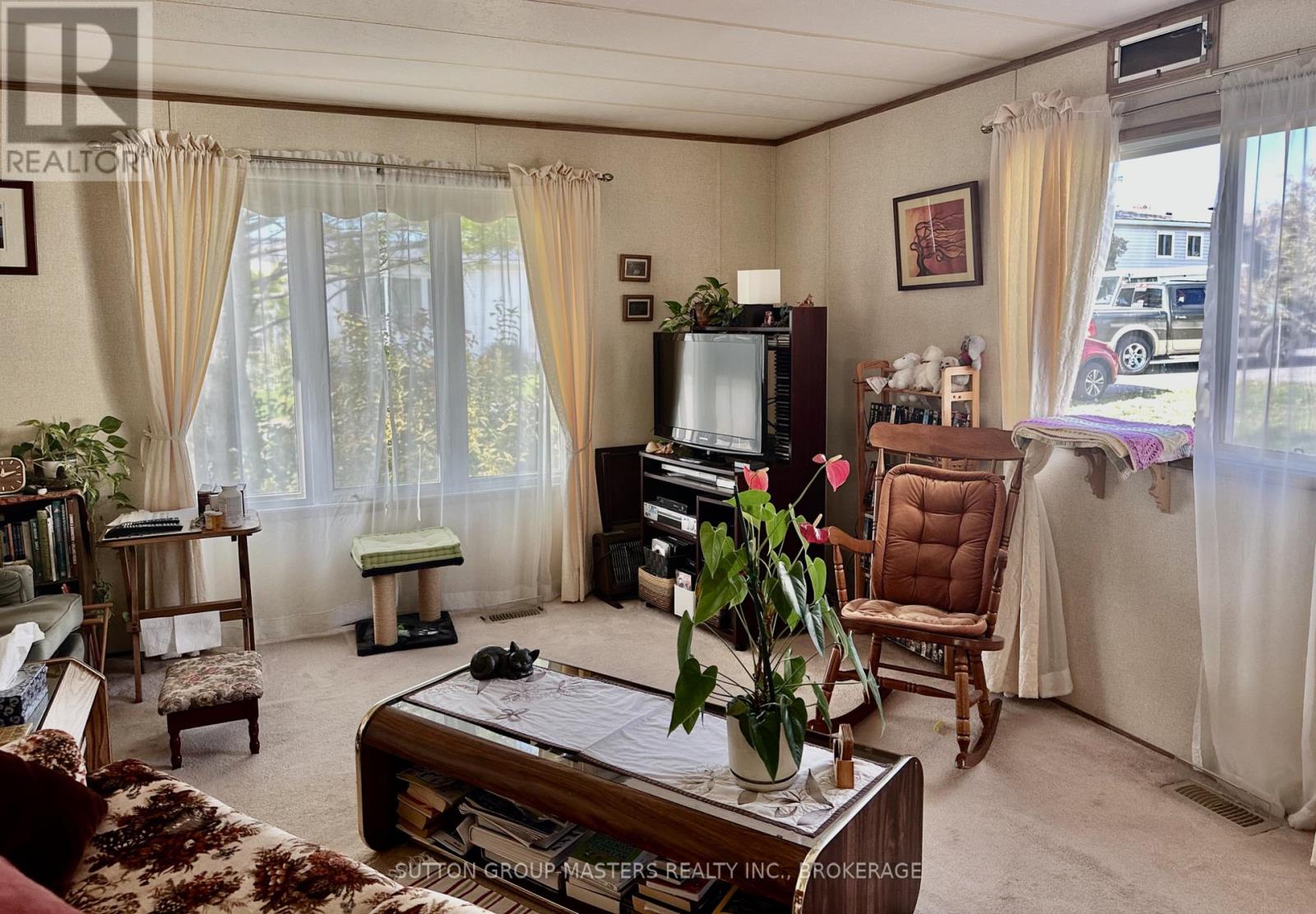 The perfect solution to affordable downsizing! The Richmond Park community is close to Napanee amenities, backs onto the future seniors home, yet set in a country setting on a quiet road perfect for walking. A covered entrance way from the paved drive with lots of parking leads to the open concept eat in kitchen with lots of cupboards and counter space. The hallway leads to a 4-piece bath and two bedrooms, houses convenient laundry set up, and to a second exterior door to the shed and small manageable yard. This pet friendly, well established and well-maintained park offers a quiet lifestyle in a neighbourly environment. This home has been well loved for some time and ready for someone looking for the most affordable comfortable living space possible! You aren't paying more for fancy extras here, but it has what you need and it's ready for your own touches to make it your own. The spacious master offers 2 large closets, and the bright second bedroom for a spare or hobbies. The electric furnace, central air, newer metal roof, and good windows ensure a warm, dry comfortable living space. Close to Napanee this popular Richmond Park is expanding with new mobile homes for sale, and promises shared community hall for activities, and a swimming pool for the homeowners and their guests. This could be the answer to your downsizing dilemma! (id:29295)