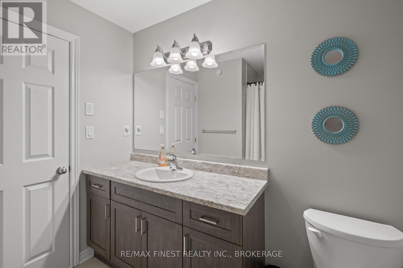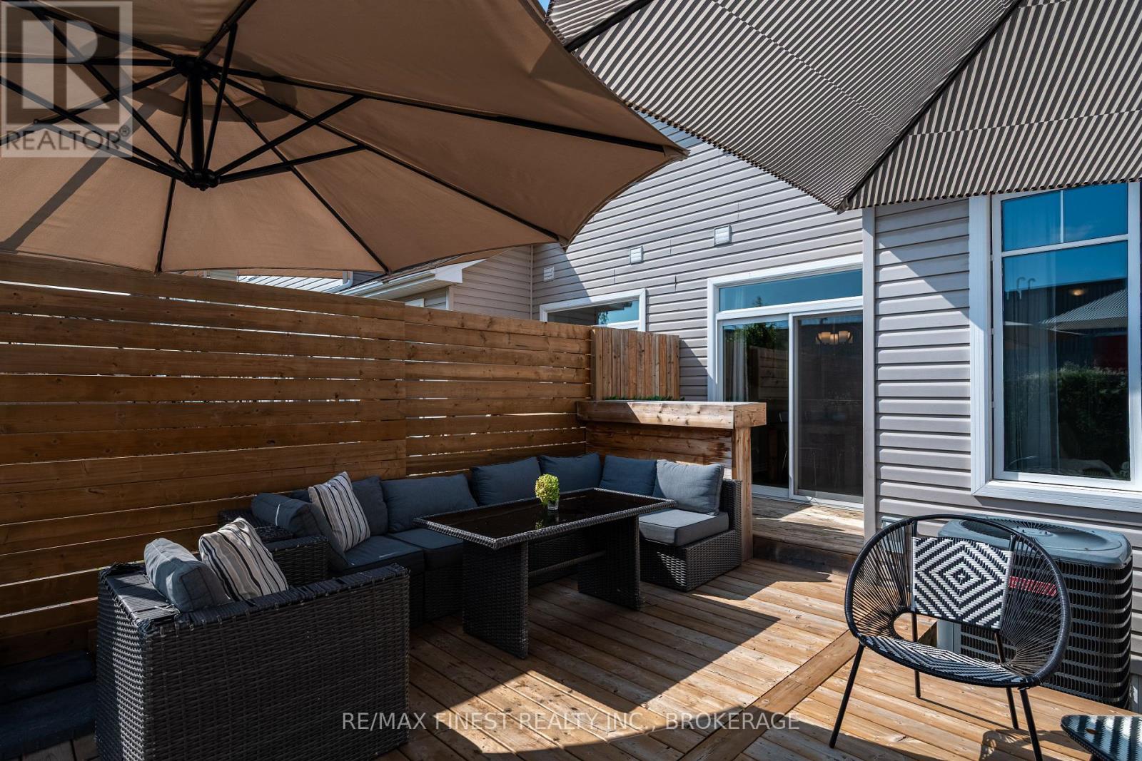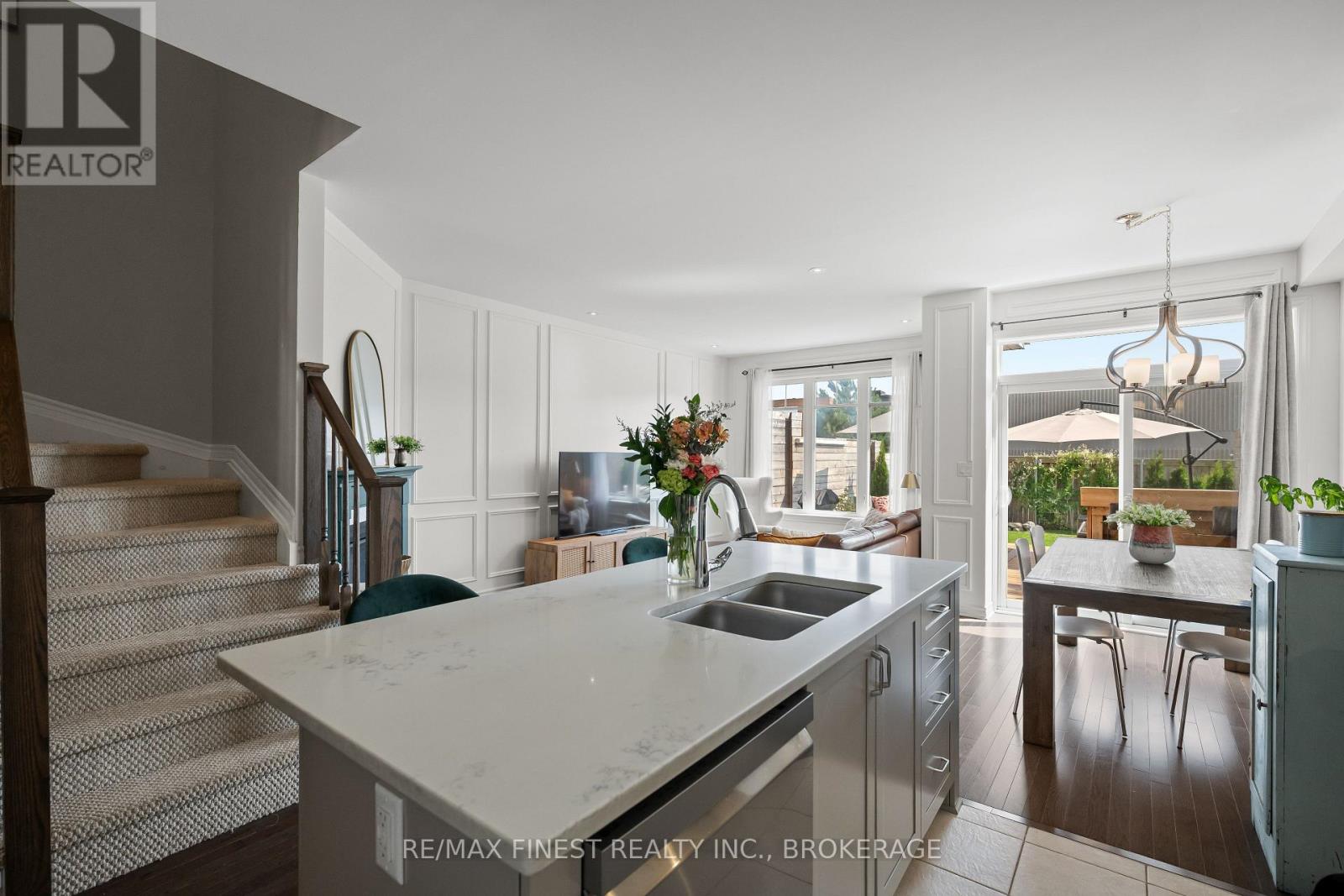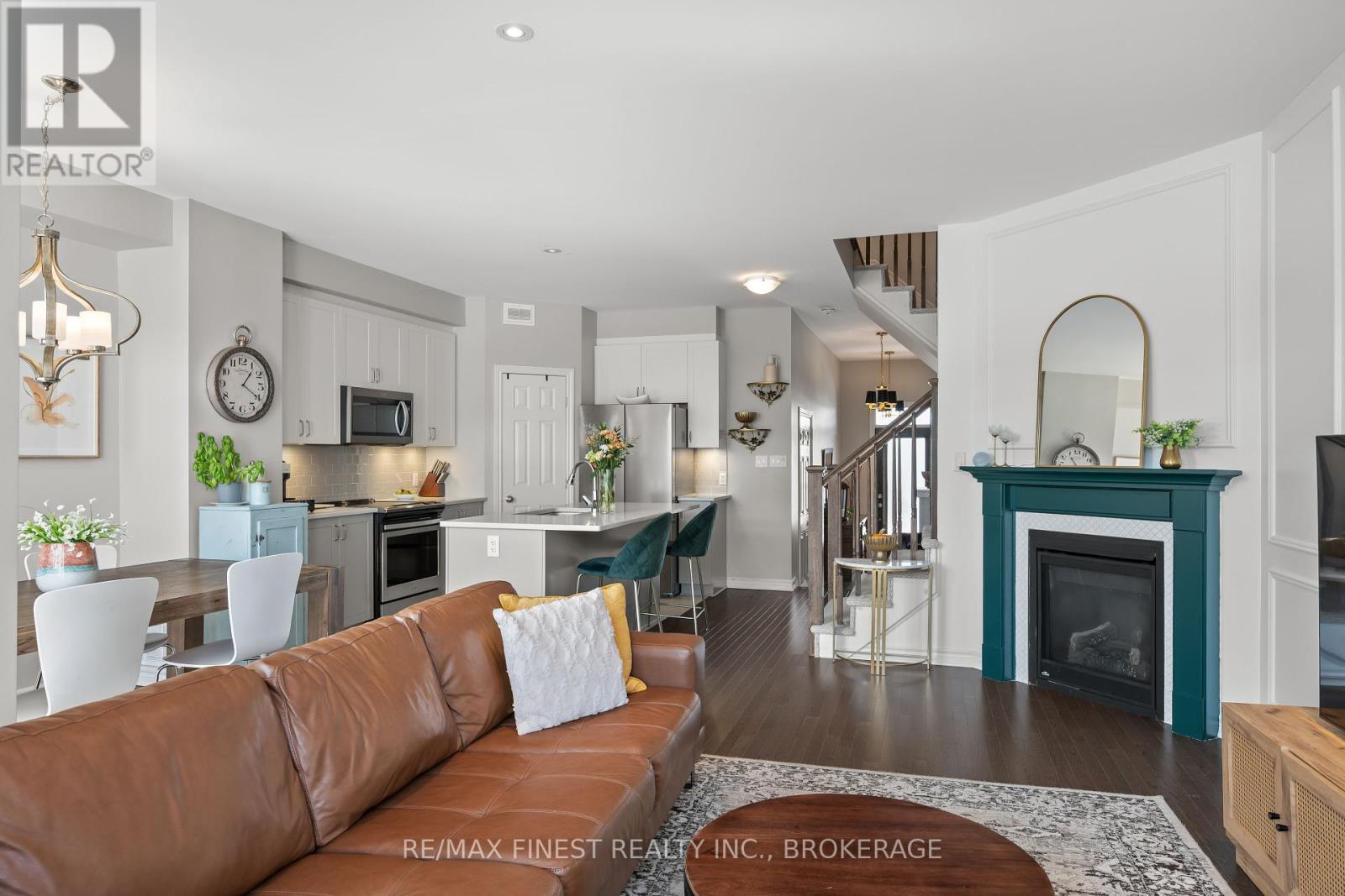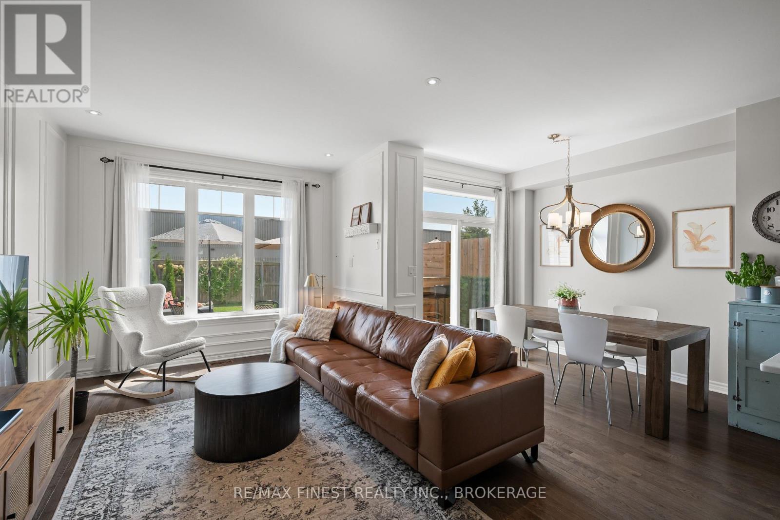 Welcome to 913 Stonewalk Drive, a beautifully finished family home in Kingston East, one of the citys fastest-growing and most vibrant communities. Inside, you'll find a bright open-concept layout with beautiful updates that set this home apart. The tiled entryway with powder room leads into a stunning white kitchen featuring quartz counters, subway tile backsplash, modern built-in appliances, under-cabinet lighting, and a corner pantry. The spacious living room offers warm hardwood floors, stylish paneled walls, and a cozy corner gas fireplace, while the dining areas modern fixture and patio doors with transom above fill the space with natural light and open to a private backyard with no rear neighbours. Step outside to a backyard designed for relaxation and gathering. The yard starts with a well-crafted and expansive new deck that includes enough space to have a super cool bar, privacy fence panels with unique overlapping plank design, and enough seating for both lounging and dining, and ends at the rear with a small yard finished beautifully with cedar trees, hydrangeas, and a rock garden. Upstairs holds a large primary bedroom with a walk-in closet and absolutely lovely ensuite bathroom with a glass tile shower and deep spa-like tub. Down the hall you have the main family bathroom, two other bedrooms, and even an upstairs laundry room with additional closets. The lower level's fully finished basement is ready to go for a playroom, office, guest area, rec room, or home gym: the open layout means it's up to you! This home has been thoughtfully upgraded with details that make a difference. The garage features custom shelving and sleek epoxy floors, while the double driveway accommodates the modern family. Kingston East offers a new community centre with pools and fitness facilities, family-friendly parks, excellent schools and daycares, and easy access to shopping and dining with a Starbucks right around the corner! There's more to Kingston East than ever before. (id:29295)
