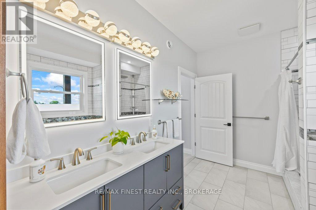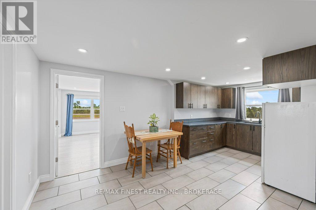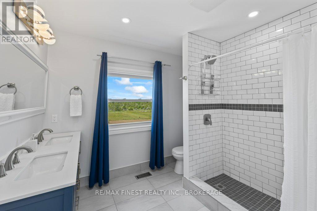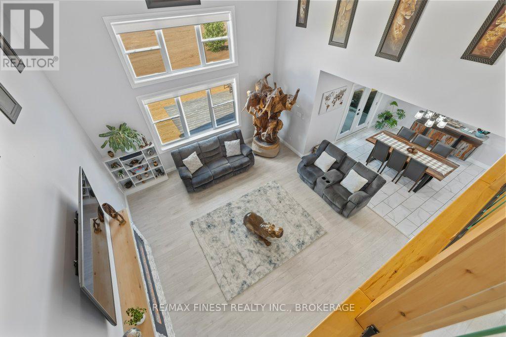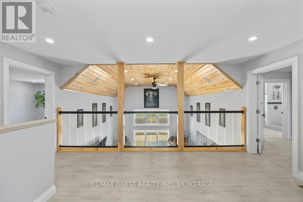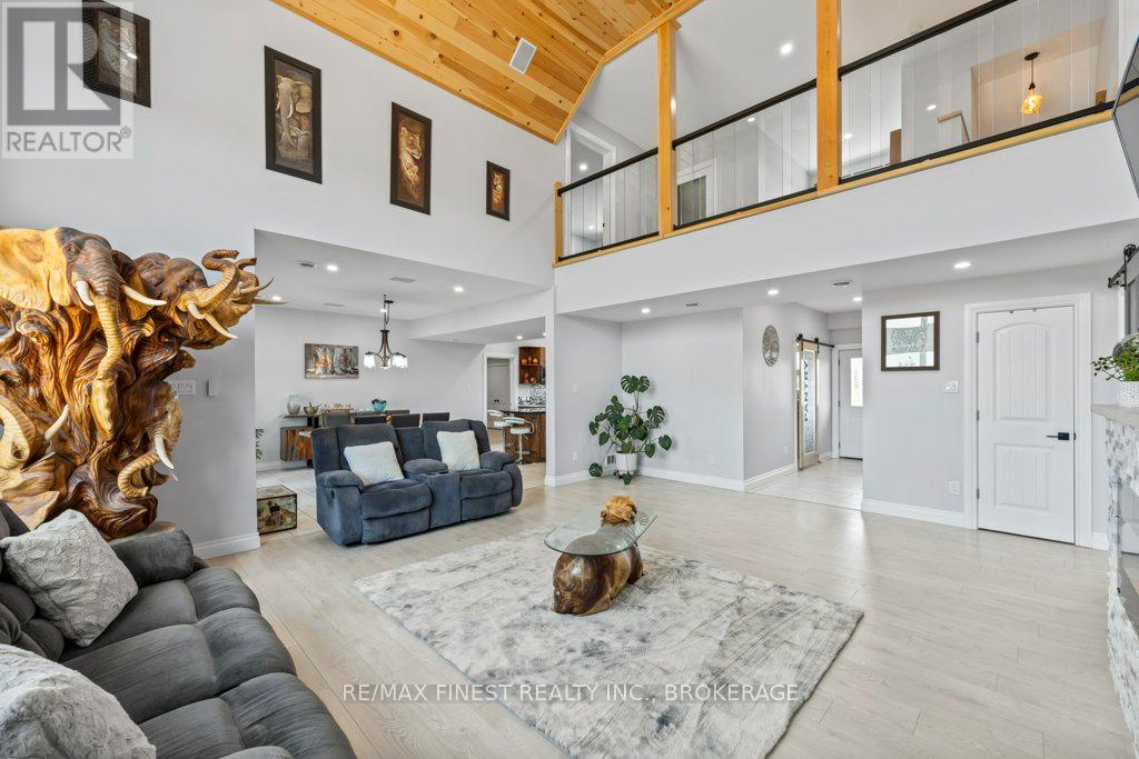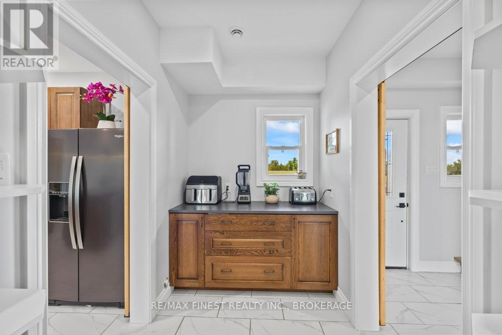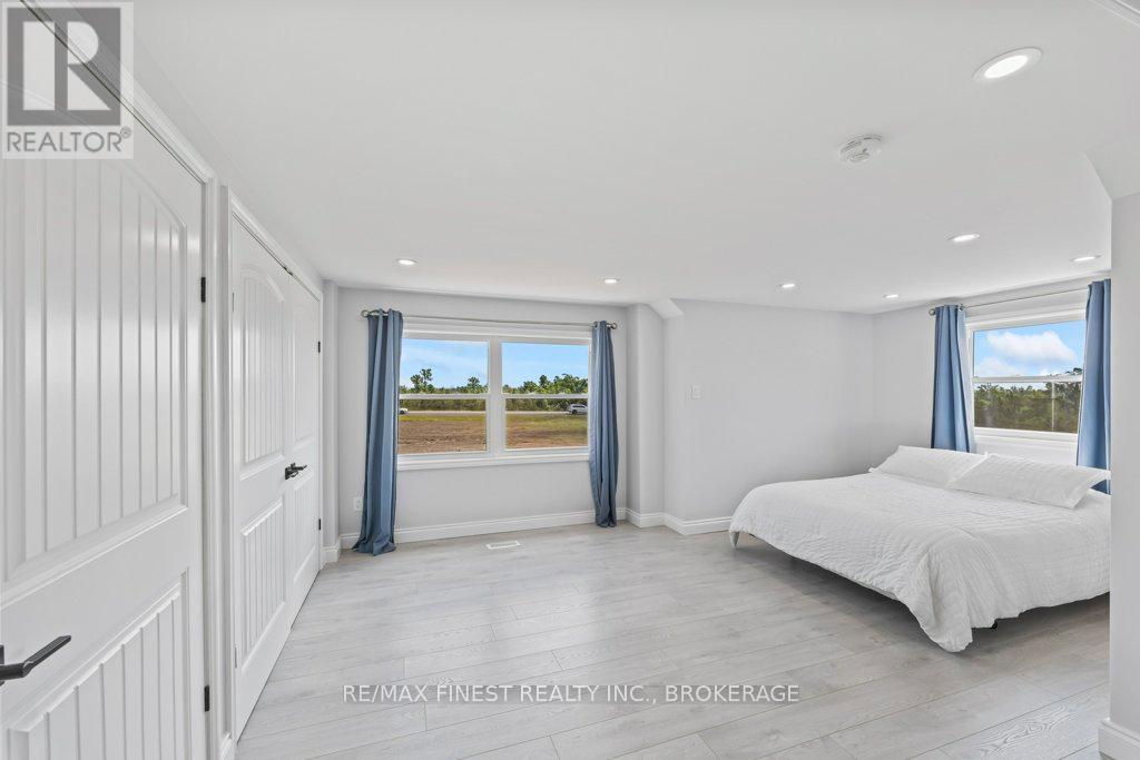 Set on a private 42+ acre parcel, this stunning custom-built home offers a truly unique layout and exceptional space for both indoor comfort and outdoor living. The gourmet kitchen is a standout, featuring in-floor heating, quartz countertops, custom oak cabinetry, black stainless steel appliances including a gas stove, and a convenient dual-access pantry from both the kitchen and front entry. The impressive great room showcases soaring vaulted ceilings, expansive windows with custom electric blinds, built-in surround sound, and a sleek electric fireplace. Patio doors open to a generous deck and a 9x18 stamped concrete pad, ready for your future hot tub. Nature lovers will appreciate the walking trails just beyond the backyard, extending to Caton Road that are ideal for exploring or ATV use. The main-level primary suite offers executive-style comfort with a walk-in closet and a spacious 5-piece ensuite, complete with an extra-long soaker tub and walk-in shower. Upstairs, each bedroom features its own private ensuite, along with a versatile bonus space perfect for a home office, lounge, or recreation area. Function meets convenience with a main floor mudroom/laundry area, powder room, and direct access to the oversized 1,100+ sq ft insulated triple-car garage, including a drive-through bay. Above the garage, a self-contained one-bedroom apartment with separate entrance and parking provides excellent income potential, easily generating approximately $1,500/month. Built with efficiency in mind, the home includes in-floor heating throughout the main level, along with a propane furnace and HRV system servicing the entire property. A second detached 900+ sq ft garage offers even more storage for vehicles, equipment, or recreational toys. Ideally located just 10 minutes from Kingston's west end, with easy access to amenities, schools, shopping, and Highway 401. This property delivers privacy without sacrificing convenience. (id:29295)