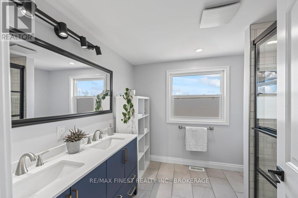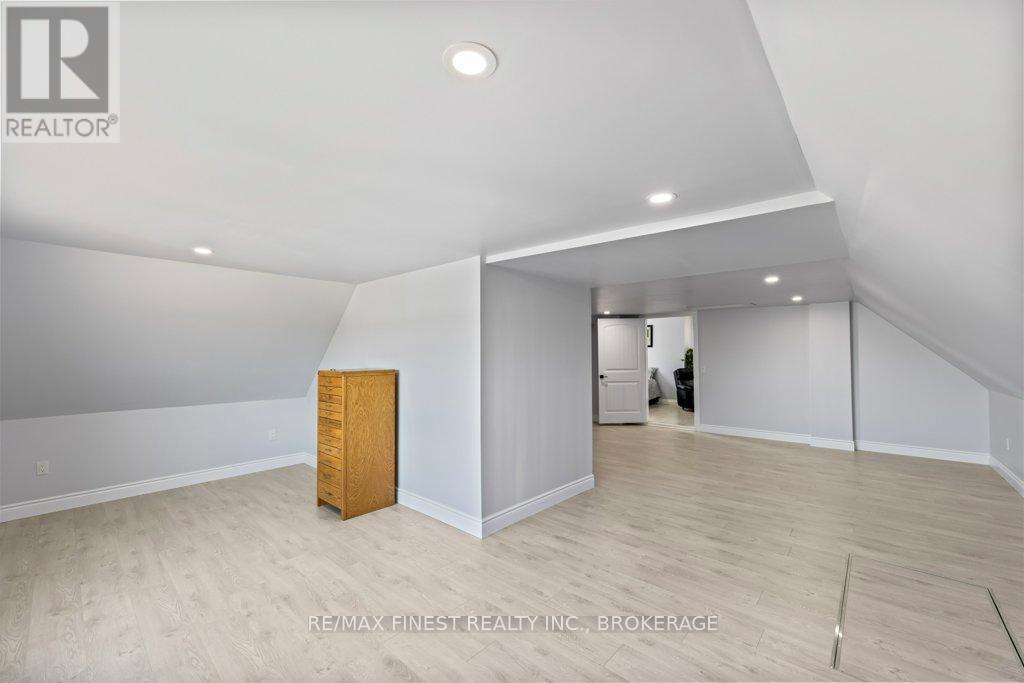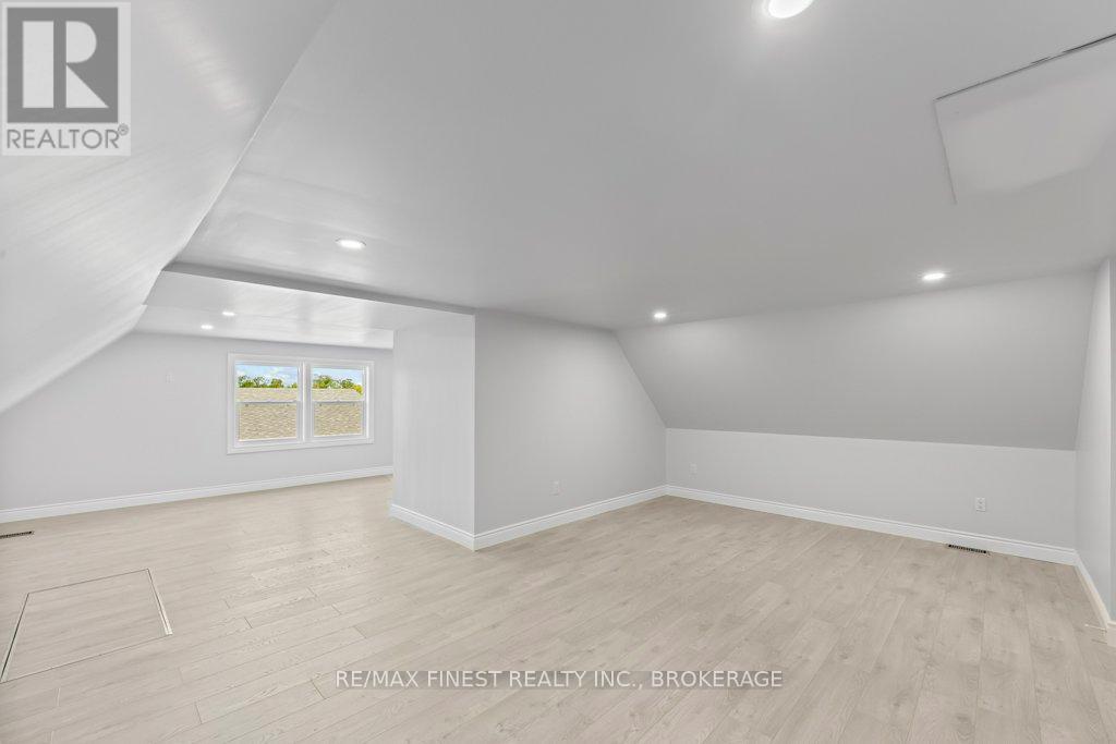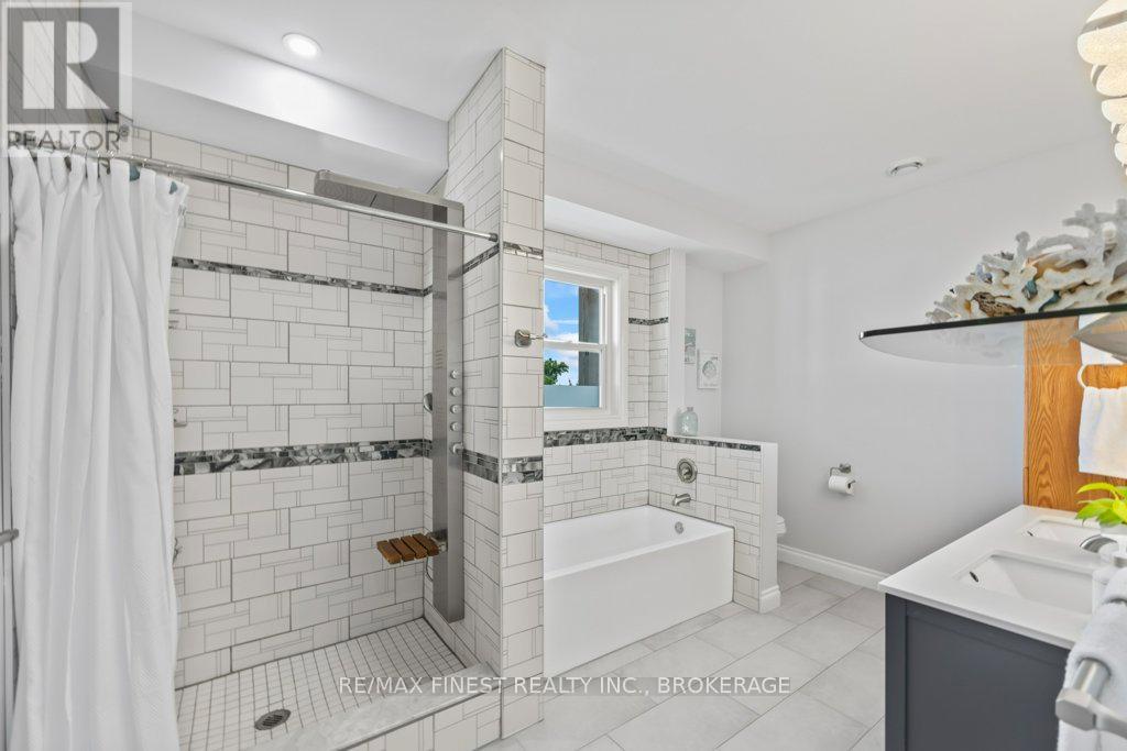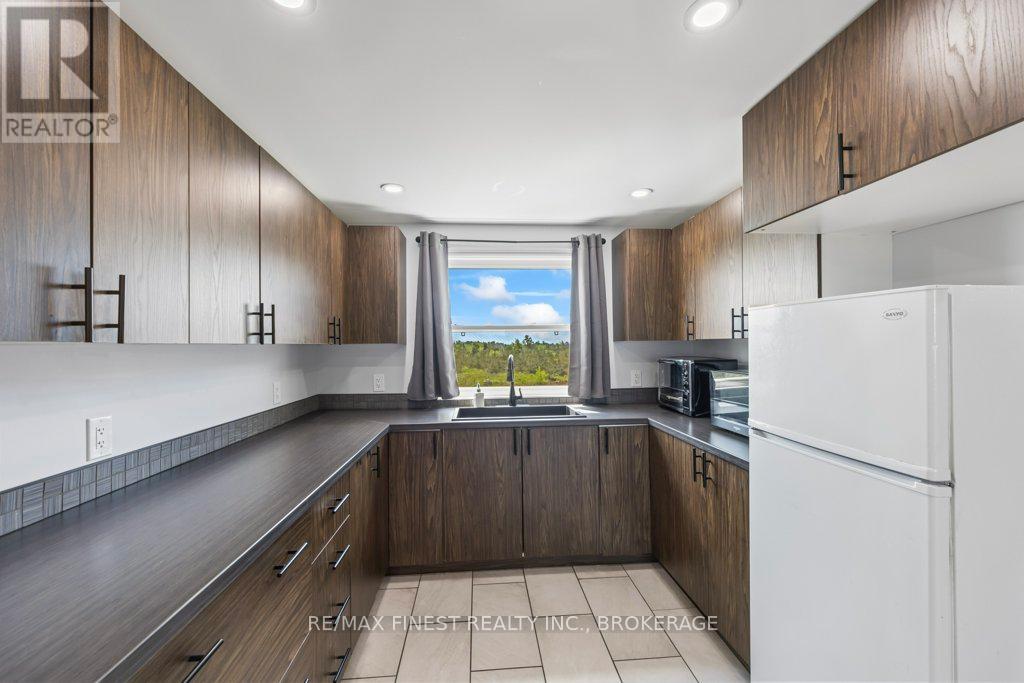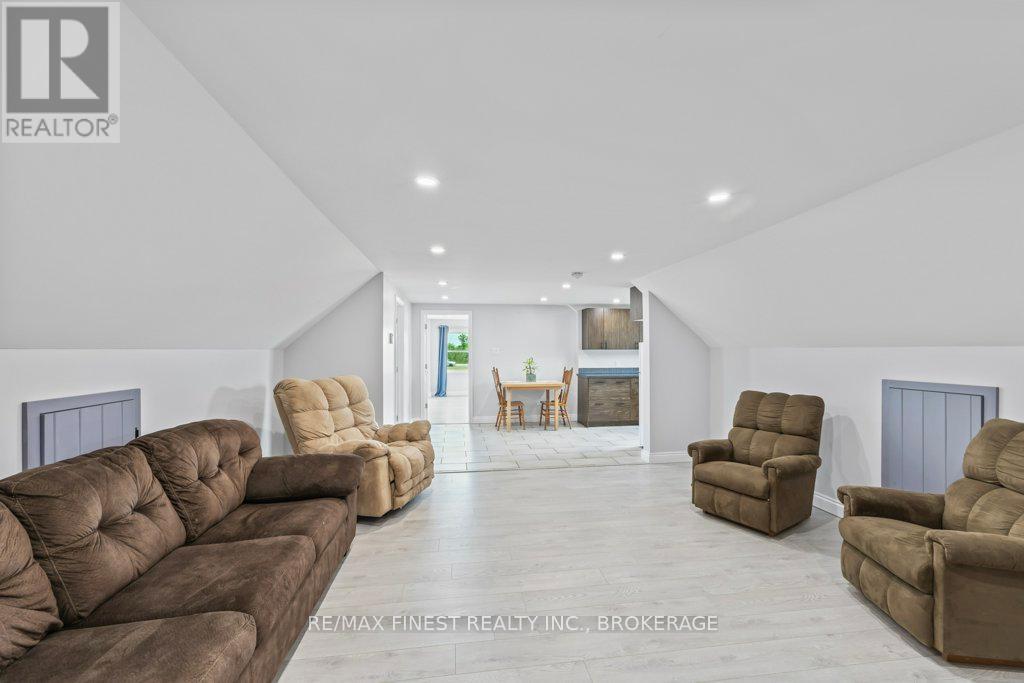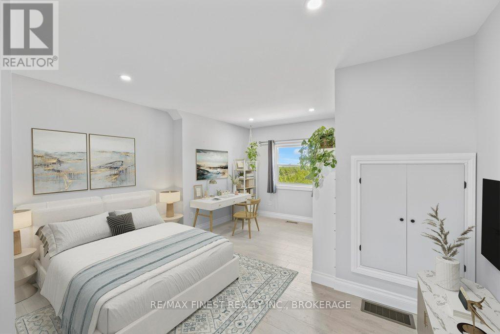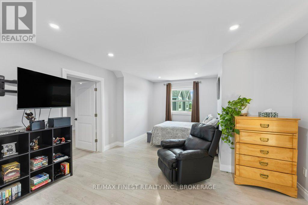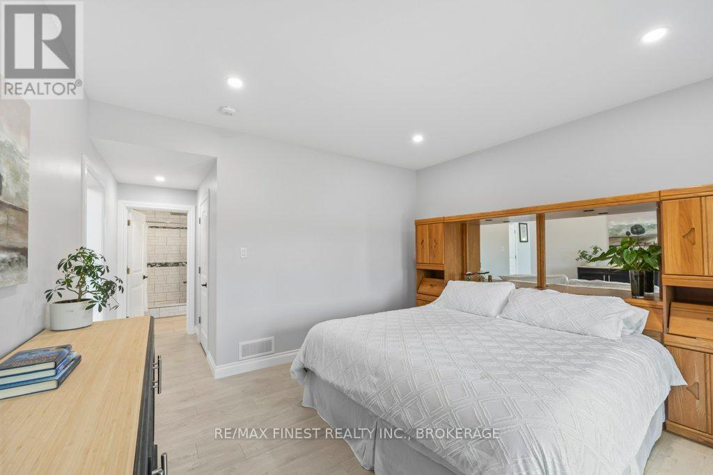 Set on a private 42+ acre parcel, this stunning custom-built home offers a truly unique layout and exceptional space for both indoor comfort and outdoor living. The gourmet kitchen is a standout, featuring in-floor heating, quartz countertops, custom oak cabinetry, black stainless steel appliances including a gas stove, and a convenient dual-access pantry from both the kitchen and front entry. The impressive great room showcases soaring vaulted ceilings, expansive windows with custom electric blinds, built-in surround sound, and a sleek electric fireplace. Patio doors open to a generous deck and a 9x18 stamped concrete pad, ready for your future hot tub. Nature lovers will appreciate the walking trails just beyond the backyard, extending to Caton Road that are ideal for exploring or ATV use. The main-level primary suite offers executive-style comfort with a walk-in closet and a spacious 5-piece ensuite, complete with an extra-long soaker tub and walk-in shower. Upstairs, each bedroom features its own private ensuite, along with a versatile bonus space perfect for a home office, lounge, or recreation area. Function meets convenience with a main floor mudroom/laundry area, powder room, and direct access to the oversized 1,100+ sq ft insulated triple-car garage, including a drive-through bay. Above the garage, a self-contained one-bedroom apartment with separate entrance and parking provides excellent income potential, easily generating approximately $1,500/month. Built with efficiency in mind, the home includes in-floor heating throughout the main level, along with a propane furnace and HRV system servicing the entire property. A second detached 900+ sq ft garage offers even more storage for vehicles, equipment, or recreational toys. Ideally located just 10 minutes from Kingston's west end, with easy access to amenities, schools, shopping, and Highway 401. This property delivers privacy without sacrificing convenience. (id:29295)