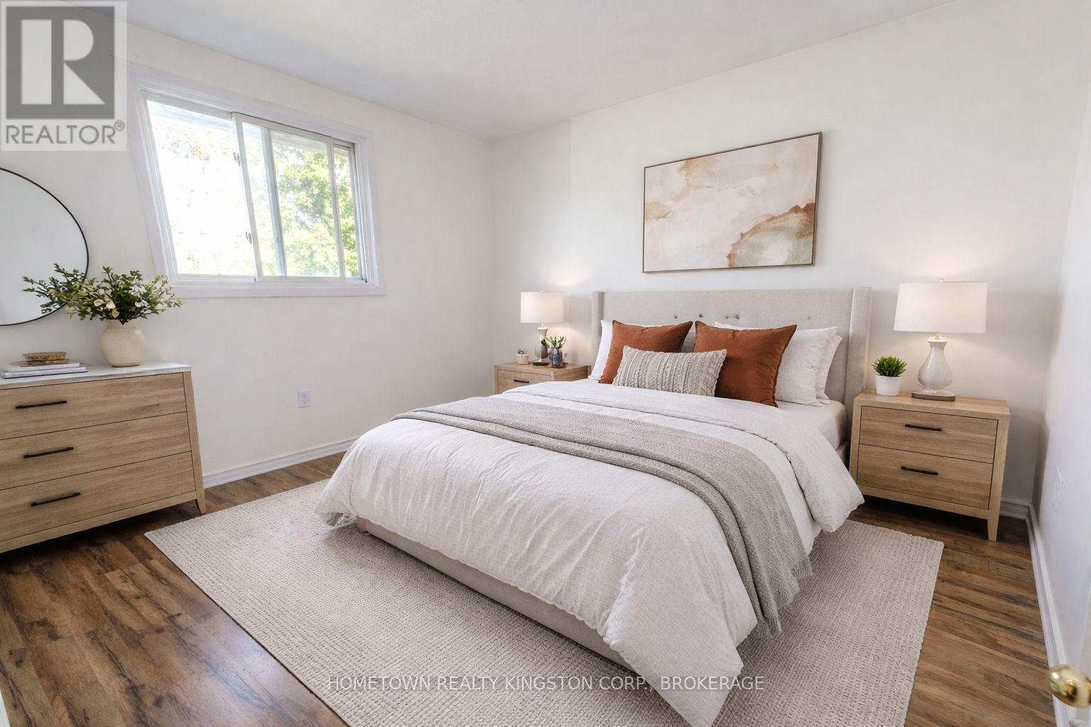 $450 MonthlyGet started here! Terrific townhome in Kingston's west end walking distance to schools, shopping & on the express bus route to downtown. Ready to move into & fully updated with new front door & back door, new shingles, flooring, freshly painted throughout, & newer windows. Spacious layout, 3 bedrooms, 2 full bathrooms, appliances included, and there is a pool & park in the complex as well. This property is ideal for first time buyers, young families or investors looking to add a low maintenance property to their portfolio. (id:29295)